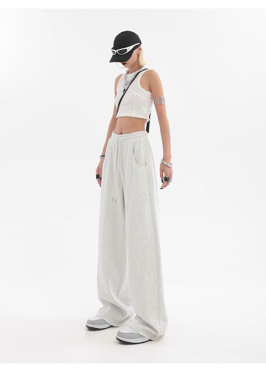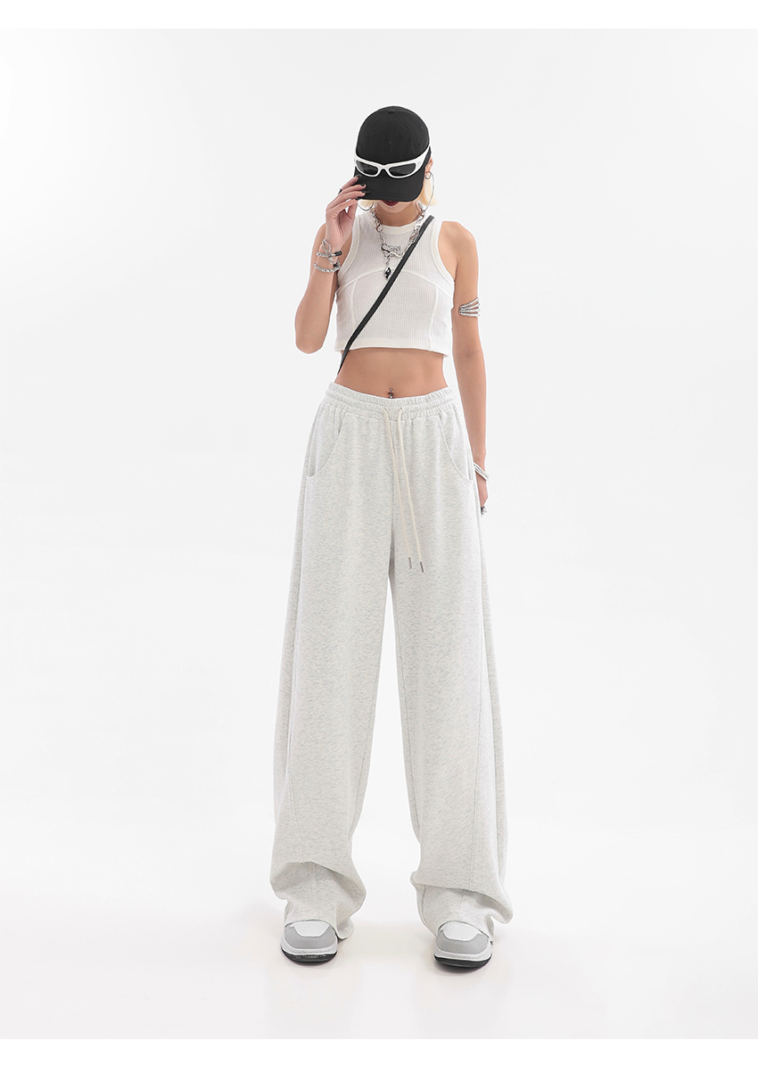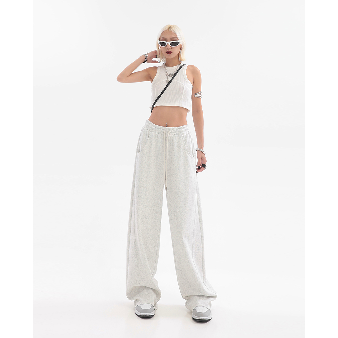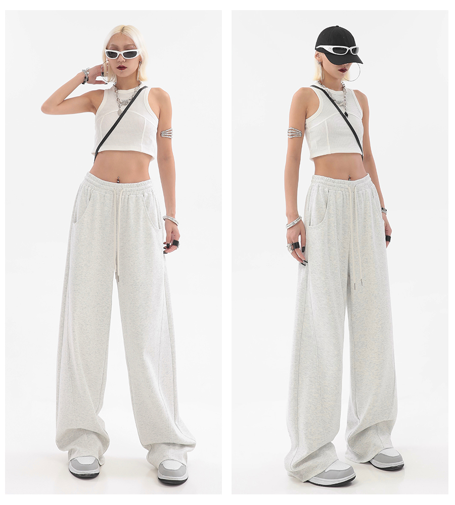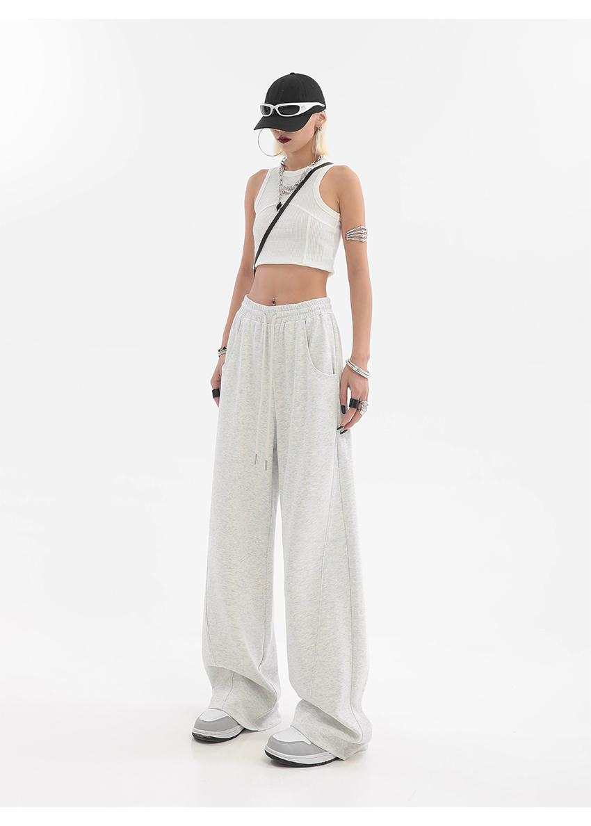 美式高街灰白色直筒闊腿休閒褲女秋季新款抽繩寬鬆運動褲子衛褲潮