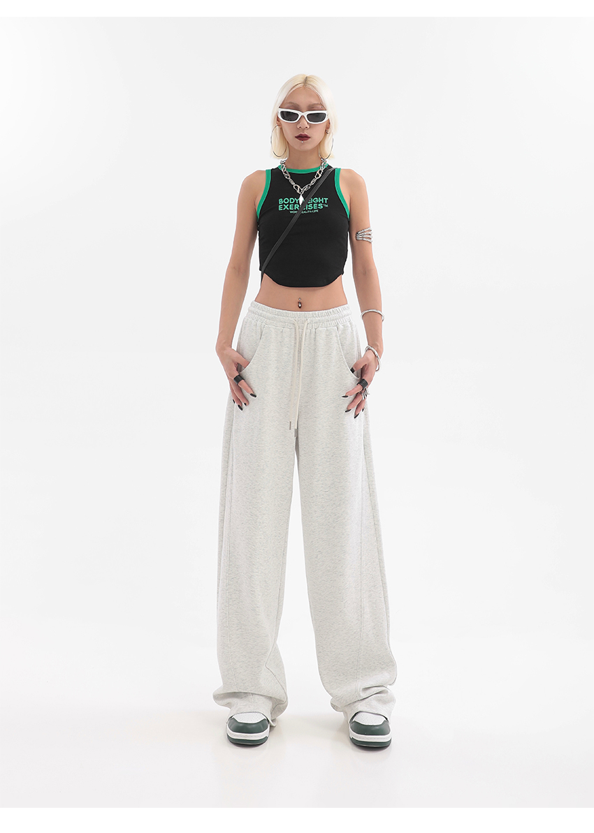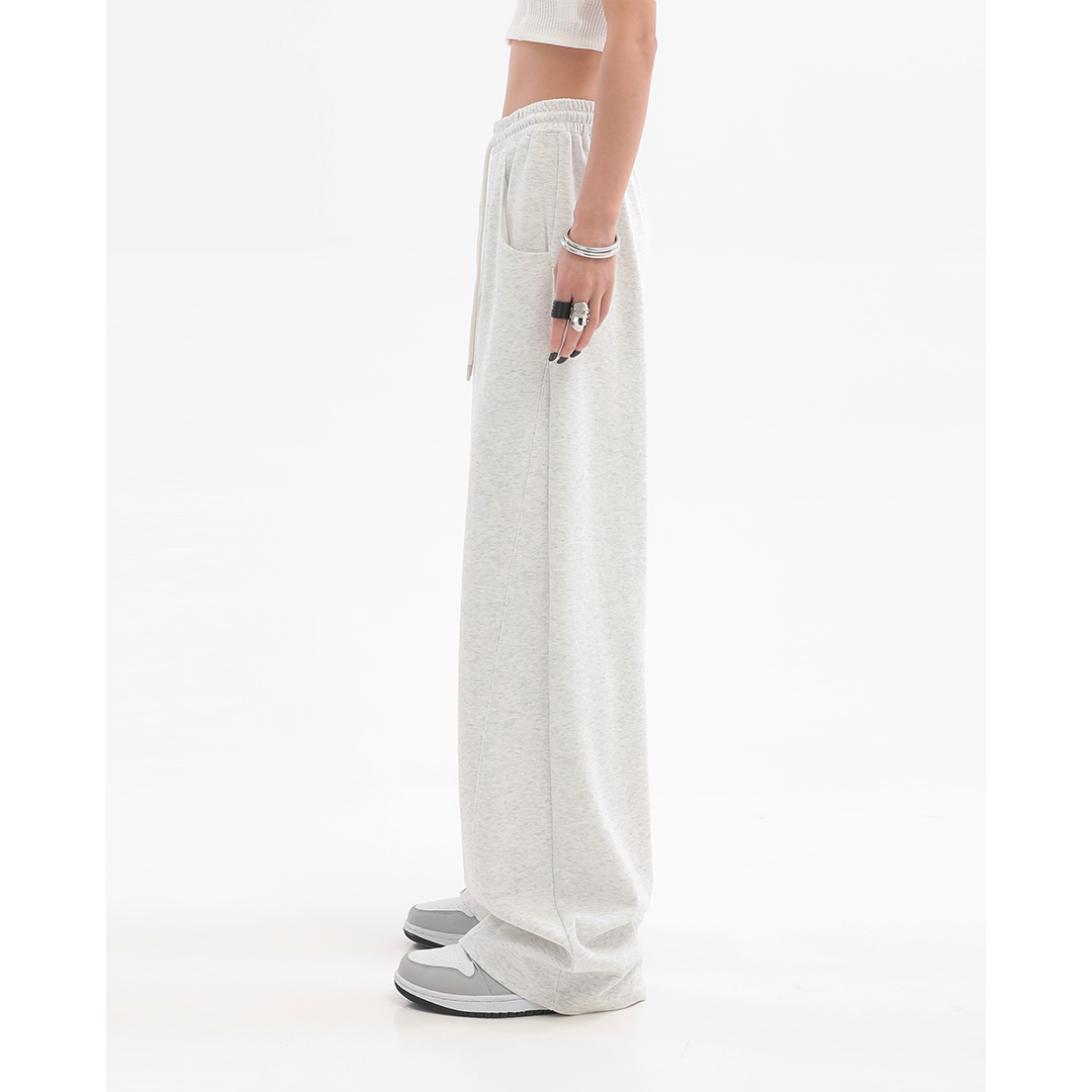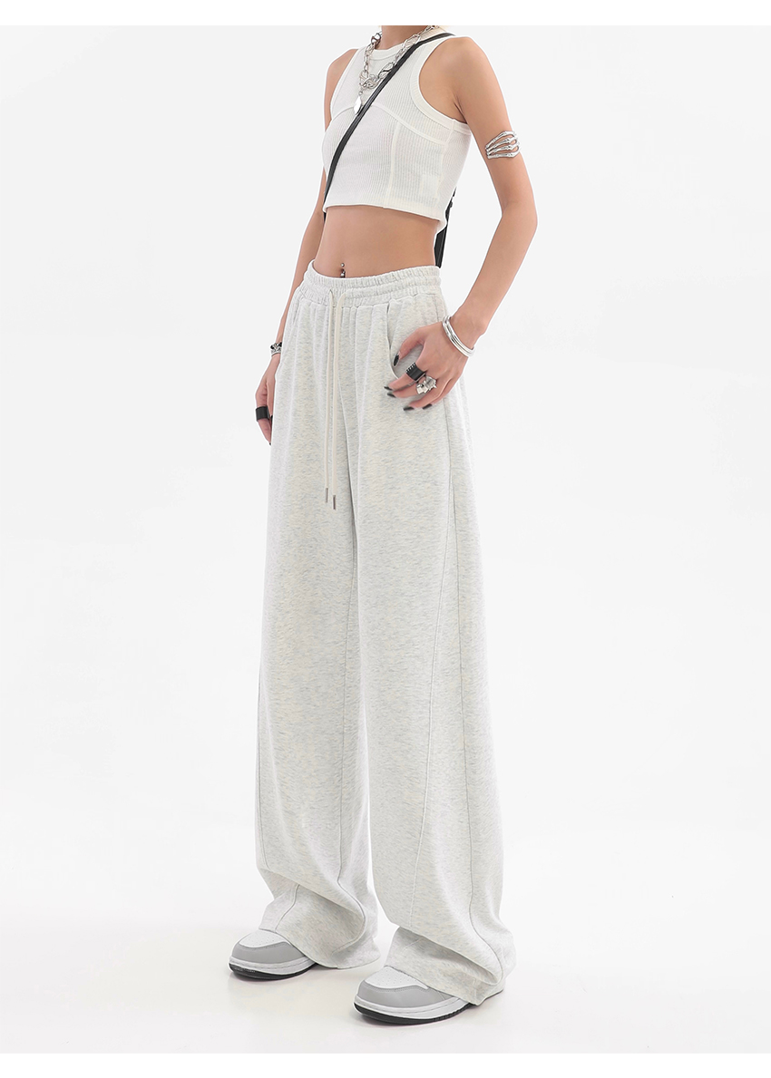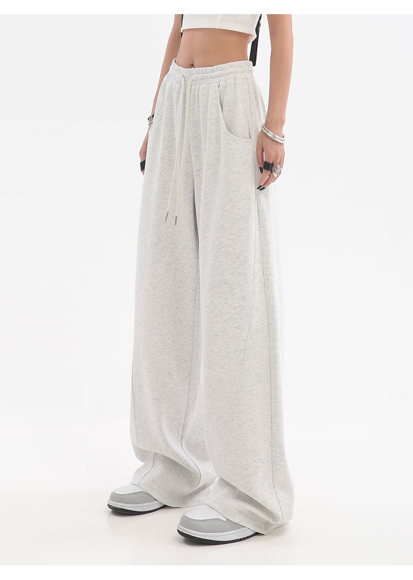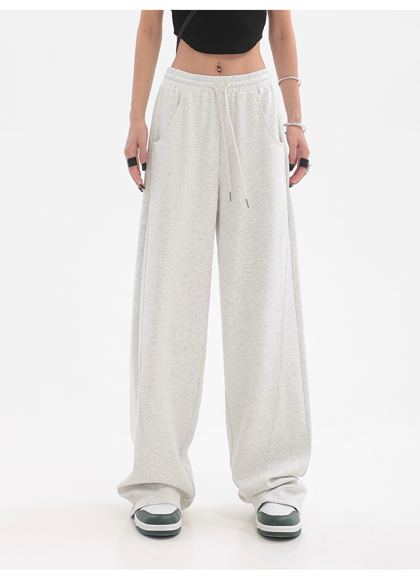 美式高街灰白色直筒闊腿休閒褲女秋季新款抽繩寬鬆運動褲子衛褲潮