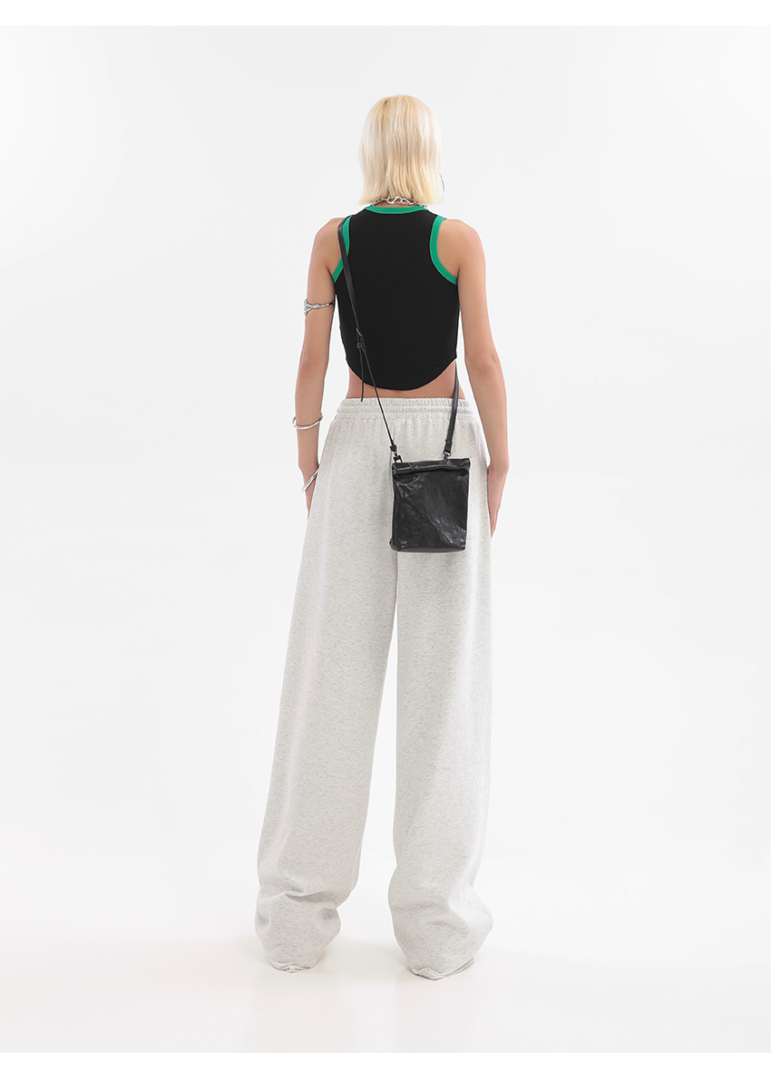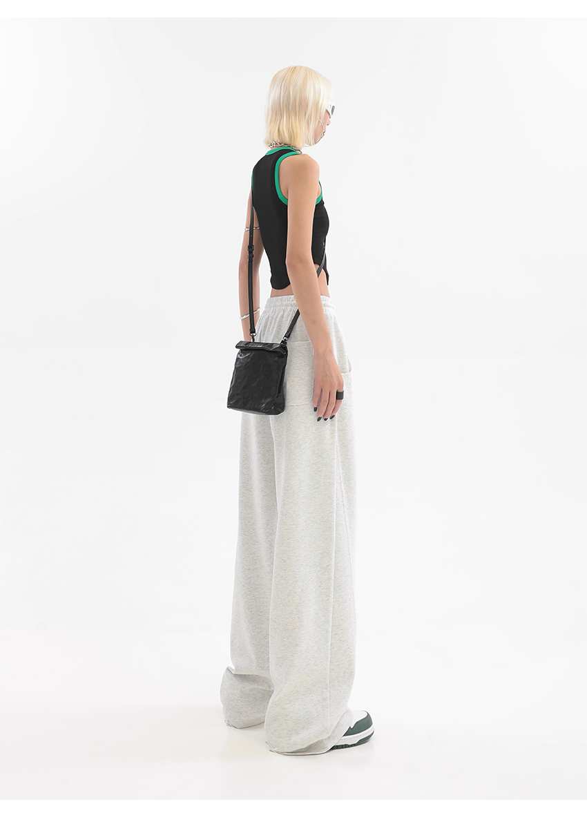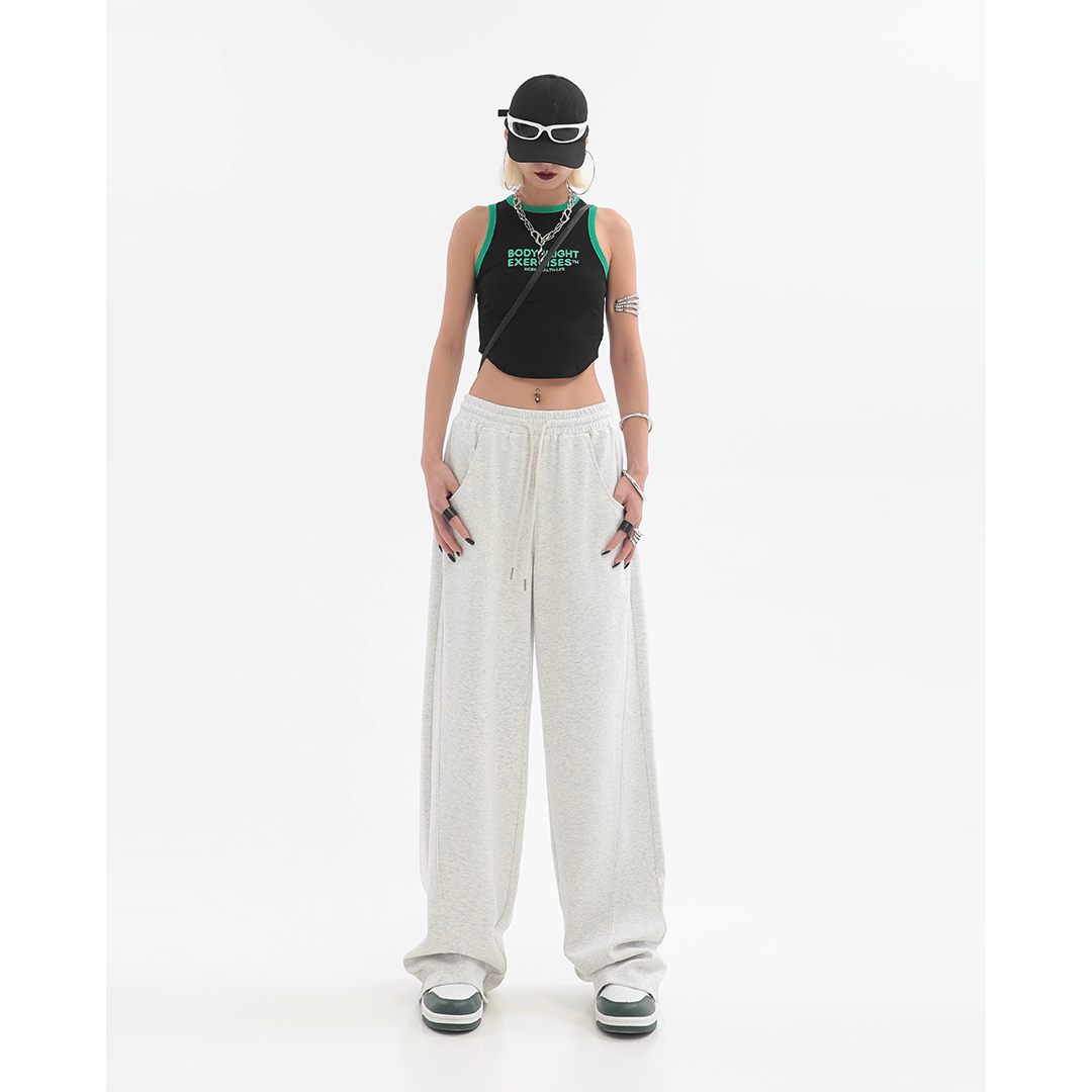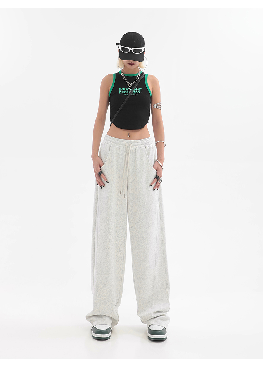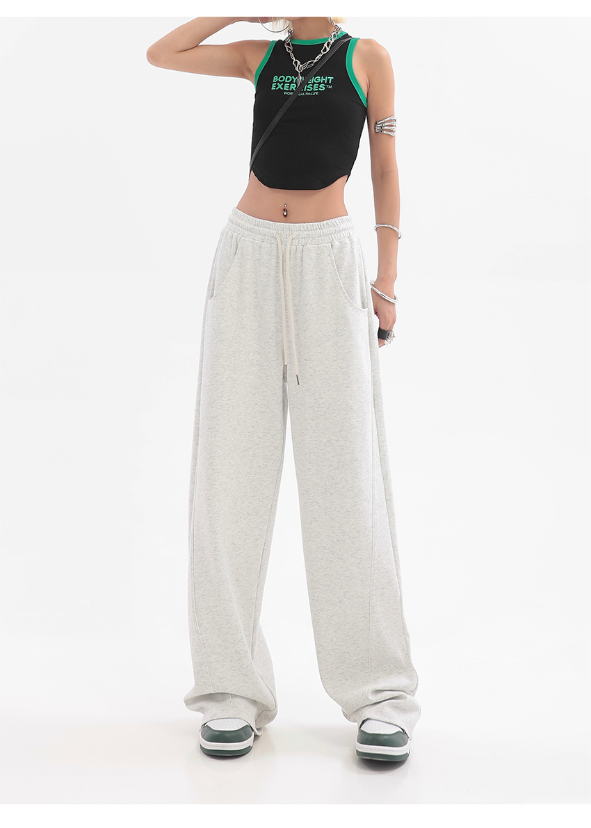 美式高街灰白色直筒闊腿休閒褲女秋季新款抽繩寬鬆運動褲子衛褲潮