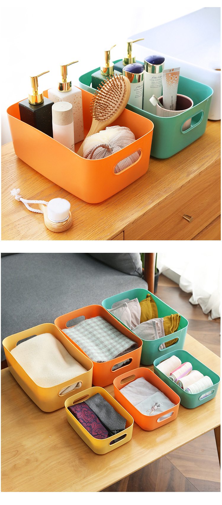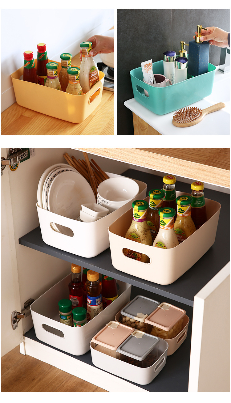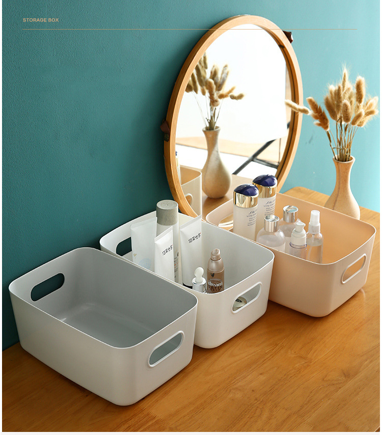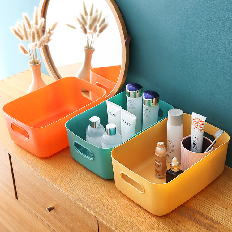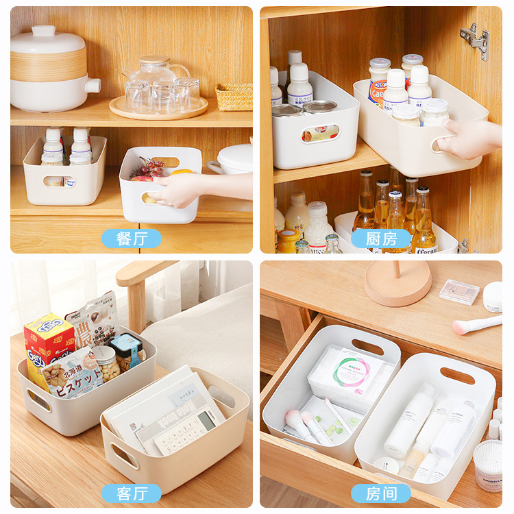 书本桌面化妆品收纳盒杂物整理盒储物筐塑料零食家用厨房置物盒