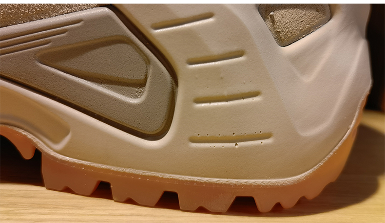 3、LOWA Zephyr鞋的外底,用的是略软些的CROSS II 大底,对比其他V底防滑强但是耐磨弱一些,尤其边缘部位容易有磨损痕迹,不影响功能。如果经常走石头山路等,建议选另外V底的Lowa Renegade或者SCARPA冈仁波齐款。