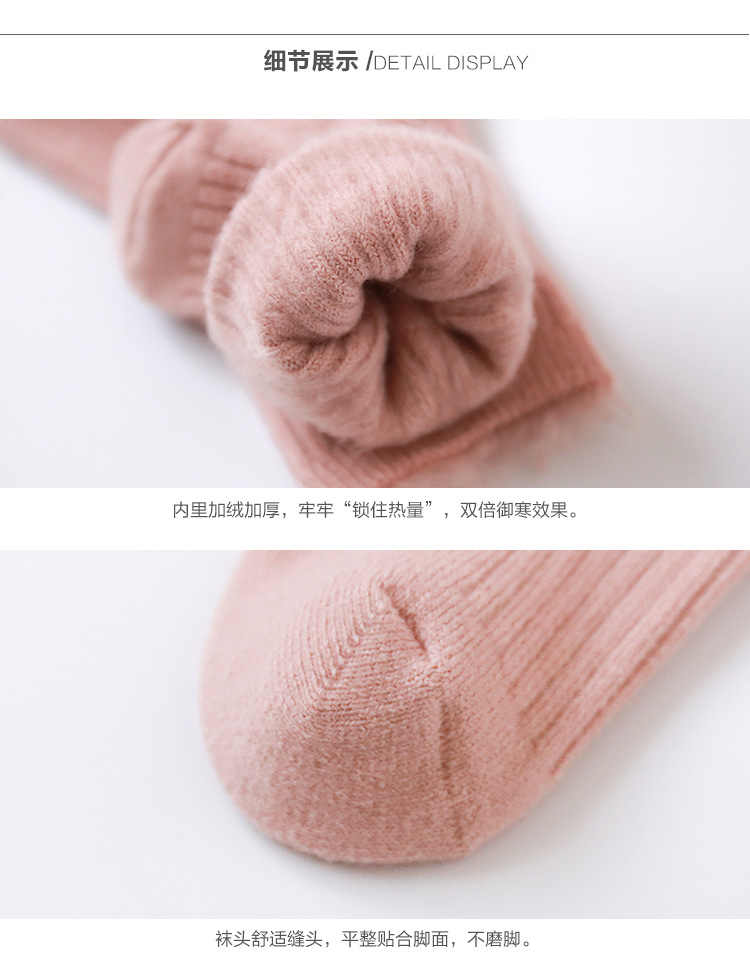 宝宝袜子秋冬季新款刷毛保暖加厚拉毛袜新生婴儿精梳棉双针中筒袜