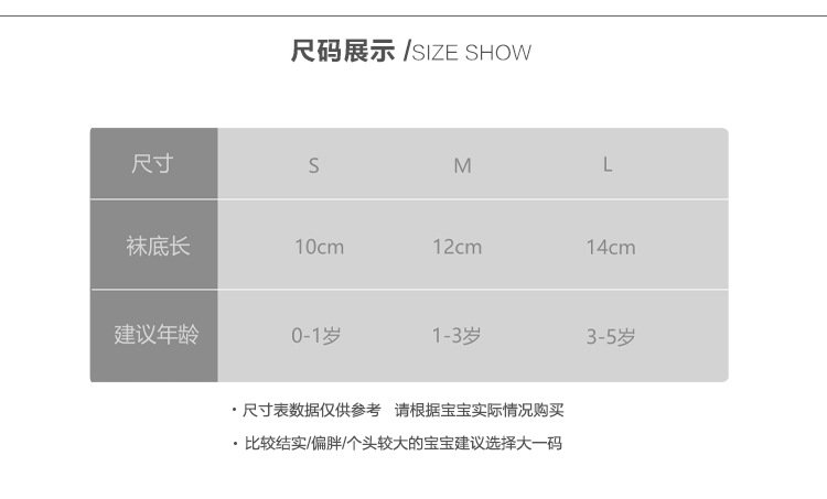 童袜尺码 S 0-1岁,M 1-3岁,L 3-5岁