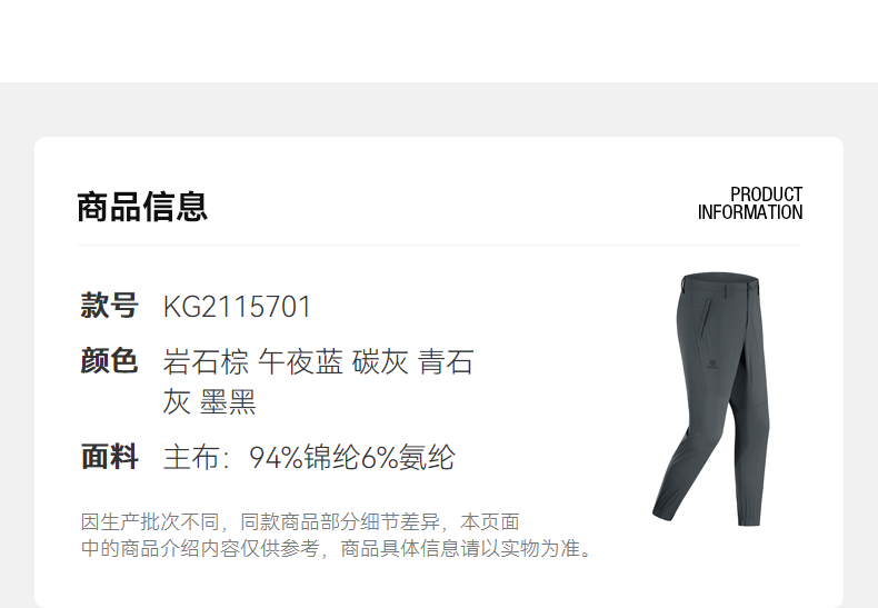 凱樂石速乾褲男士快乾運動褲防潑水休閒褲彈力錐形長褲KG2115701