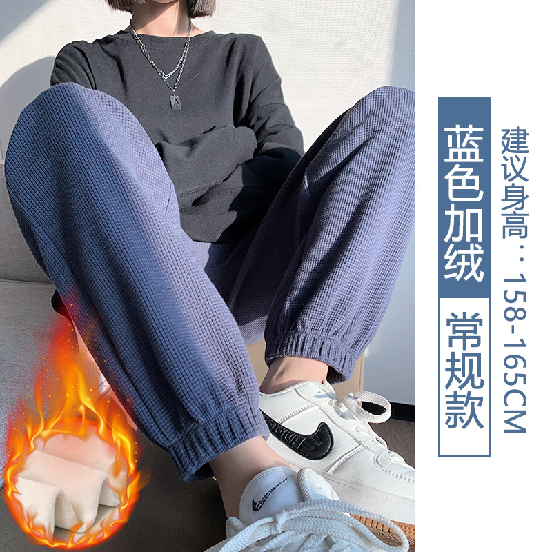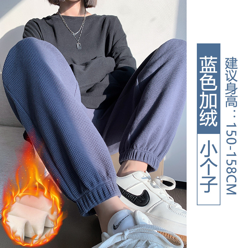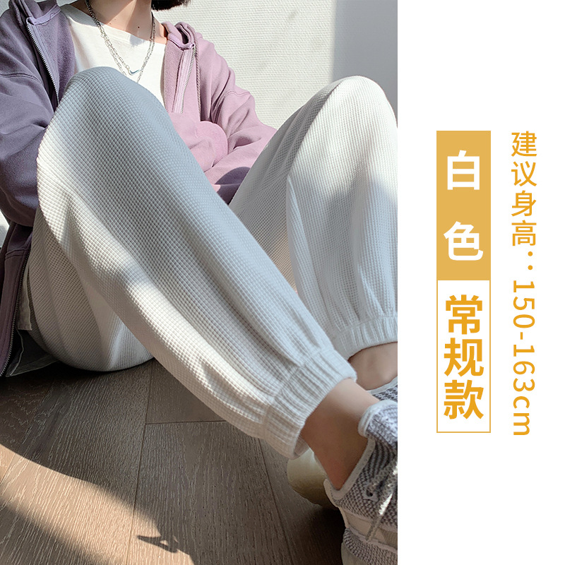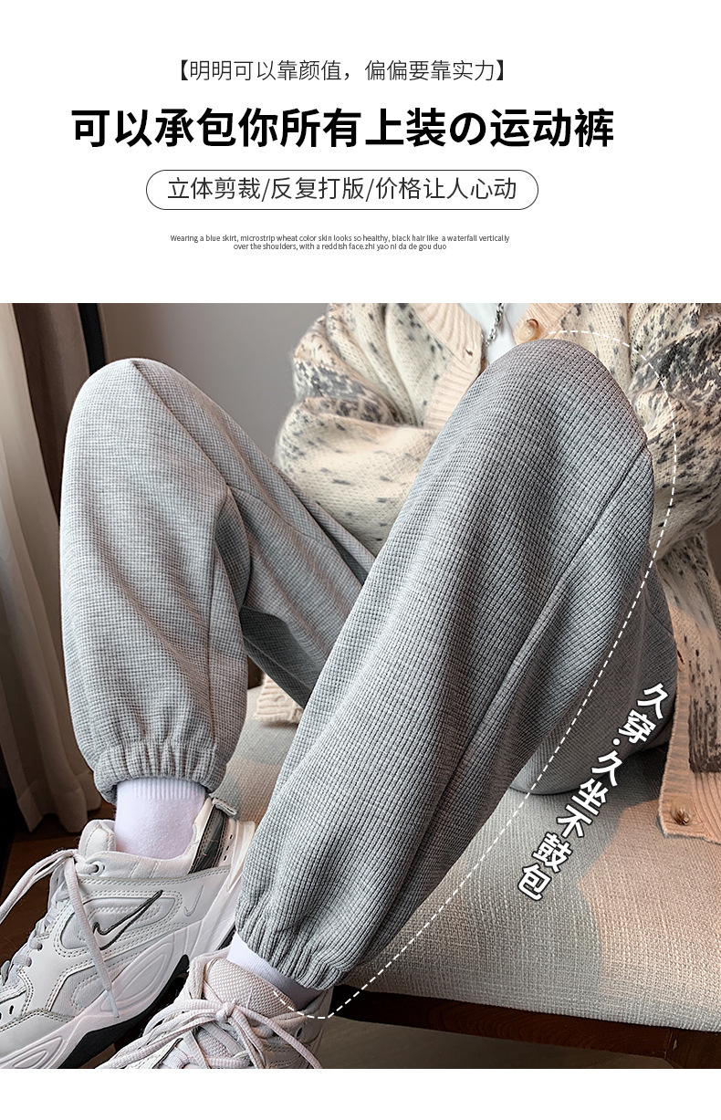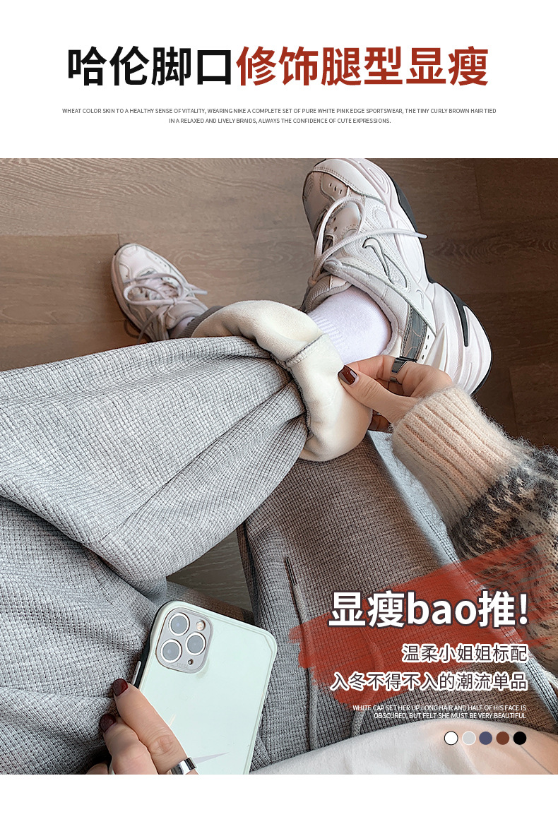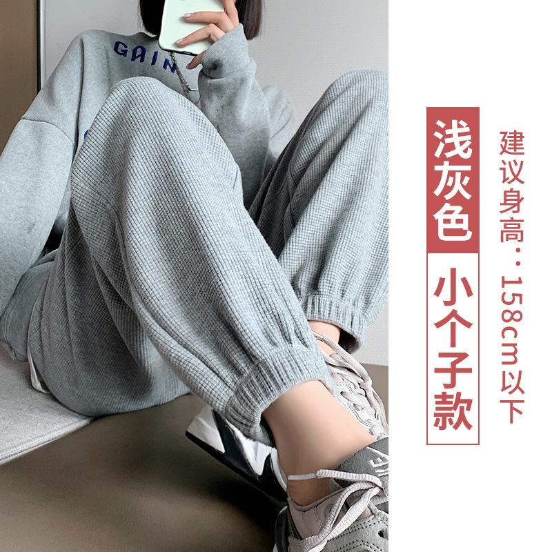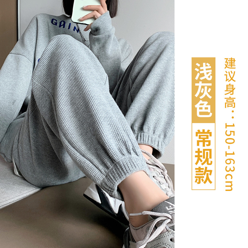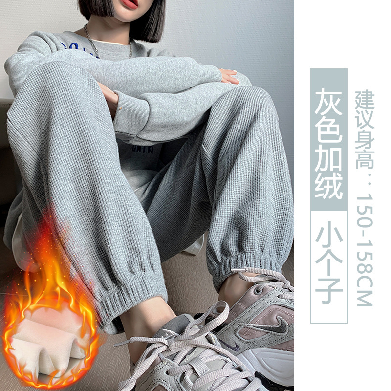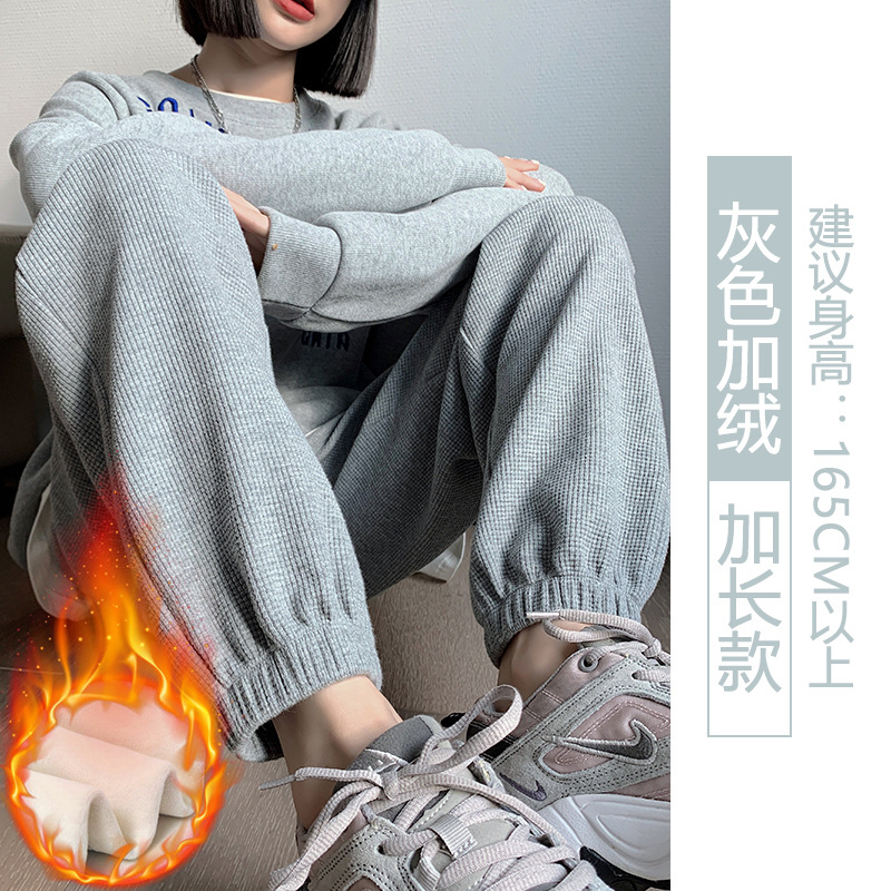 华夫格运动裤女2023春秋新款宽松束脚加绒卫裤高腰显瘦哈伦休闲裤