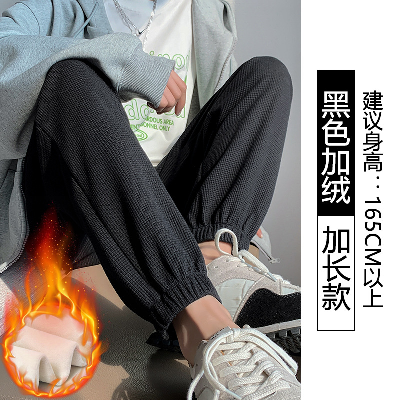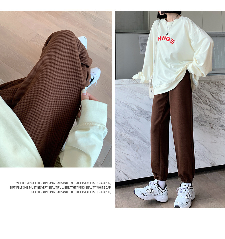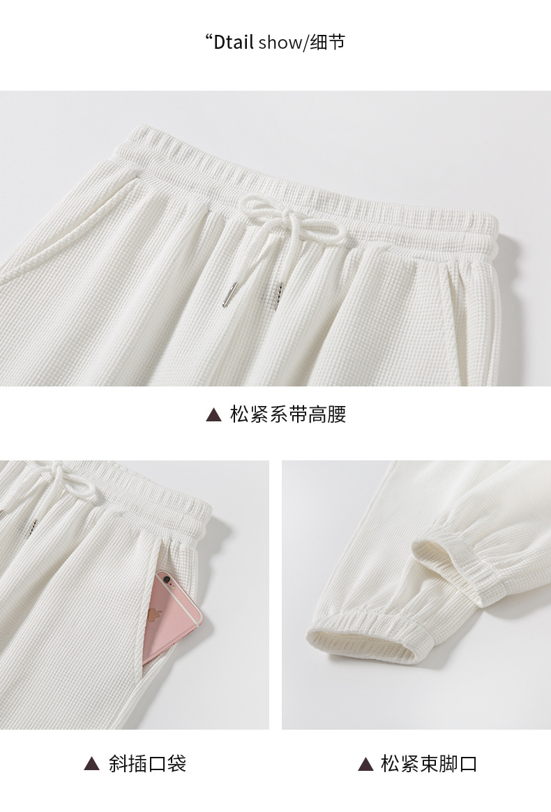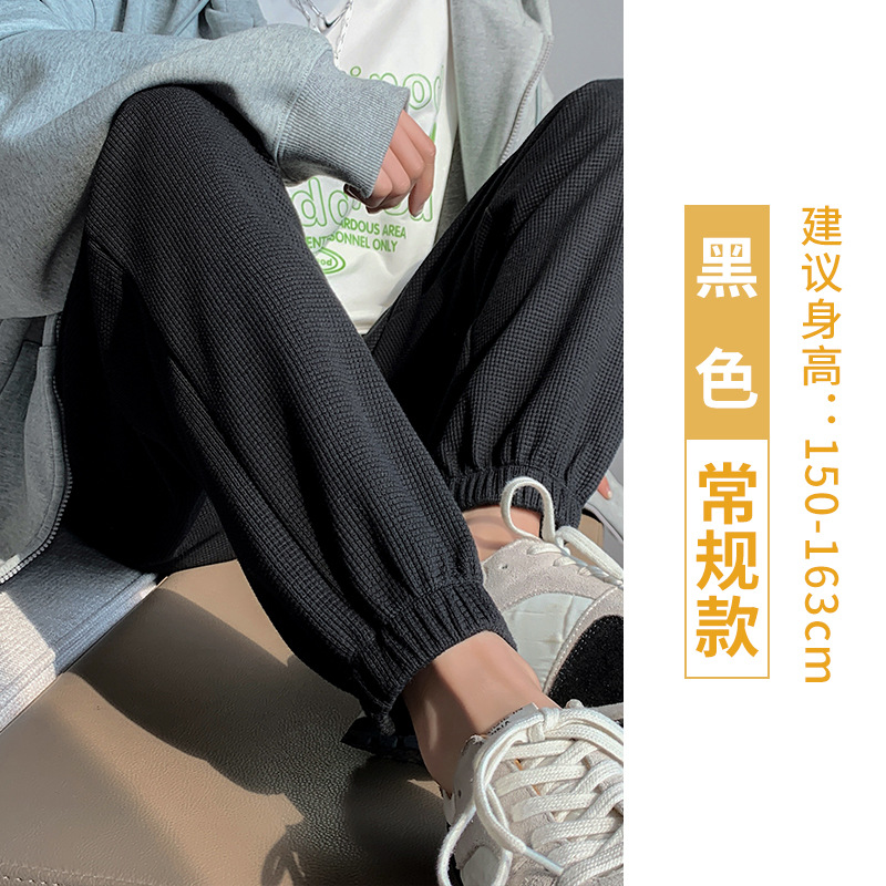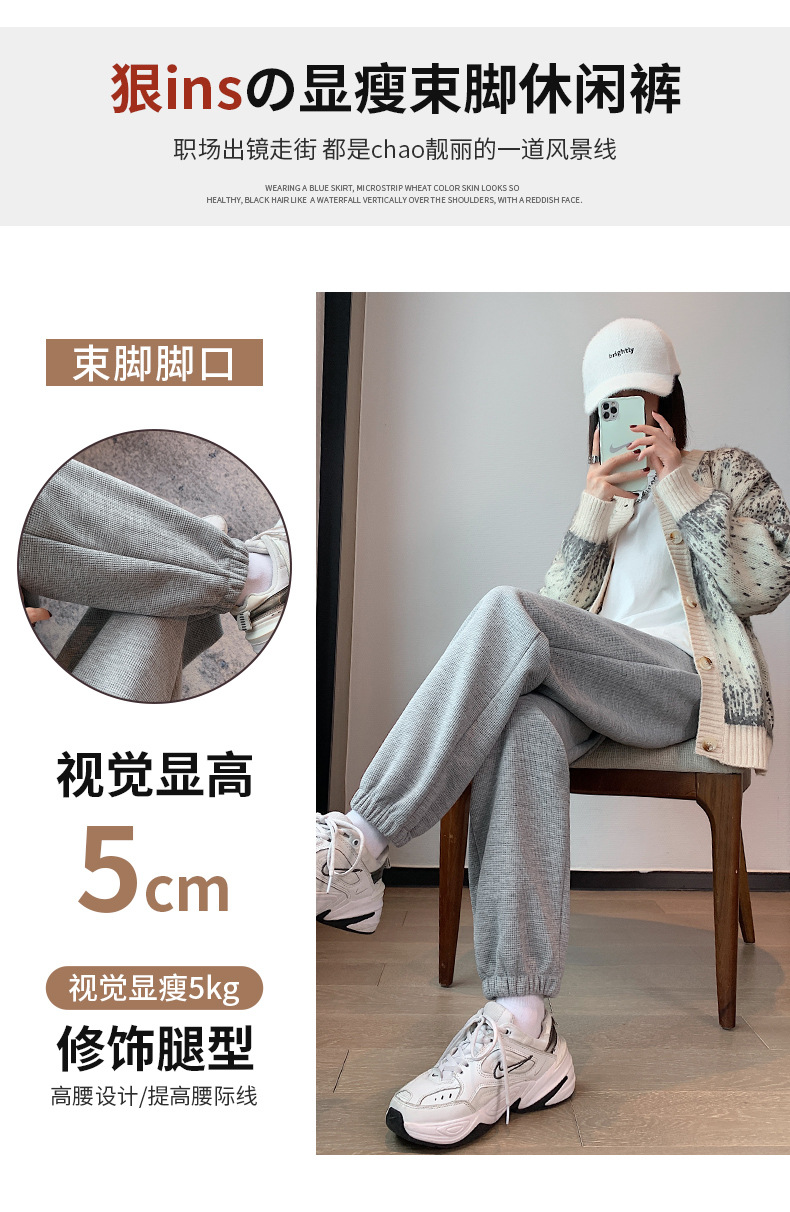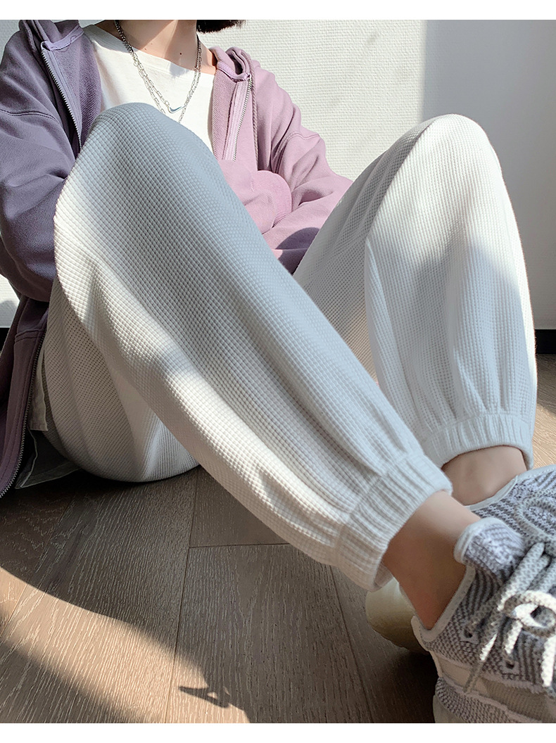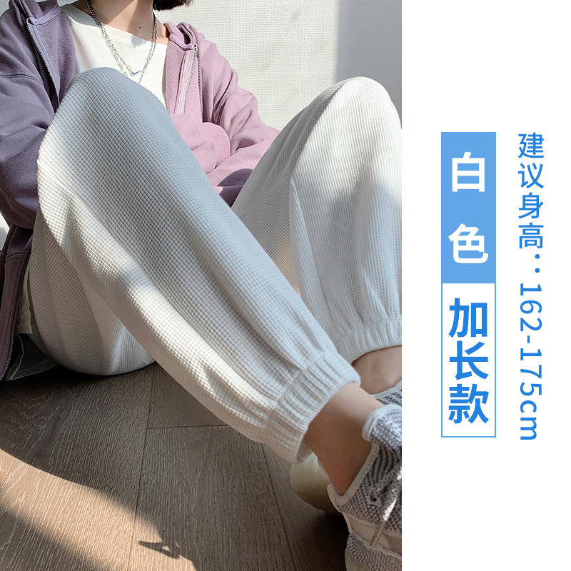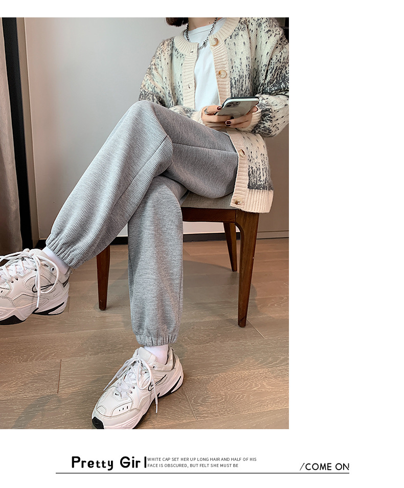 华夫格运动裤女2023春秋新款宽松束脚加绒卫裤高腰显瘦哈伦休闲裤