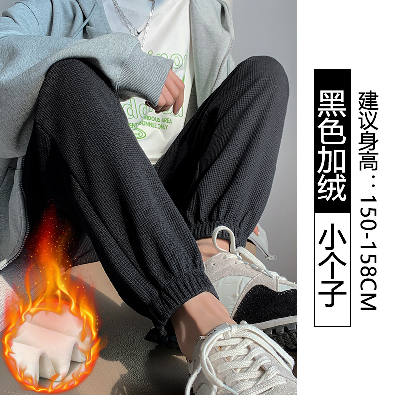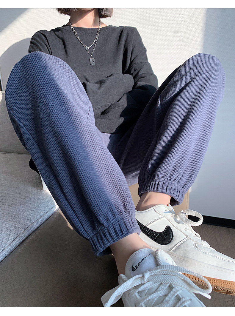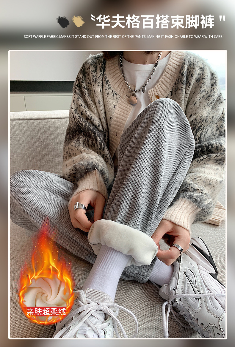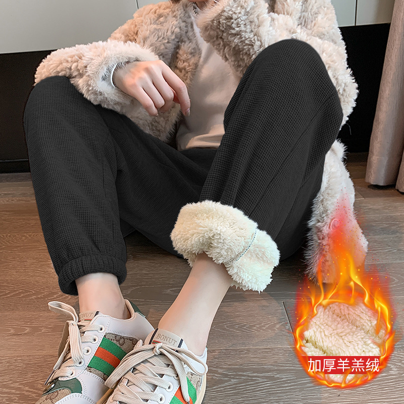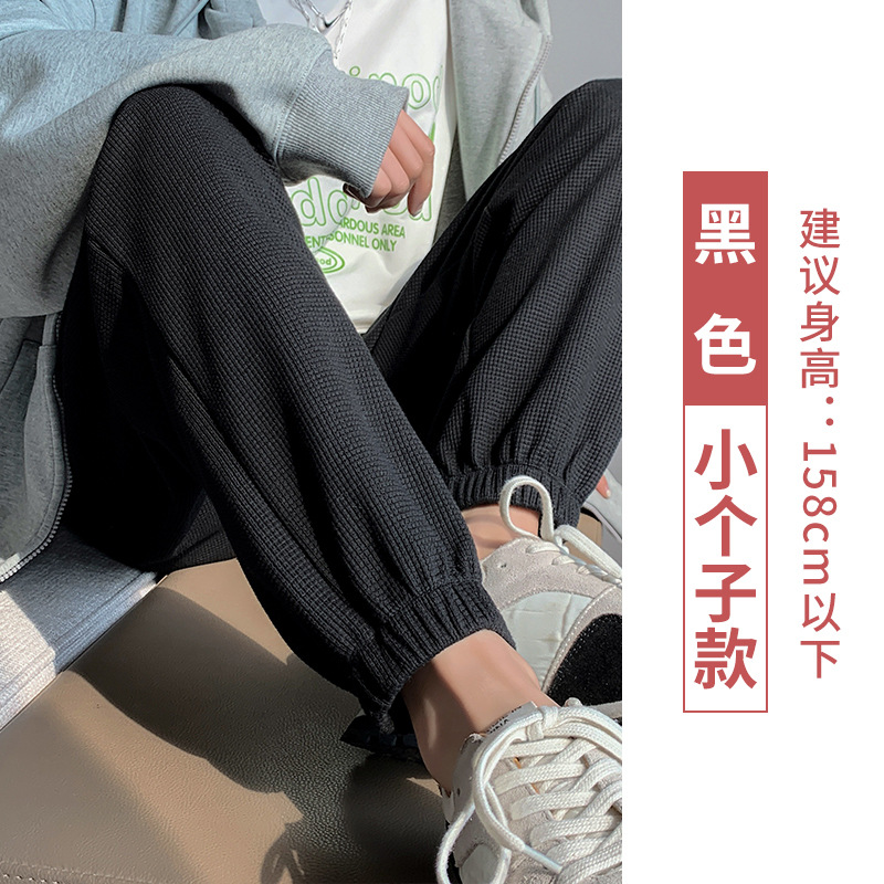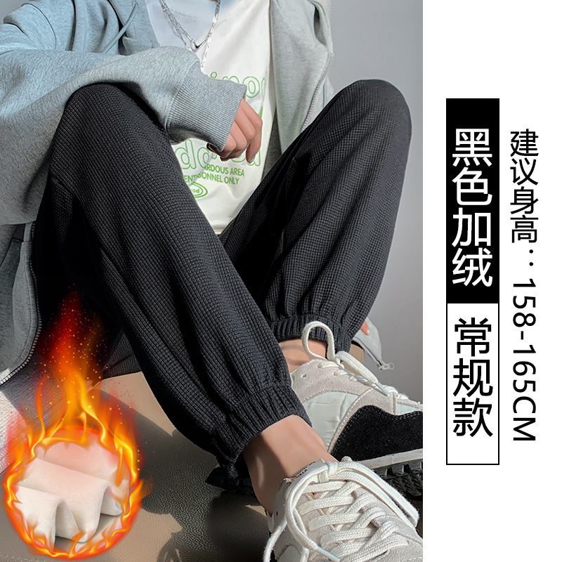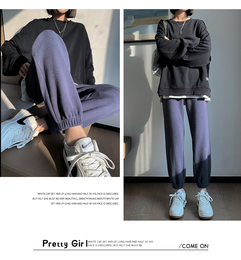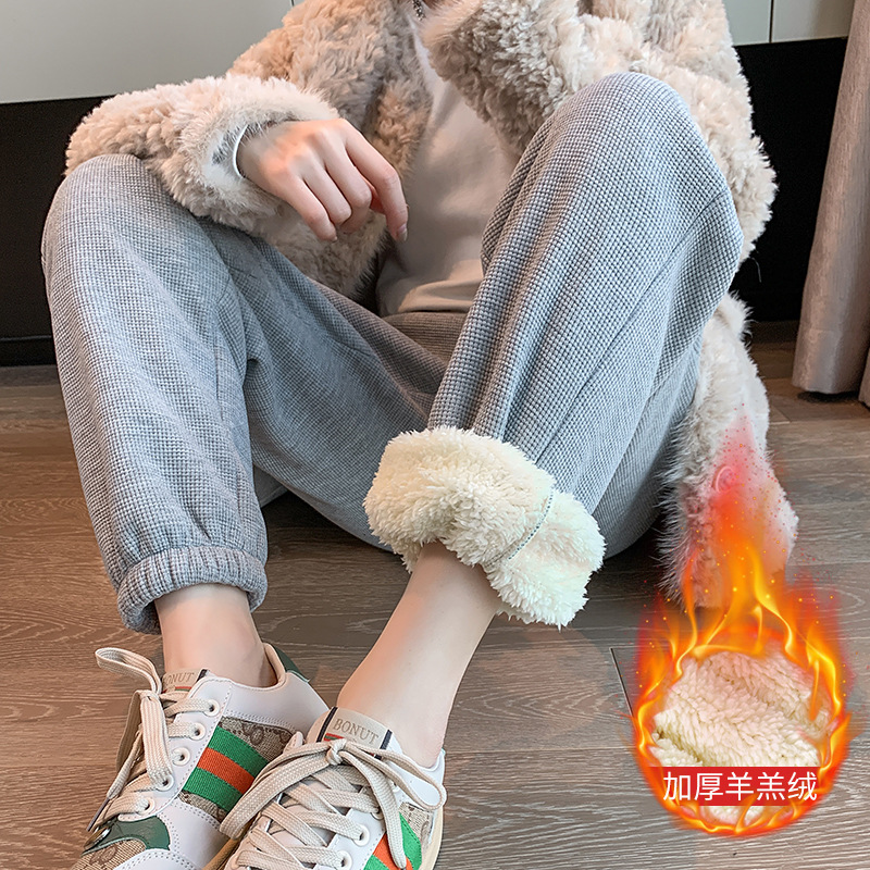 华夫格运动裤女2023春秋新款宽松束脚加绒卫裤高腰显瘦哈伦休闲裤