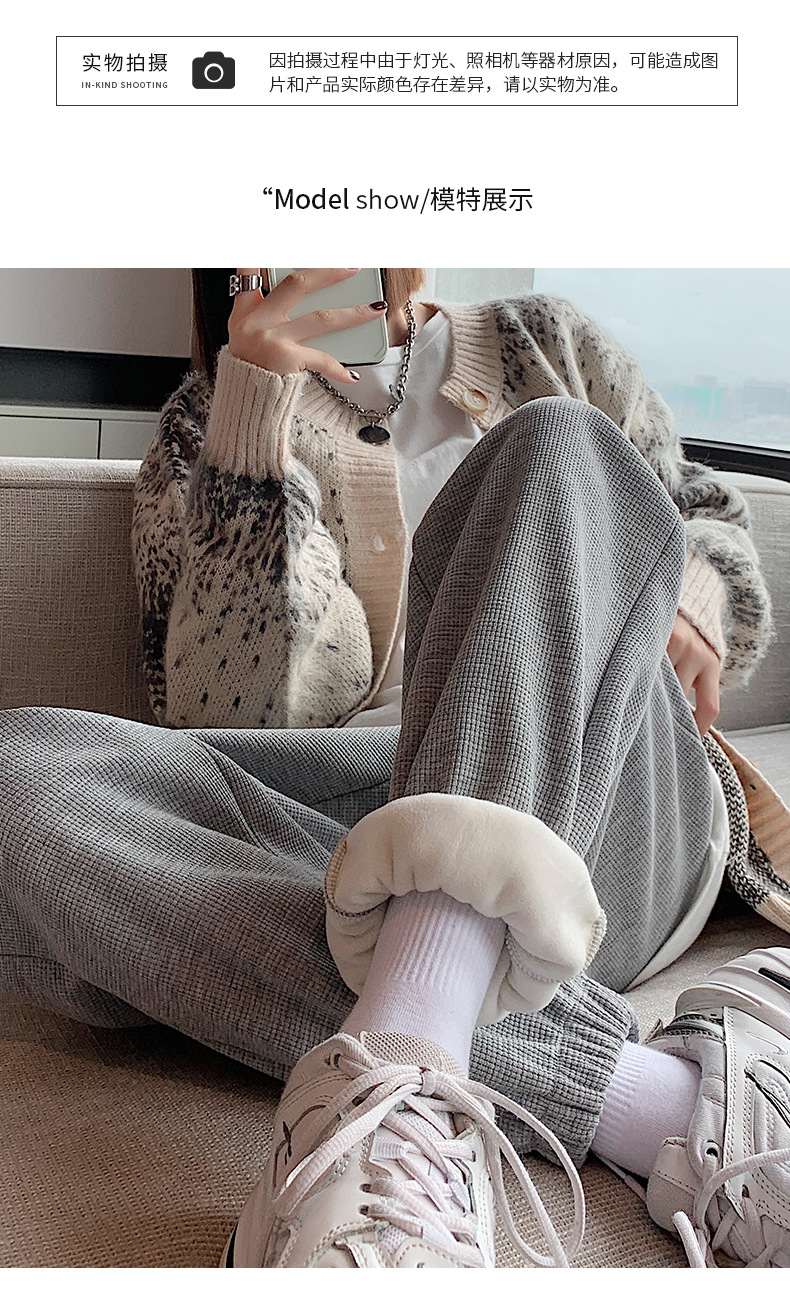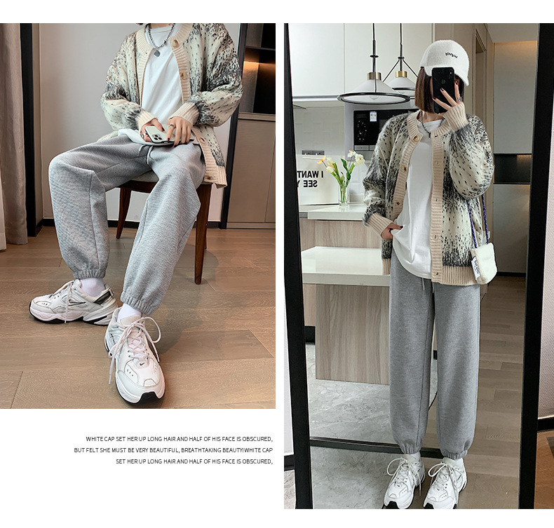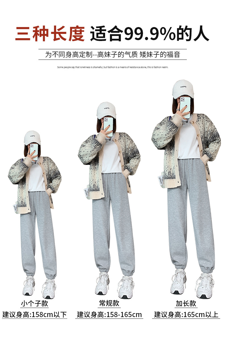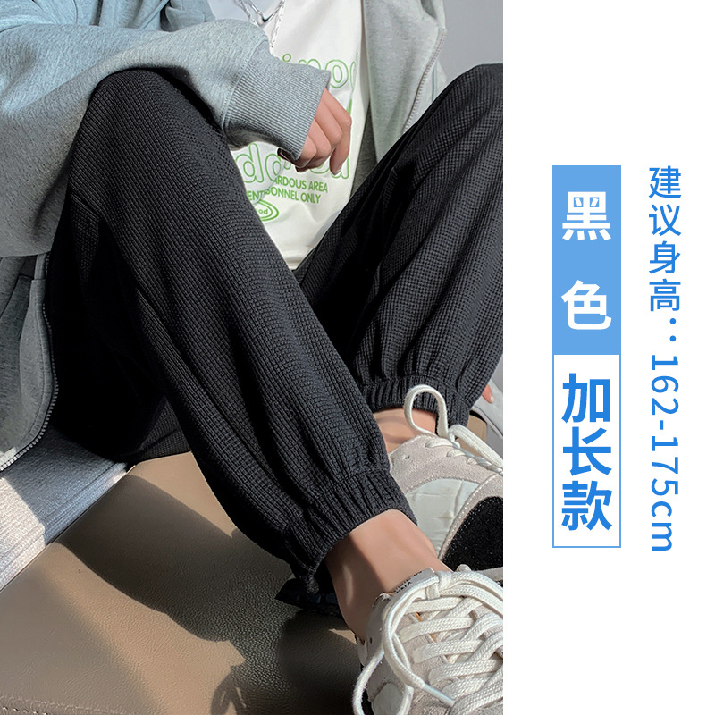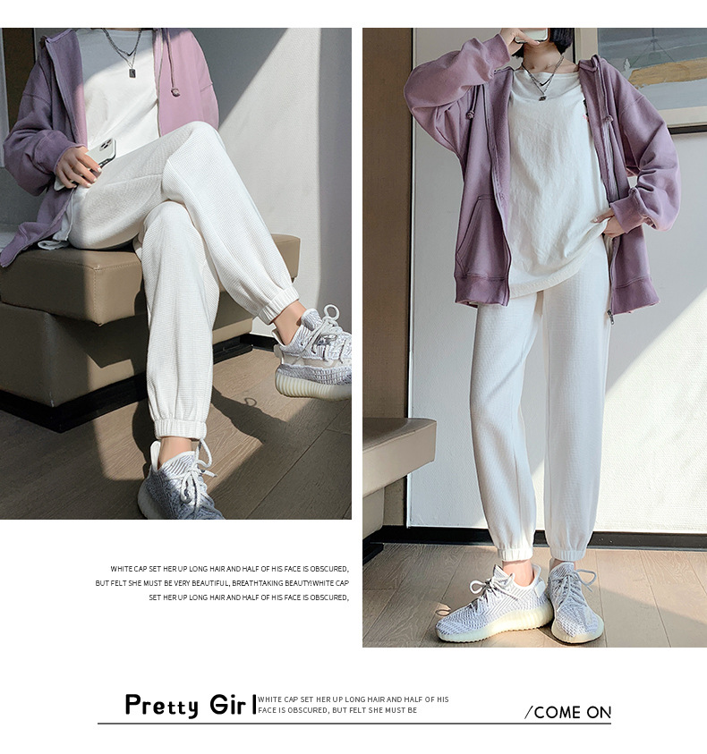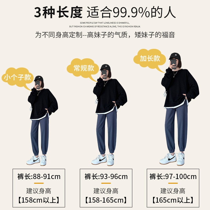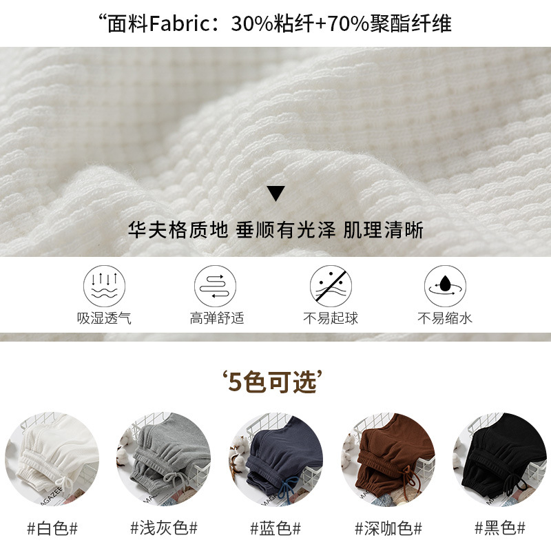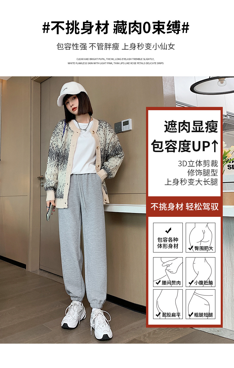 华夫格运动裤女2023春秋新款宽松束脚加绒卫裤高腰显瘦哈伦休闲裤