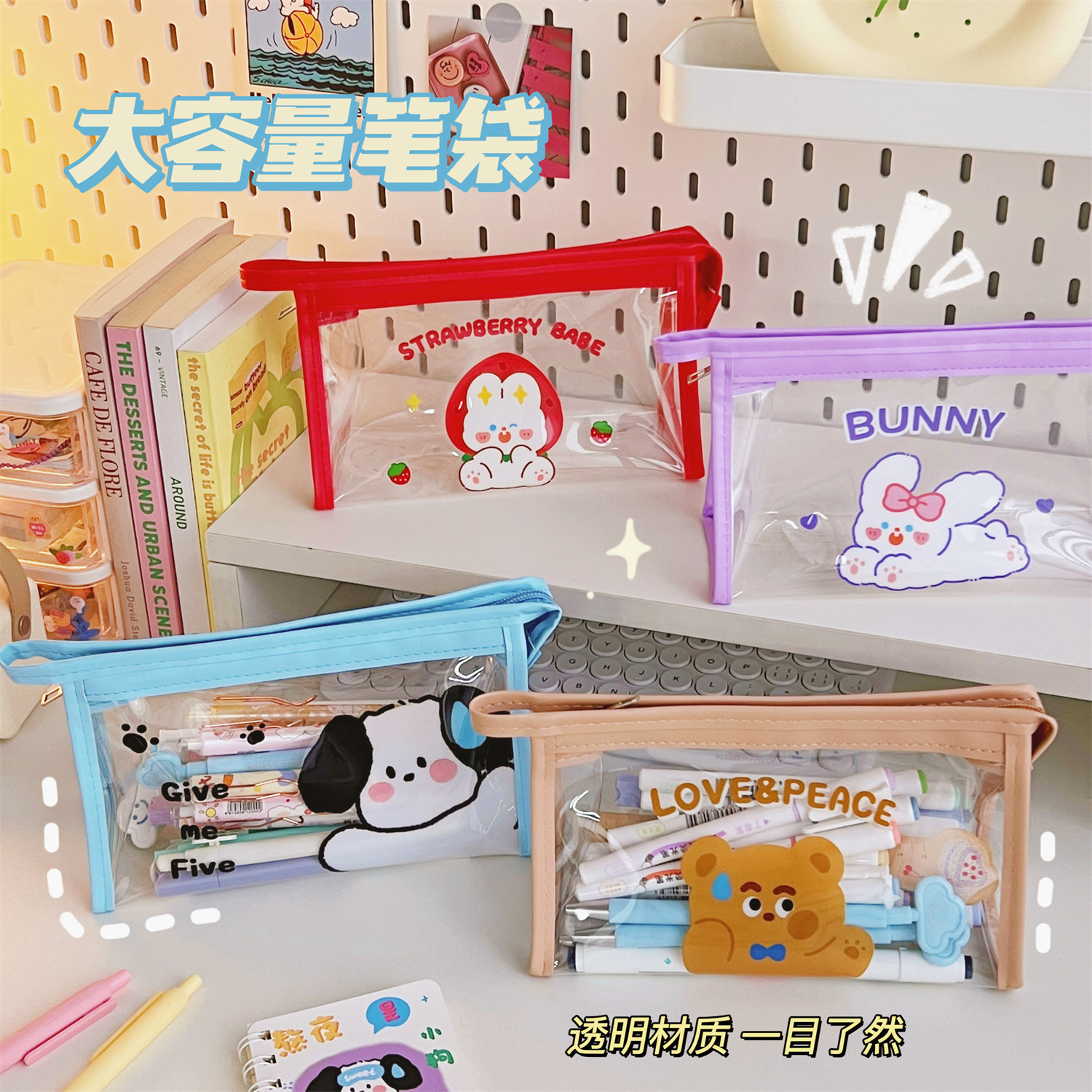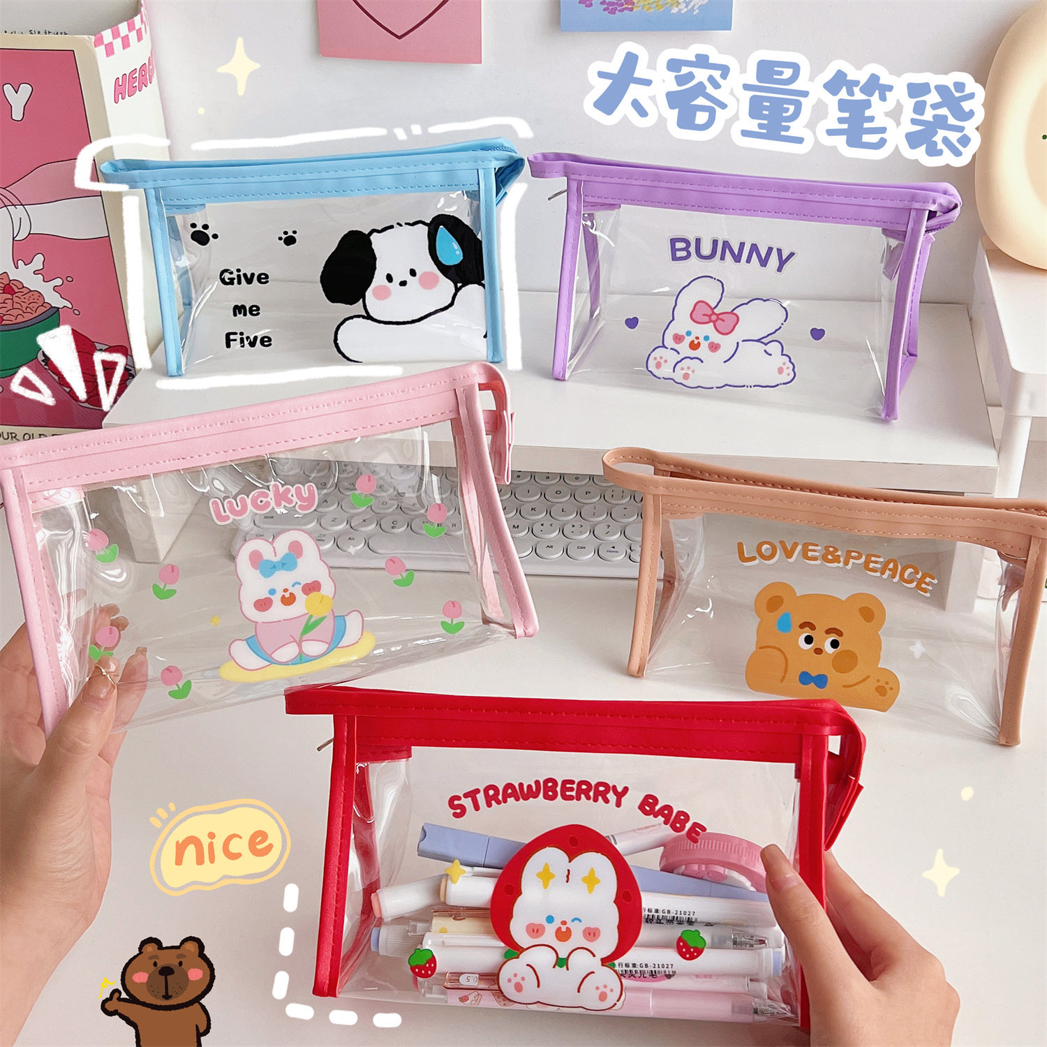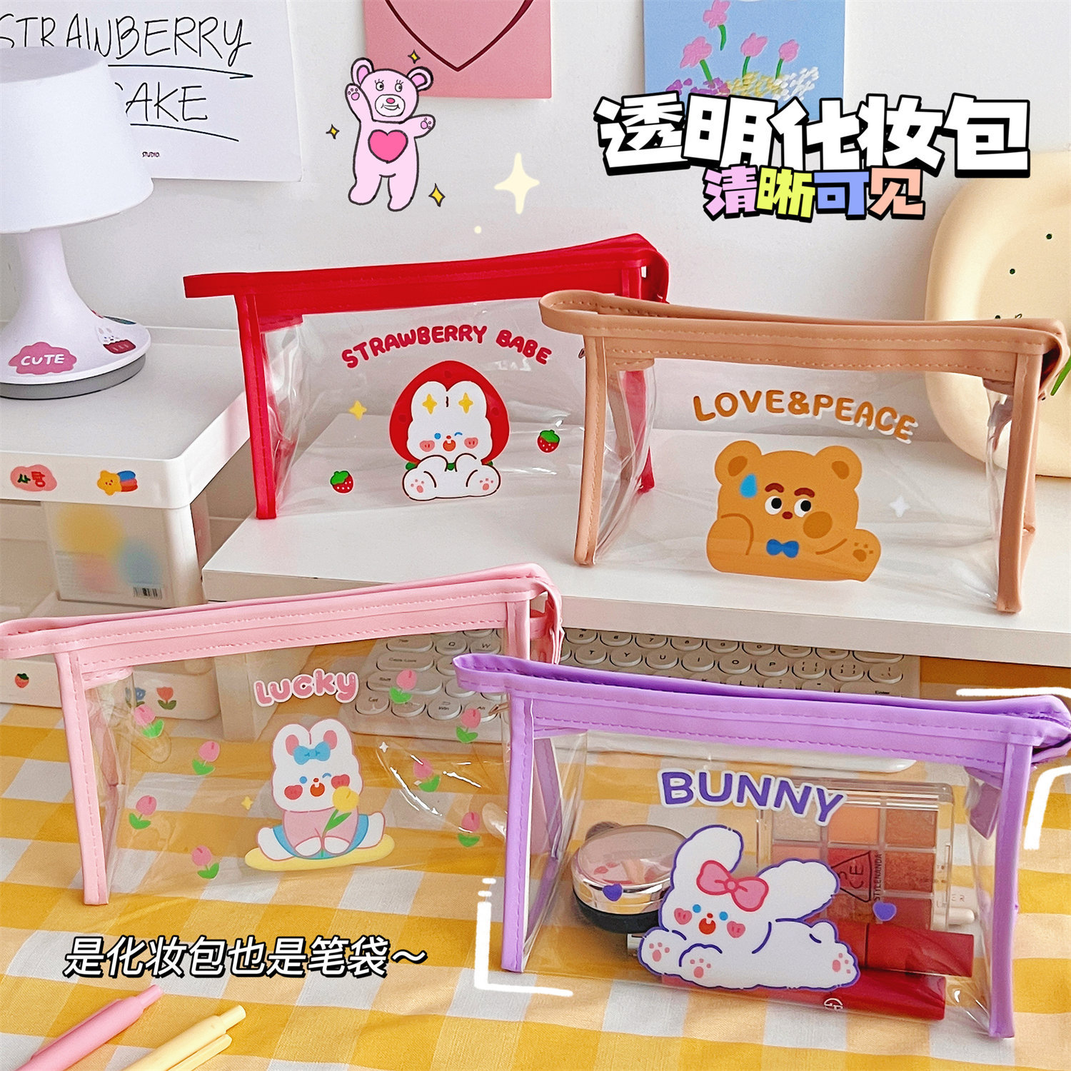 腾亿卡通透明三角化妆包便携式随身大容量洗漱包防水化妆品收纳包
