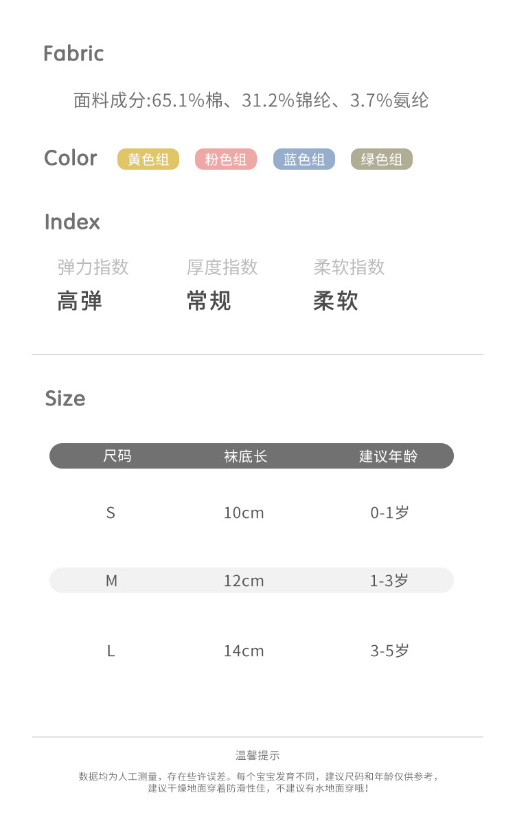 童袜尺码 S码0-1岁,M码1-3岁,L码3-5岁