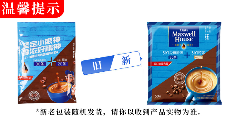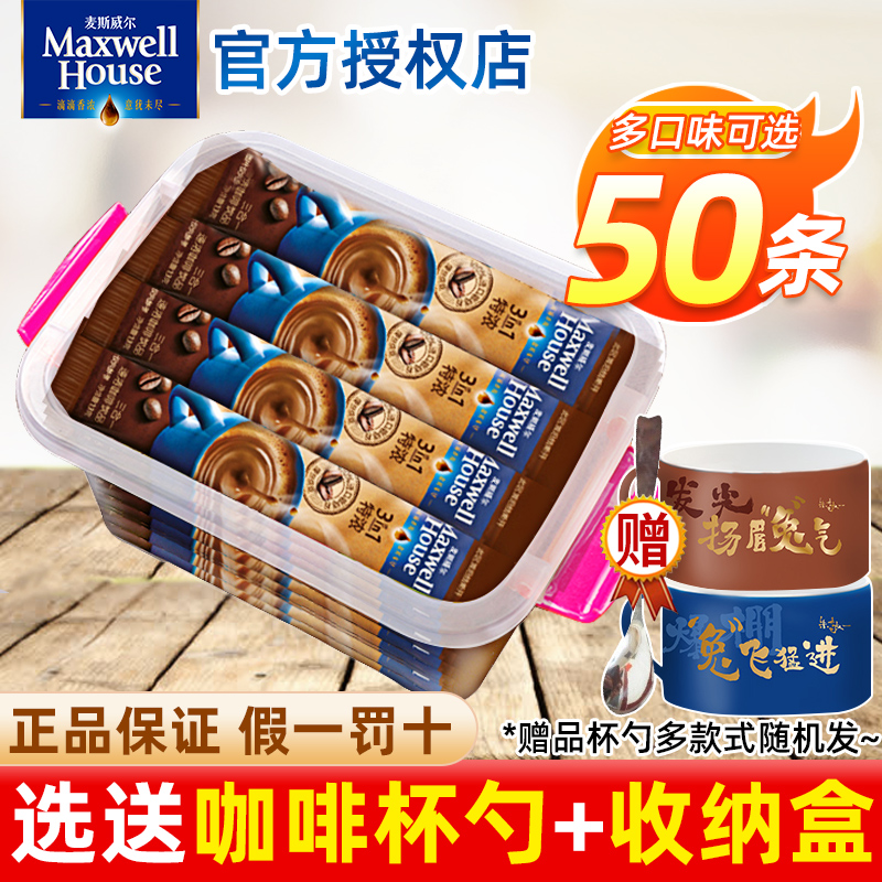 吳磊同款麥斯威爾咖啡原味特濃三合一速溶咖啡粉提神咖啡50條正品
