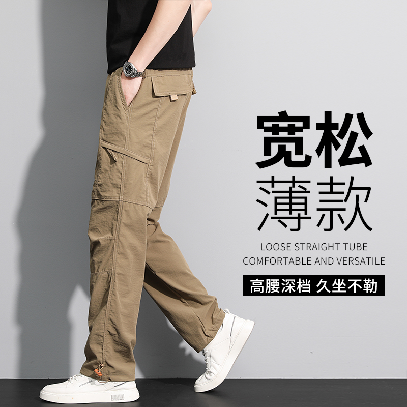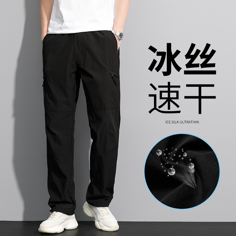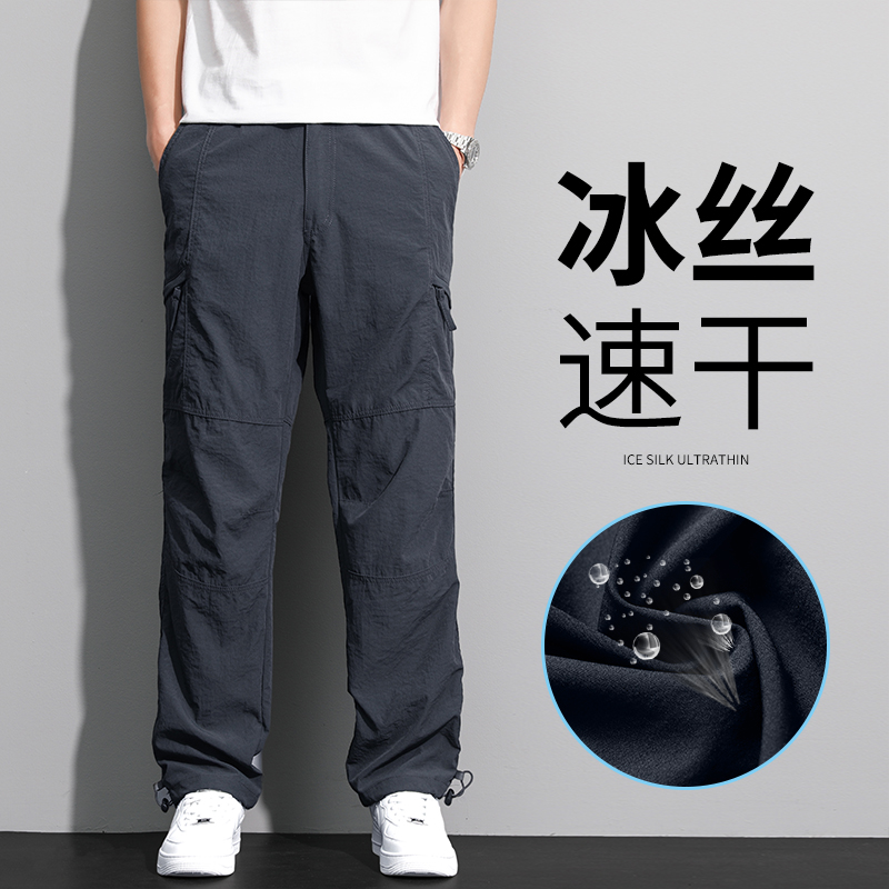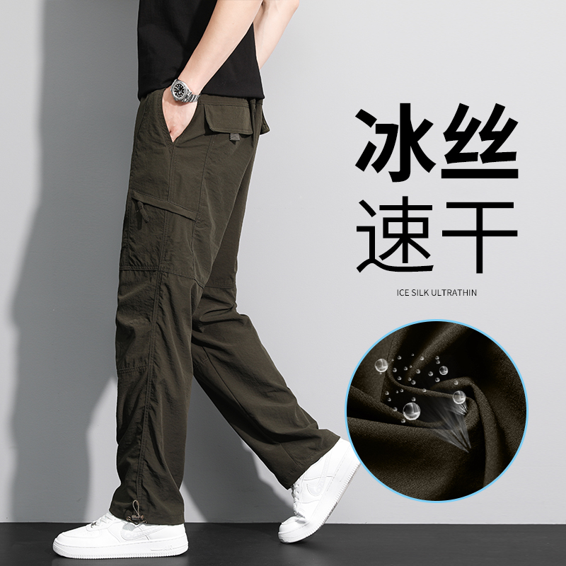 工裝褲子男夏季薄款冰絲速乾褲男款寬鬆直筒男士休閒長褲新款男褲