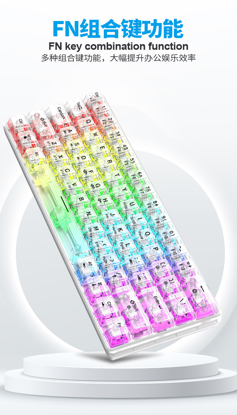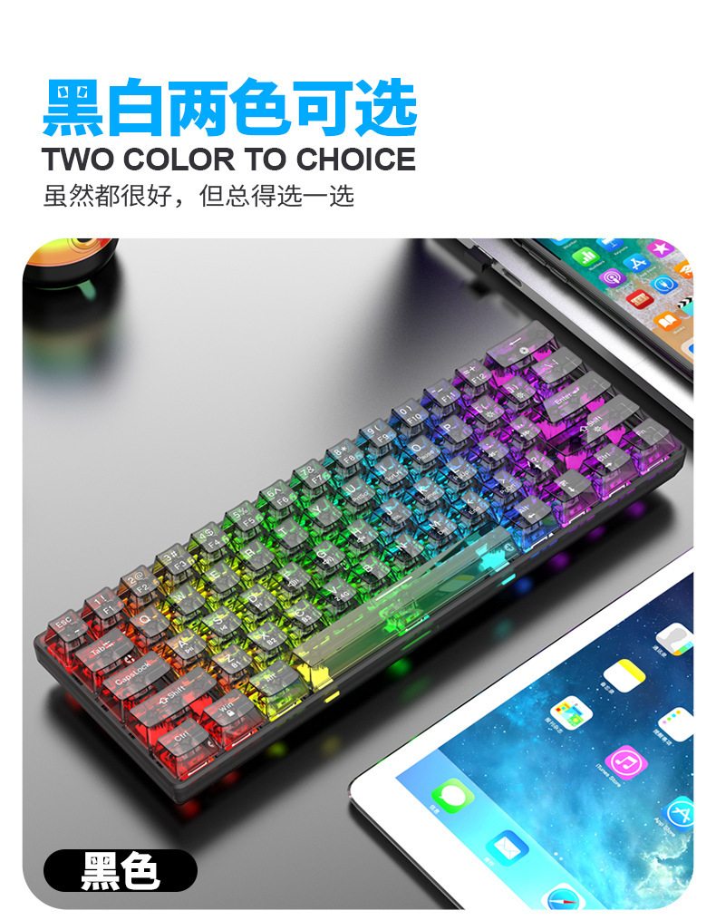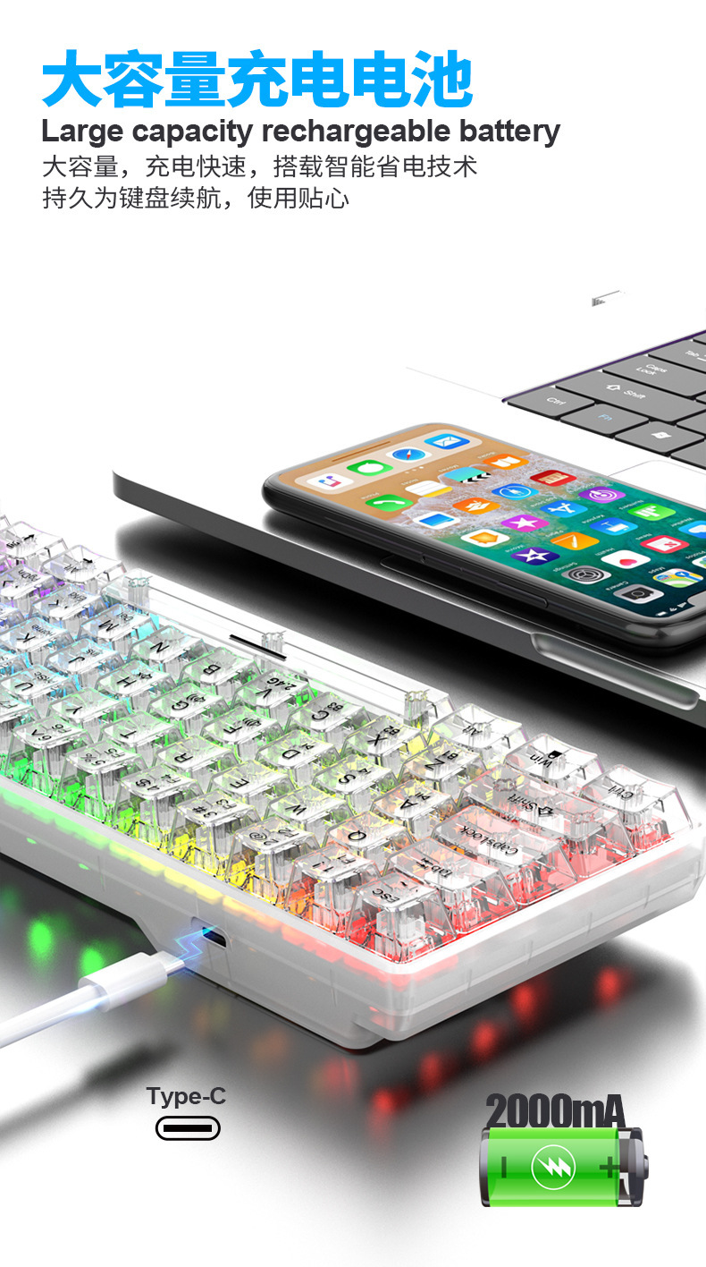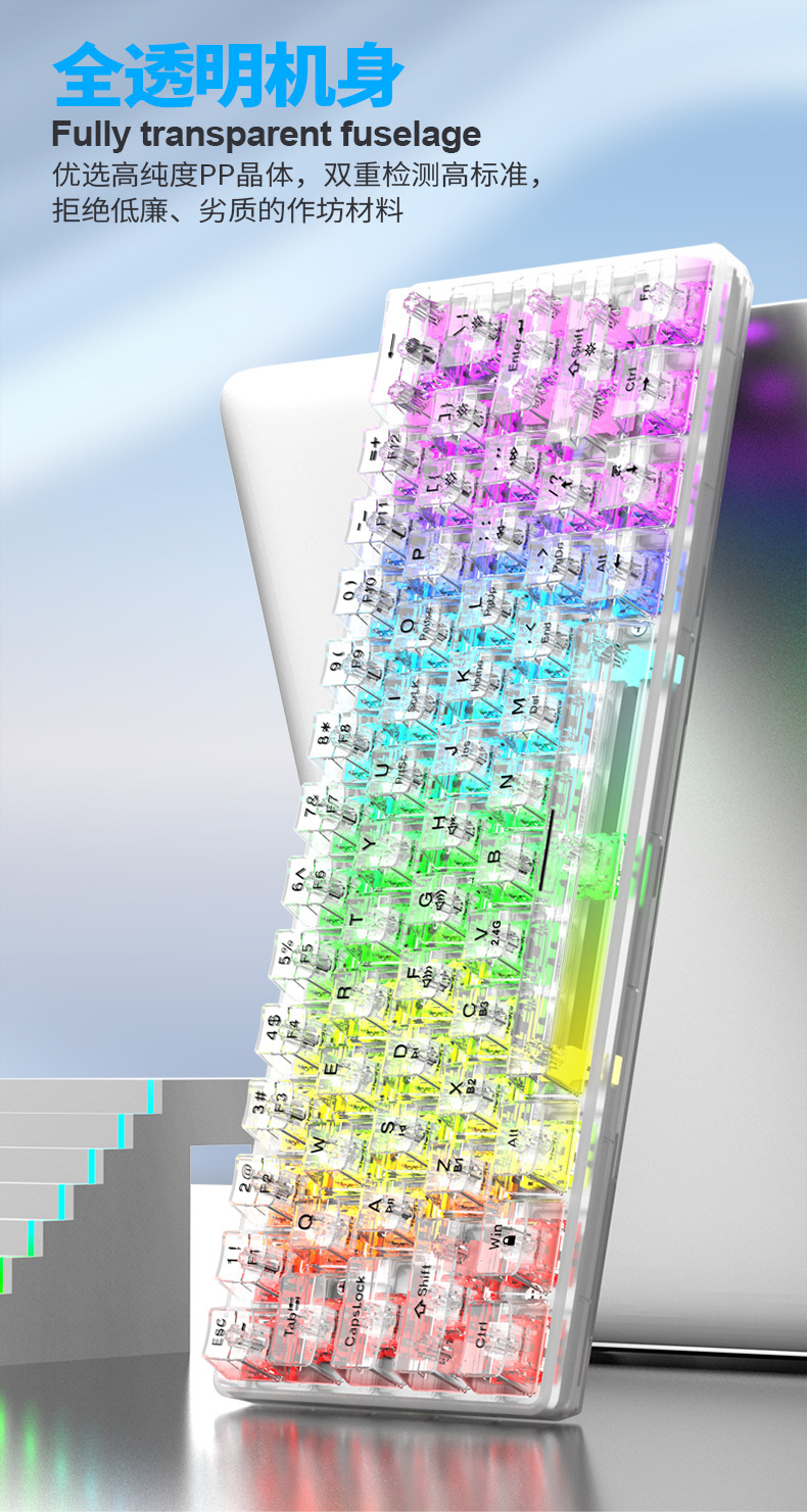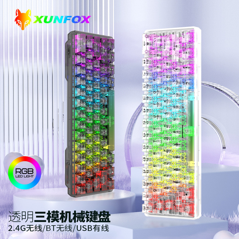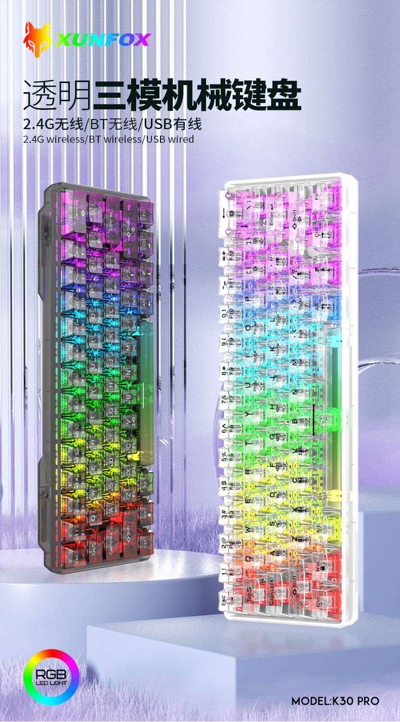 炫银狐K30Pro透明无线蓝牙三模机械键盘迷你电竞游戏键盘外设2.4G