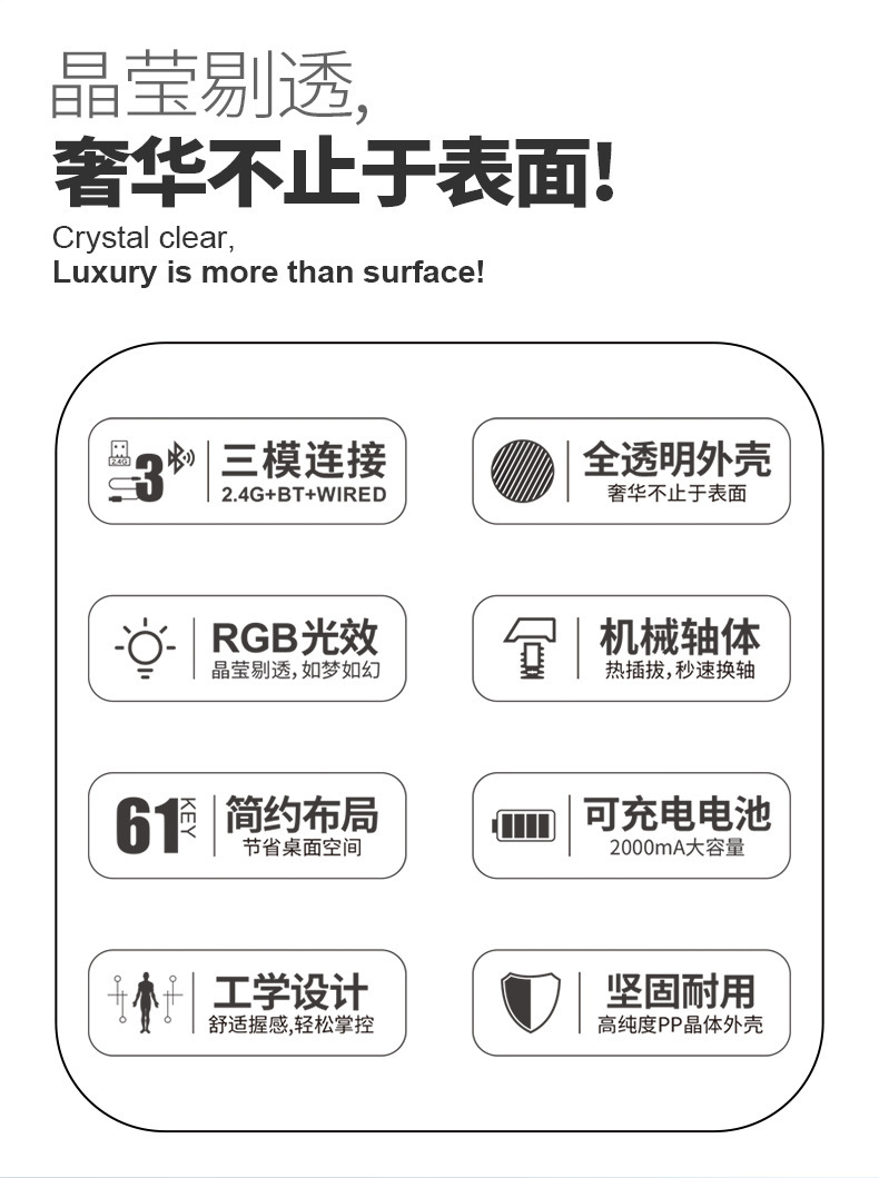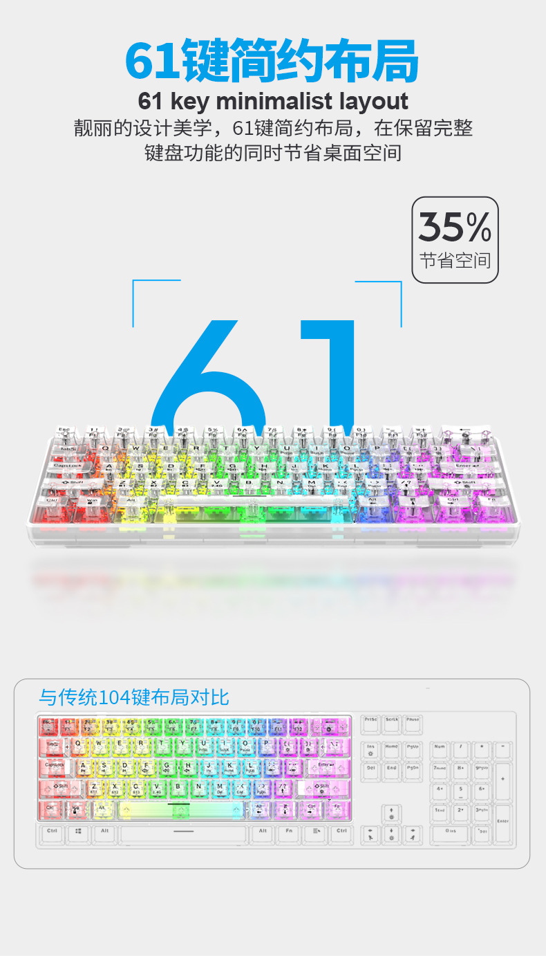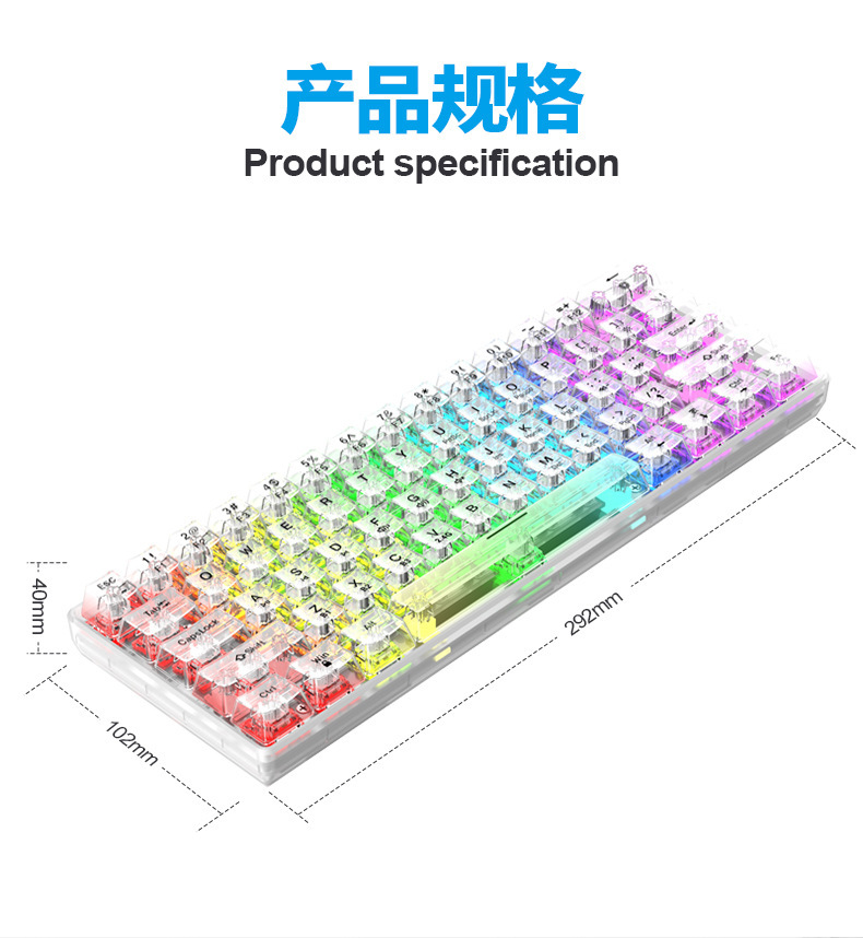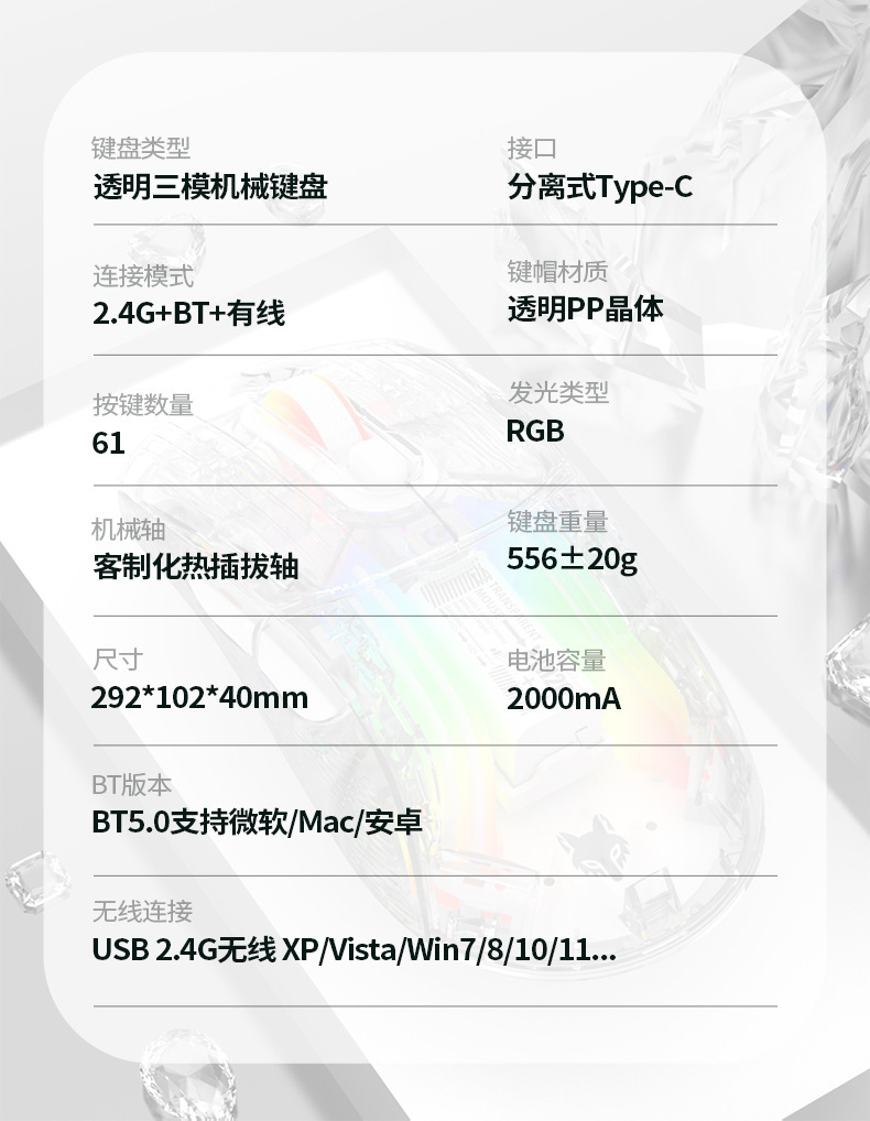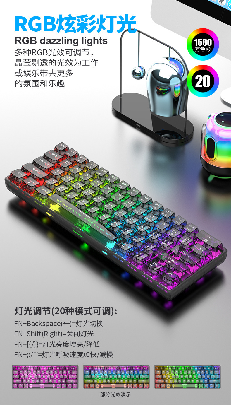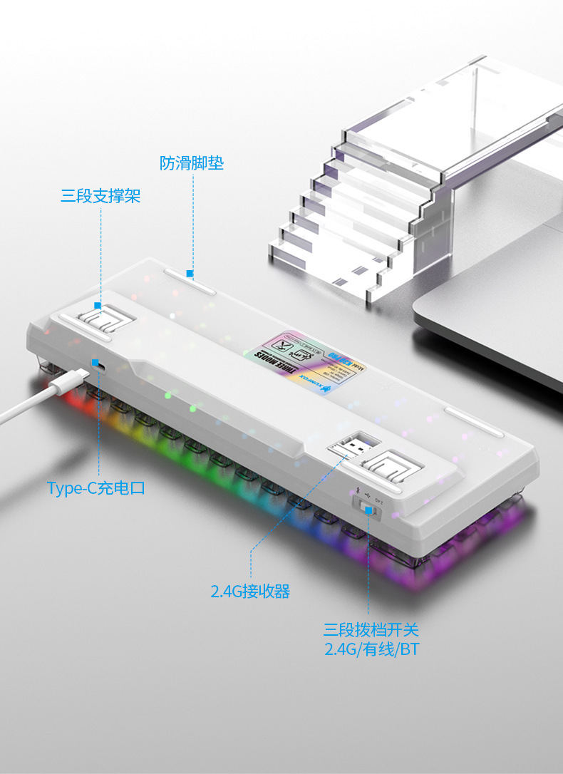 炫银狐K30Pro透明无线蓝牙三模机械键盘迷你电竞游戏键盘外设2.4G