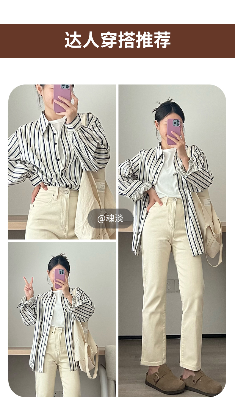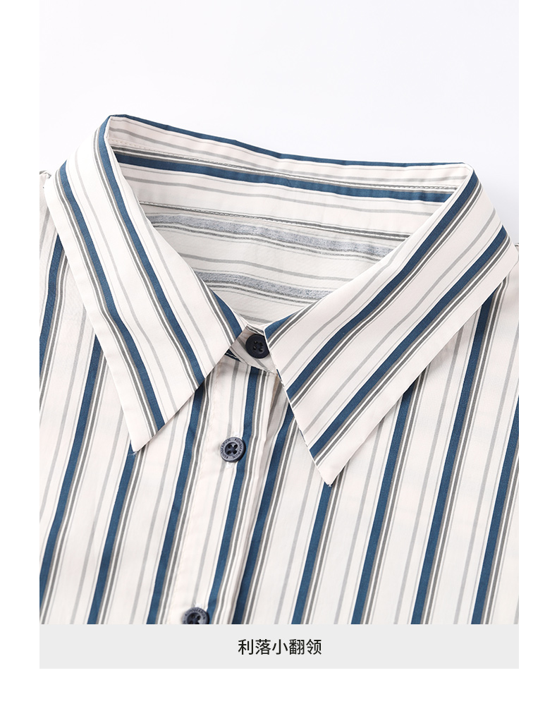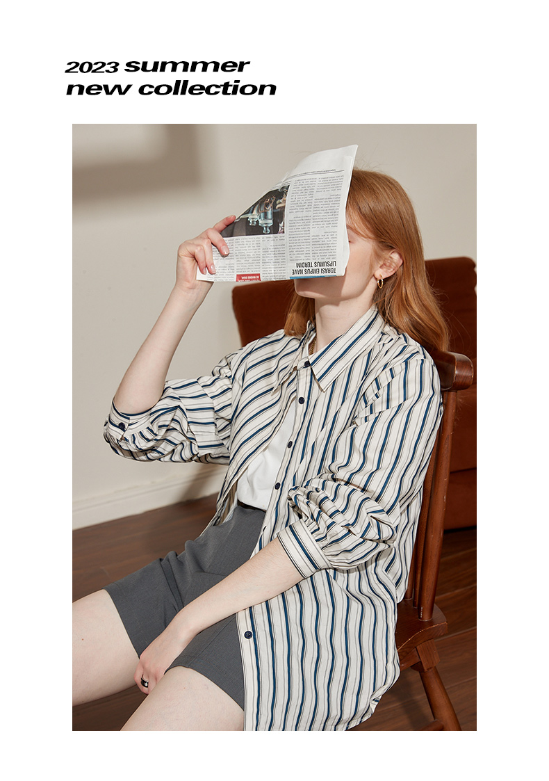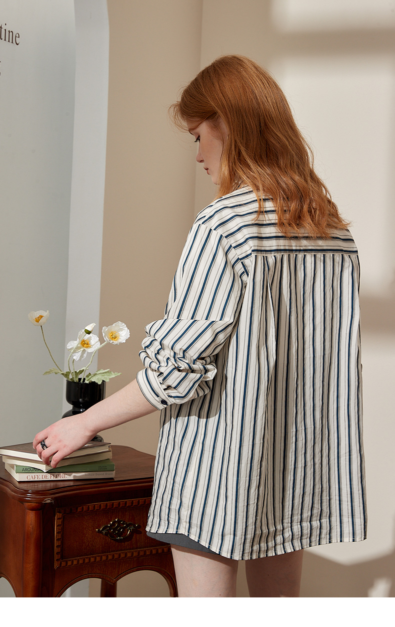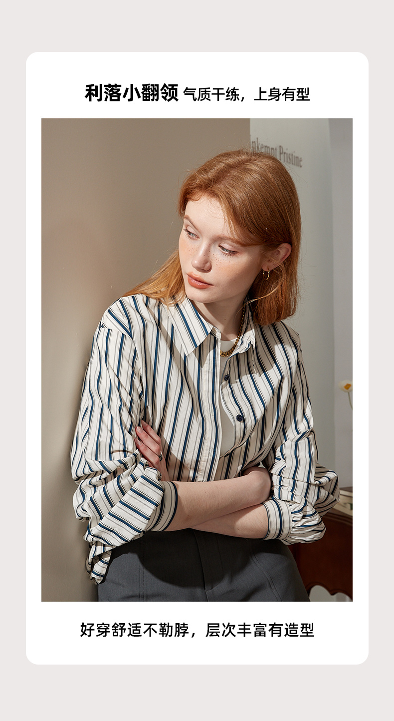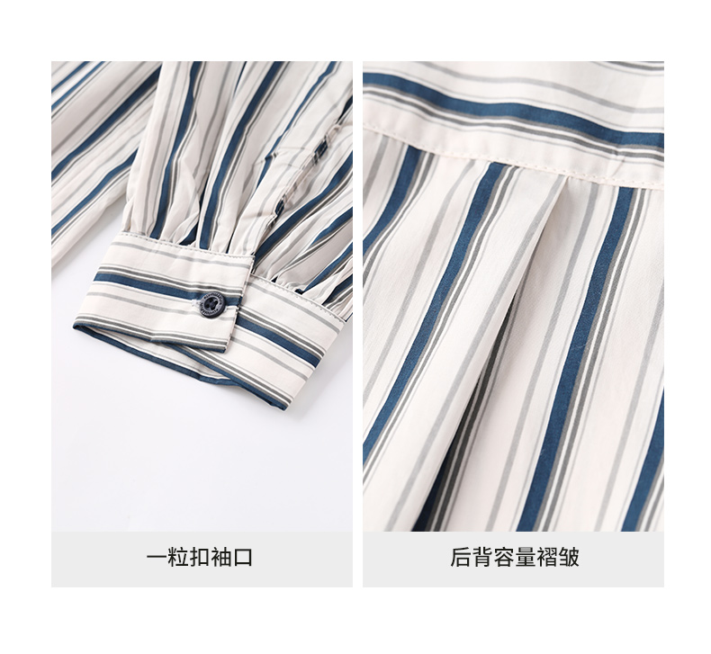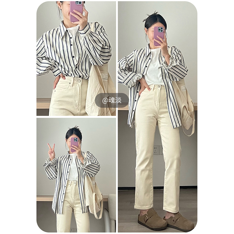 【100棉】庫恩瑪維2023新款長袖條紋襯衫女秋外穿襯衫