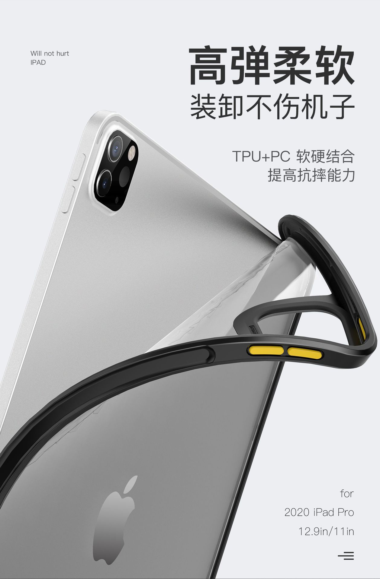适用ipad pro11寸保护壳Air4/5透明防摔10.2硬壳软边12.9防弯底壳