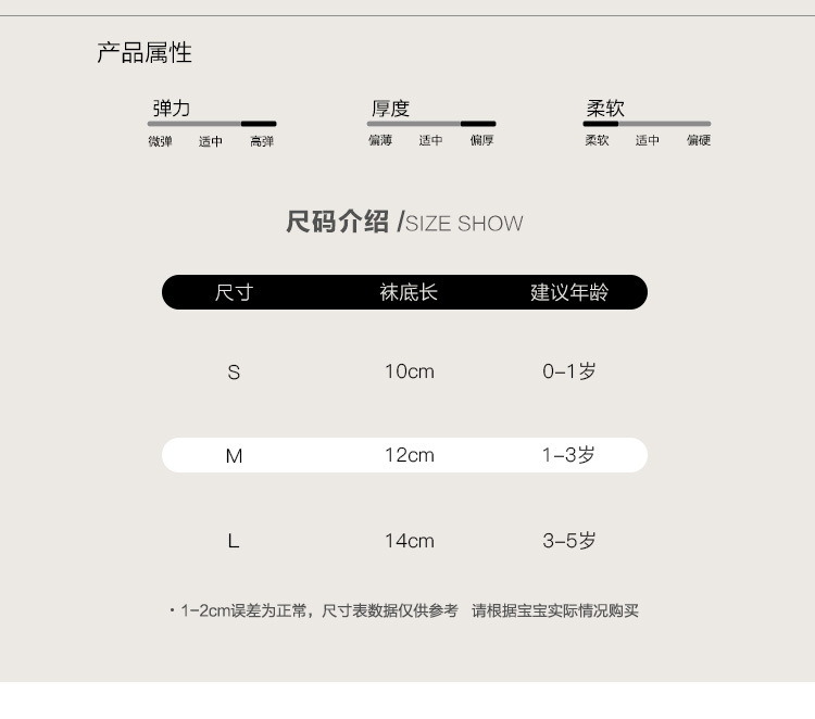 童袜尺码 S码0-1岁,M码1-3岁,L码3-5岁