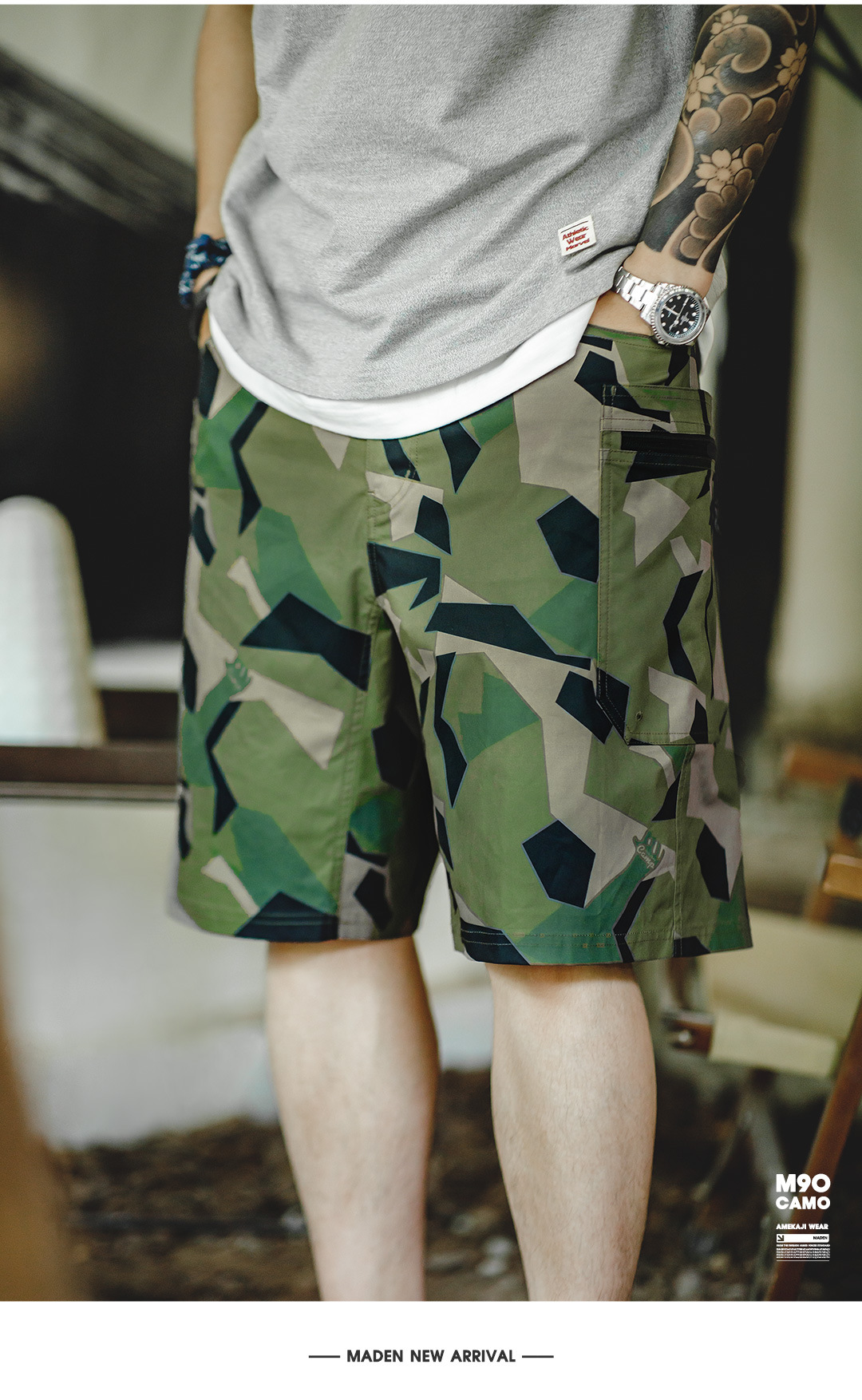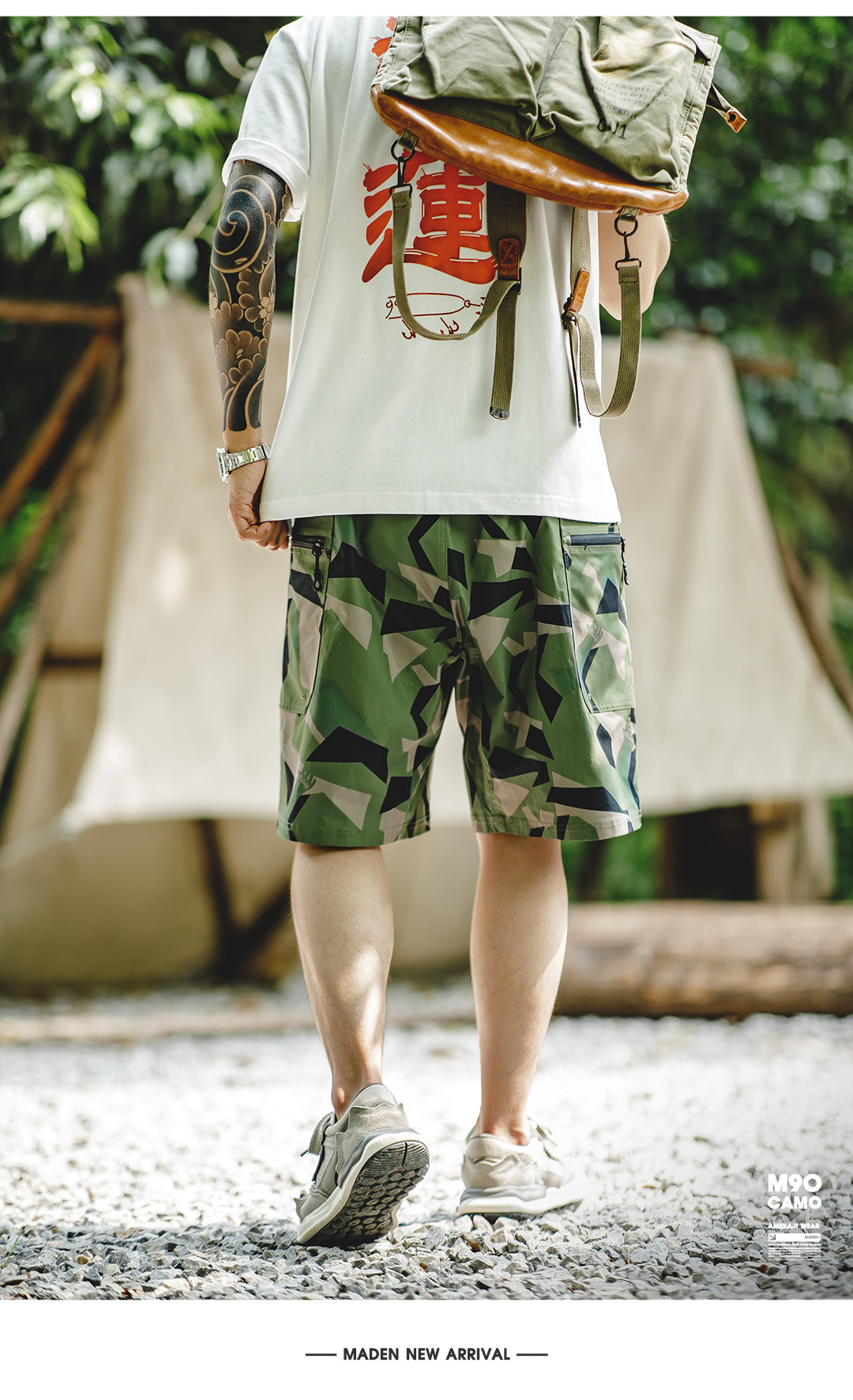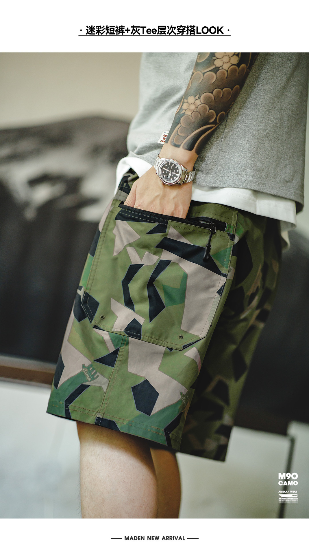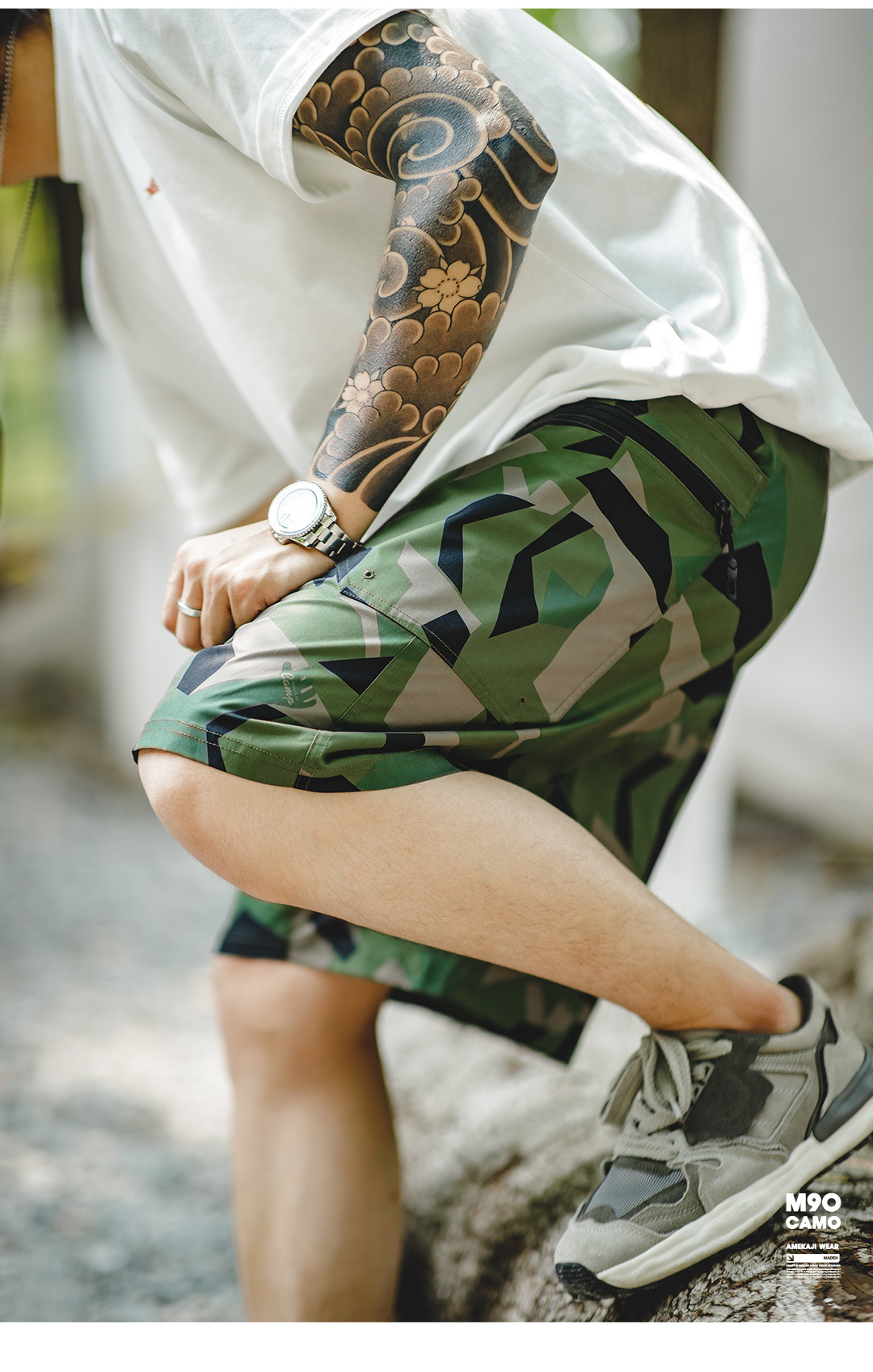 馬登工裝 美式復古M90幾何迷彩短褲直筒軍事風半褲透氣五分褲男夏