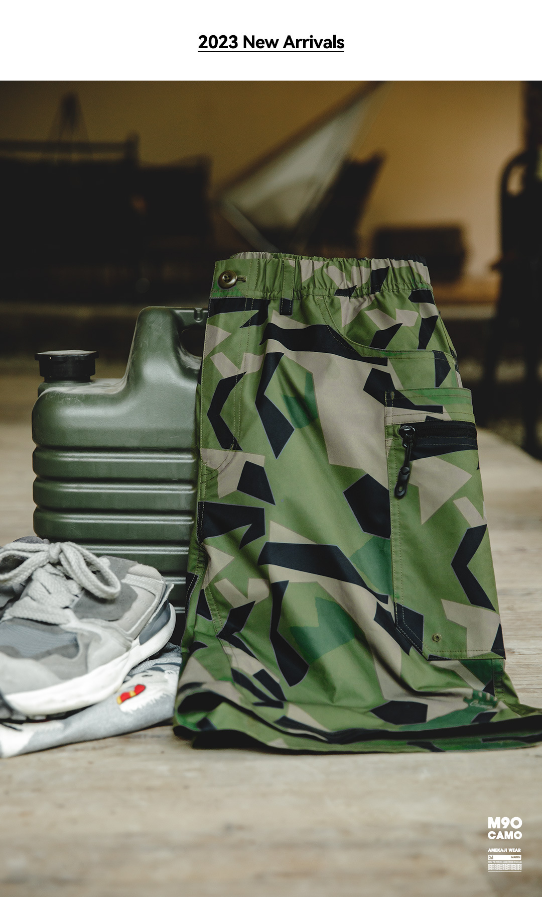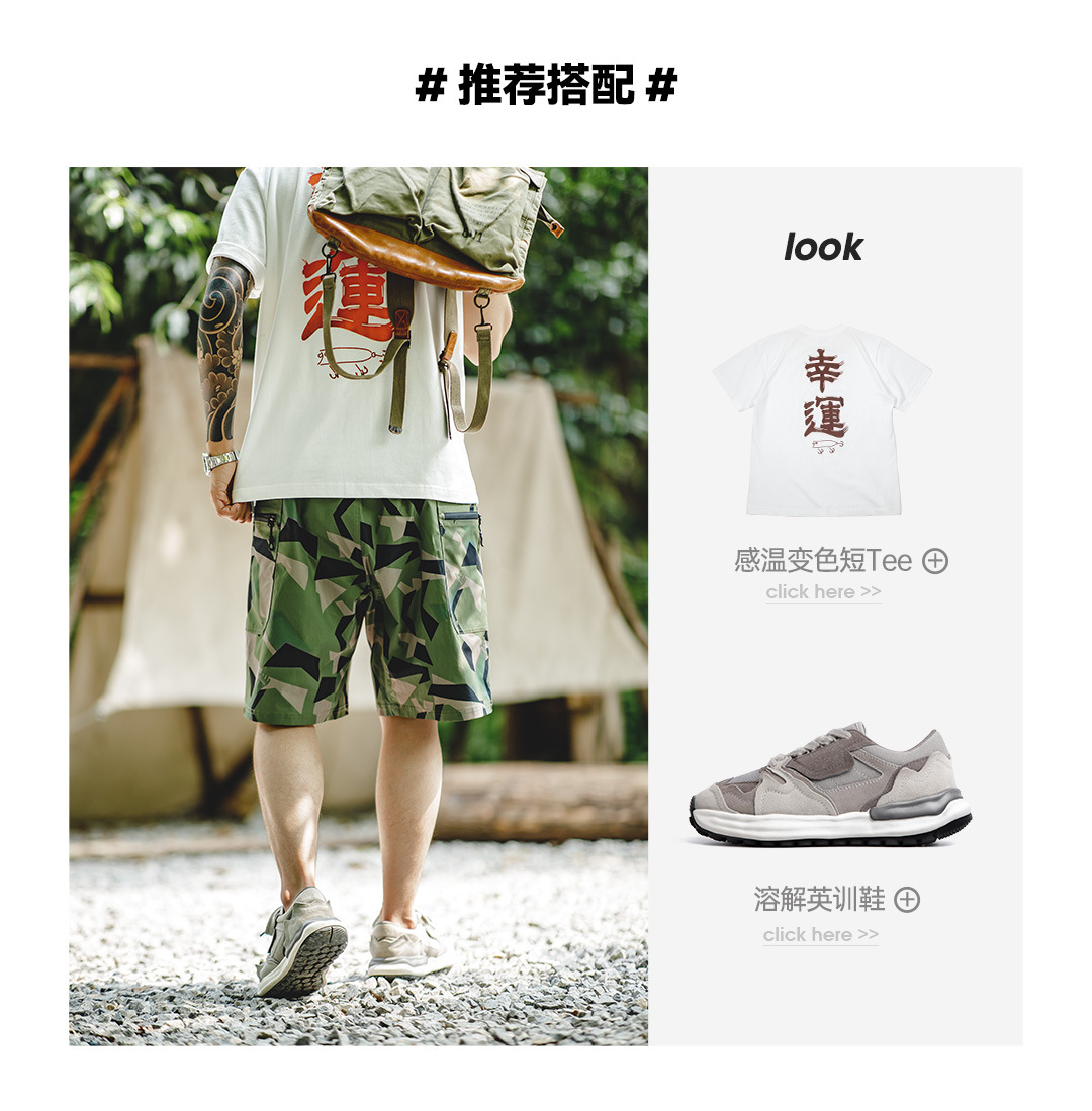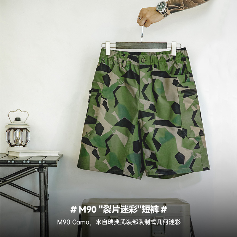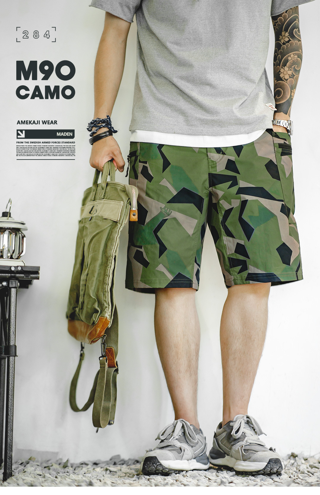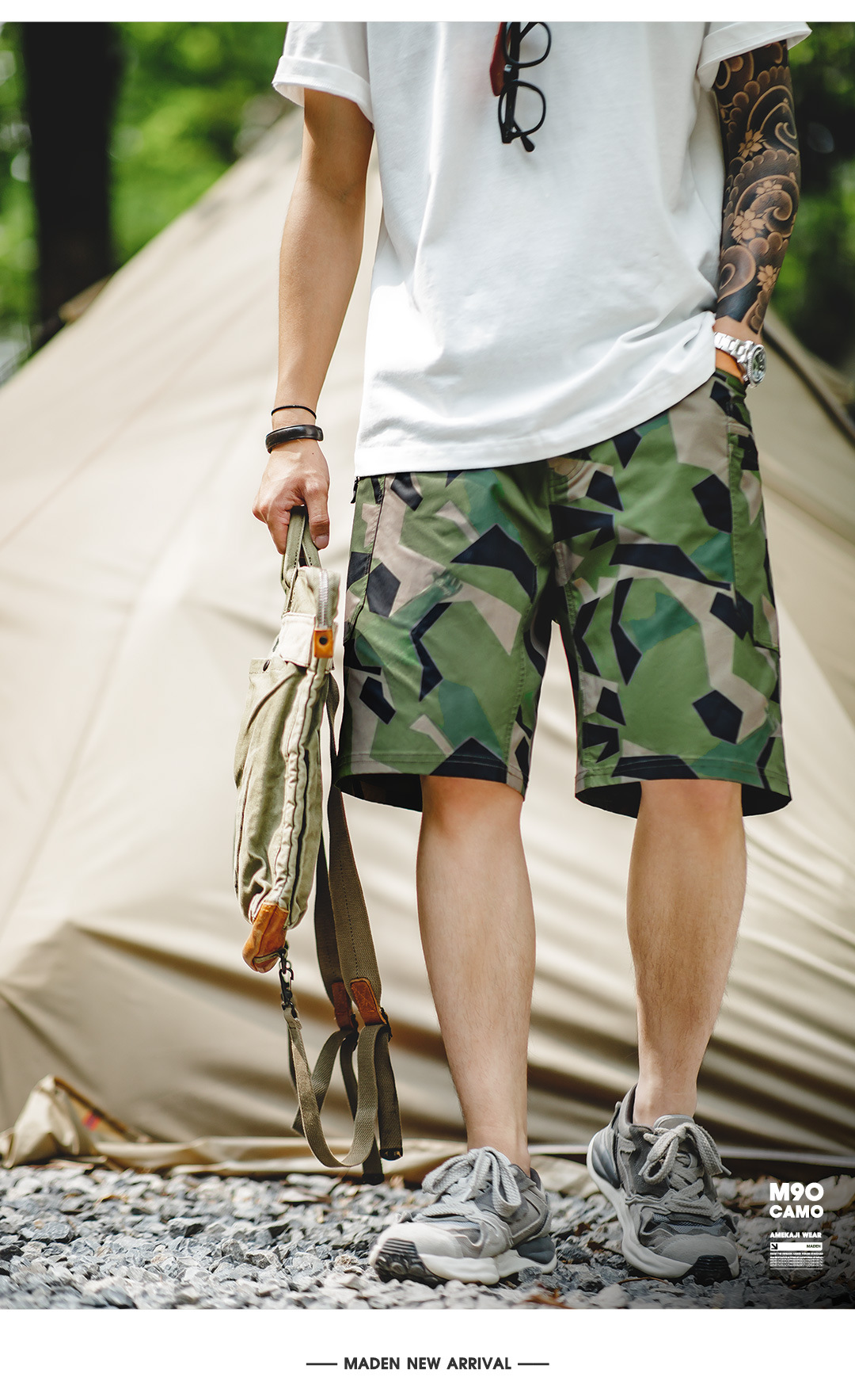 馬登工裝 美式復古M90幾何迷彩短褲直筒軍事風半褲透氣五分褲男夏
