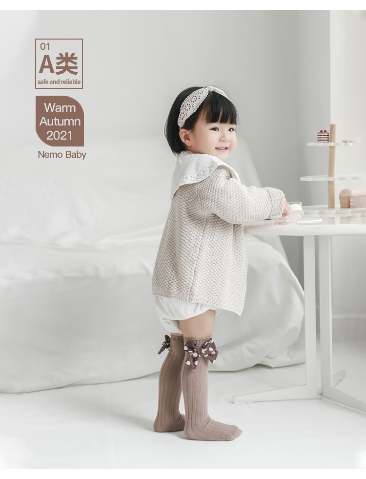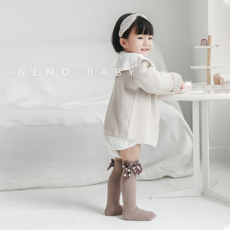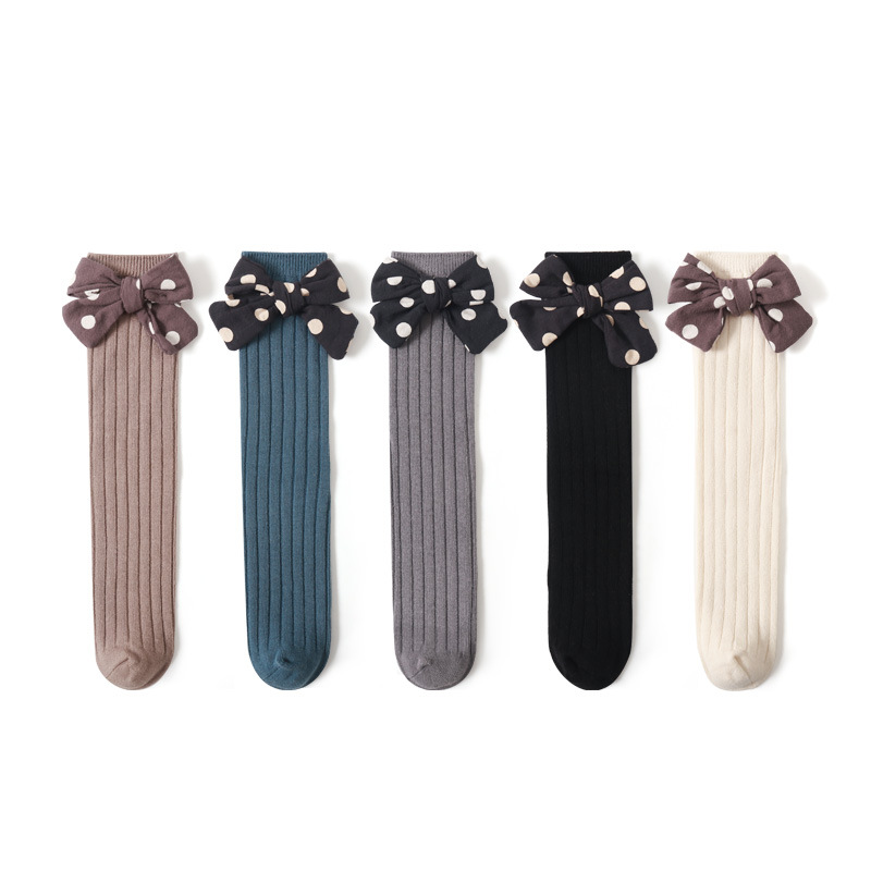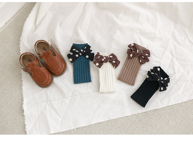儿童袜子秋冬精梳棉韩版网红波点大蝴蝶结ins风中筒袜宝宝亲子袜