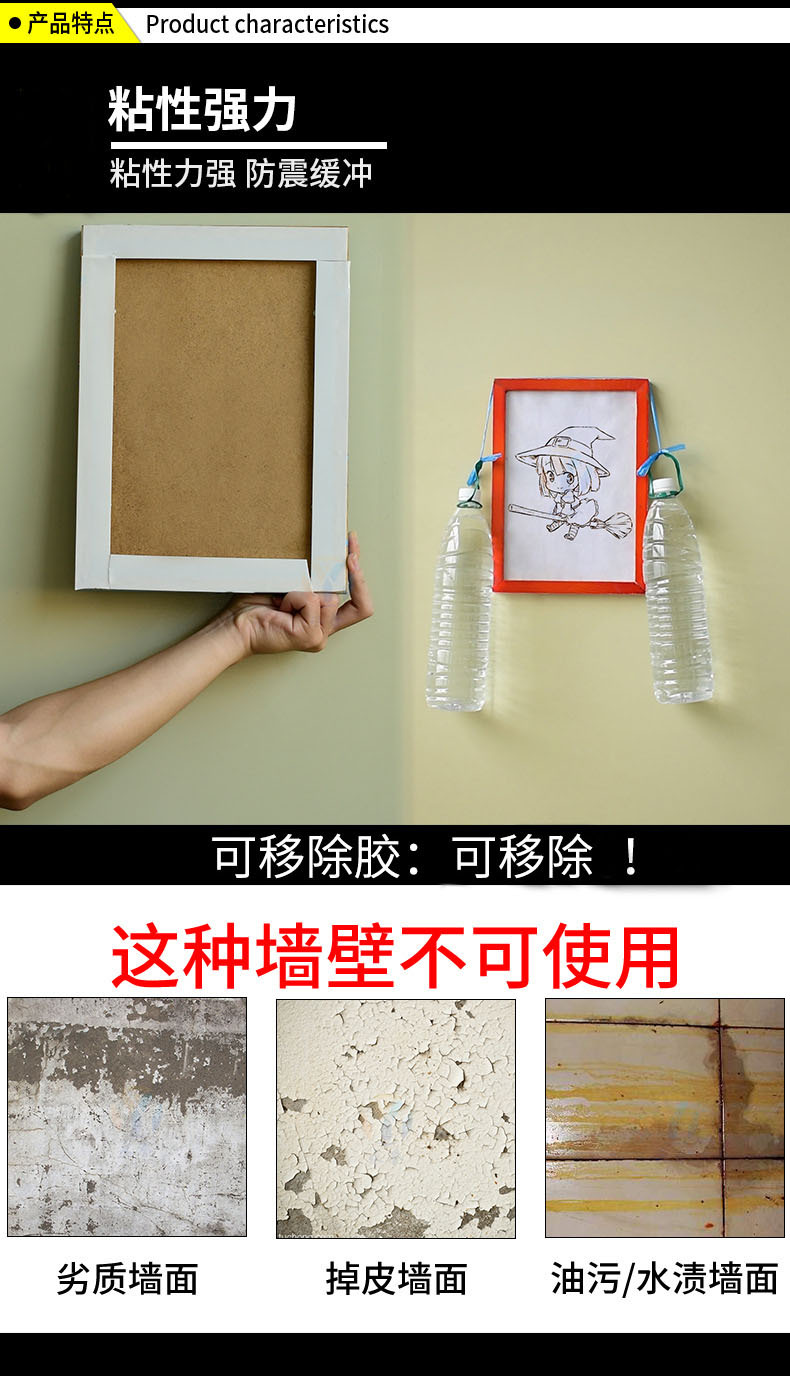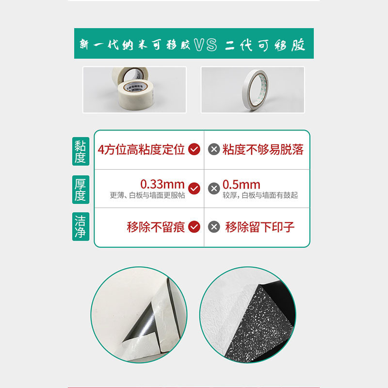 不伤墙水洗吸磁软白板可移胶胶带专用可移除车家用海绵可移无痕