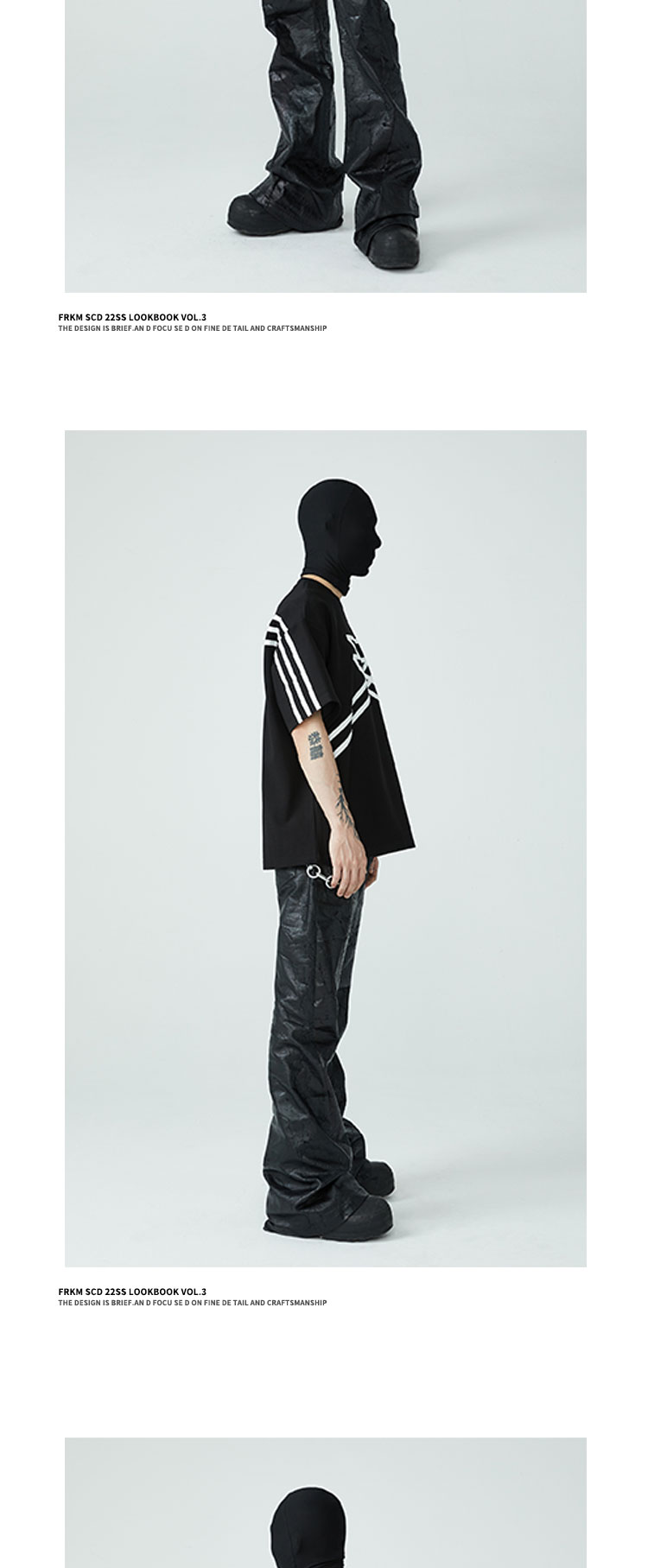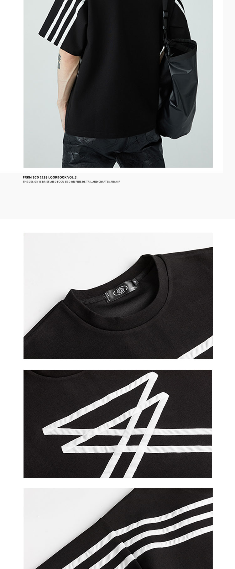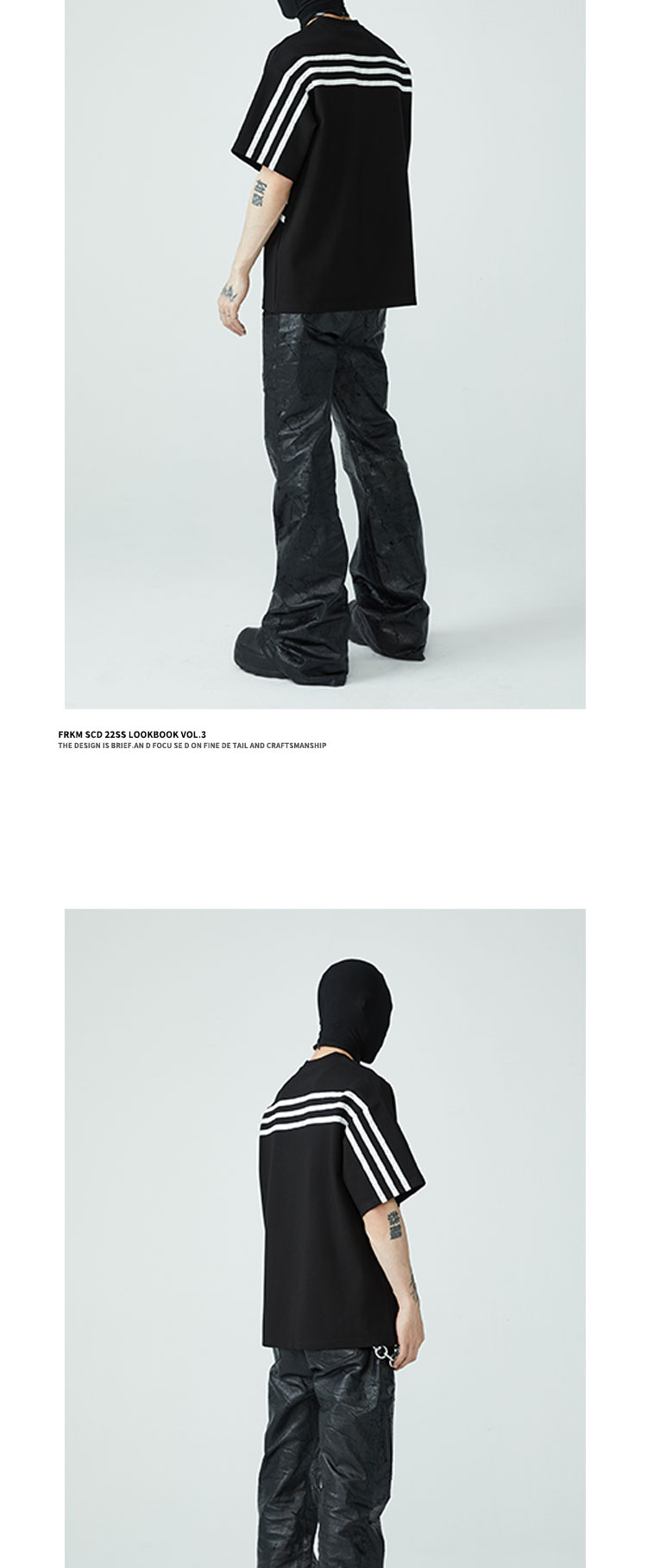 FRKM SCD 23SS 條紋拼接短袖T恤 黑色寬鬆上衣 夏季新款撞色男