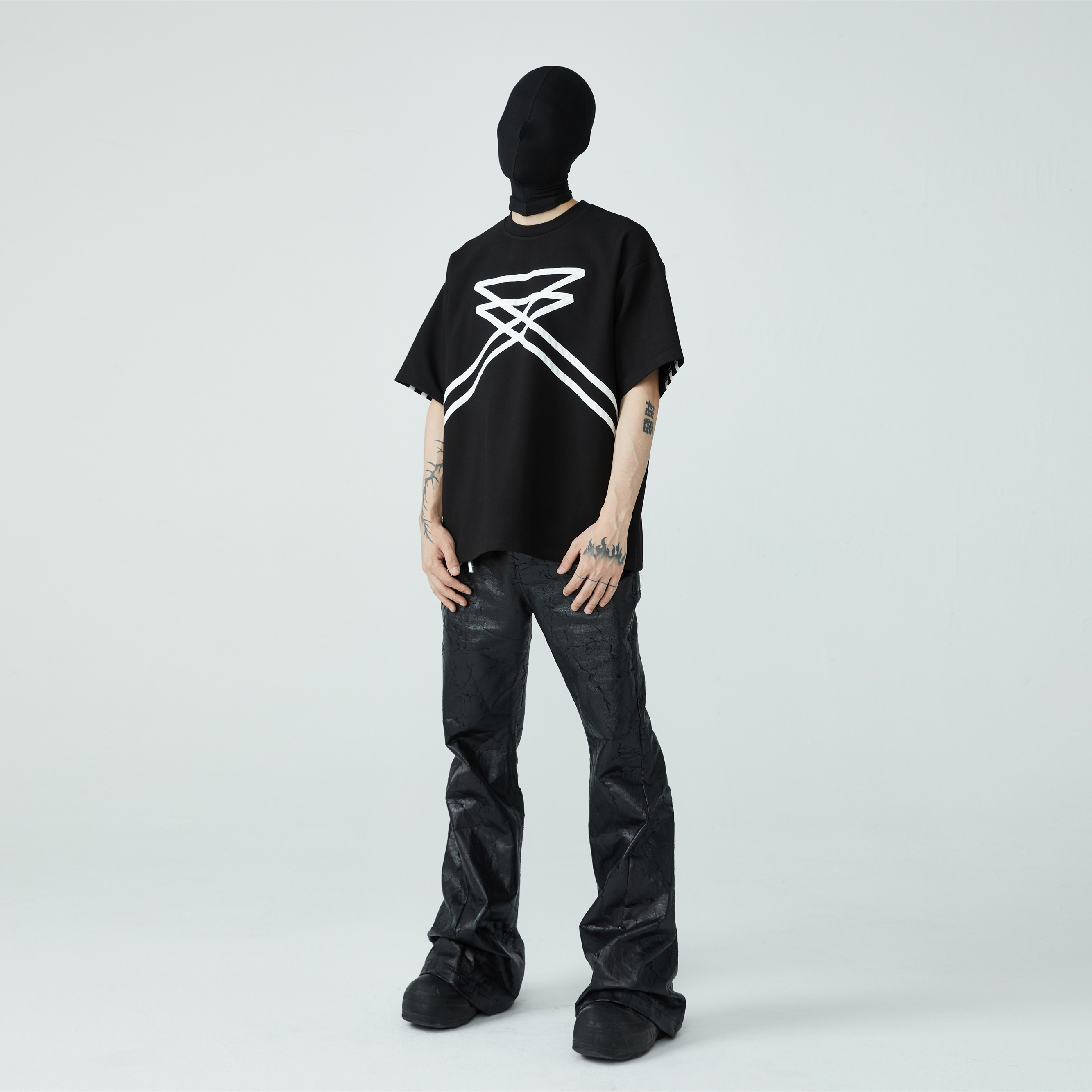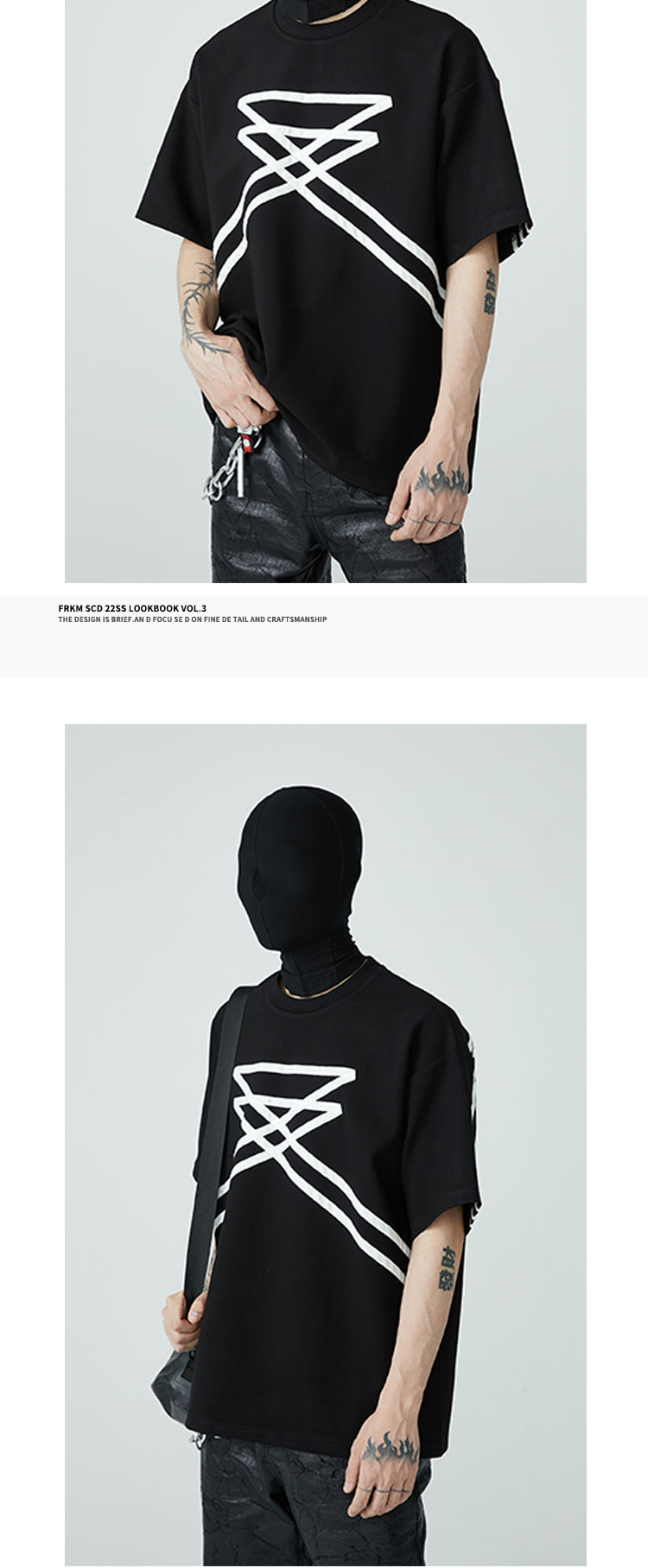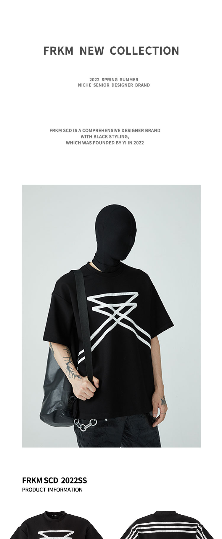 FRKM SCD 23SS 條紋拼接短袖T恤 黑色寬鬆上衣 夏季新款撞色男