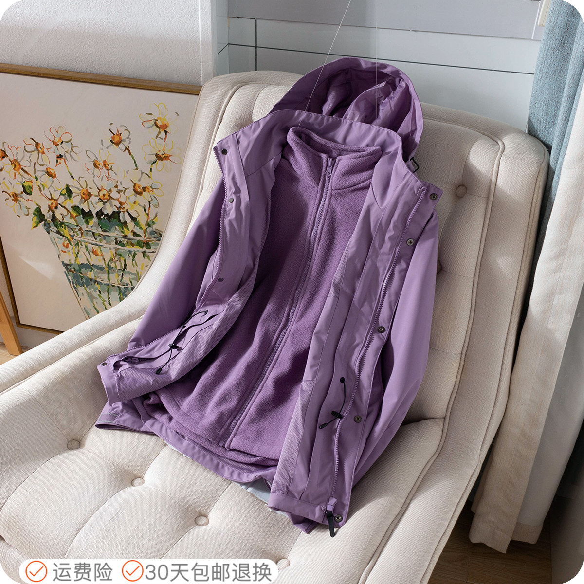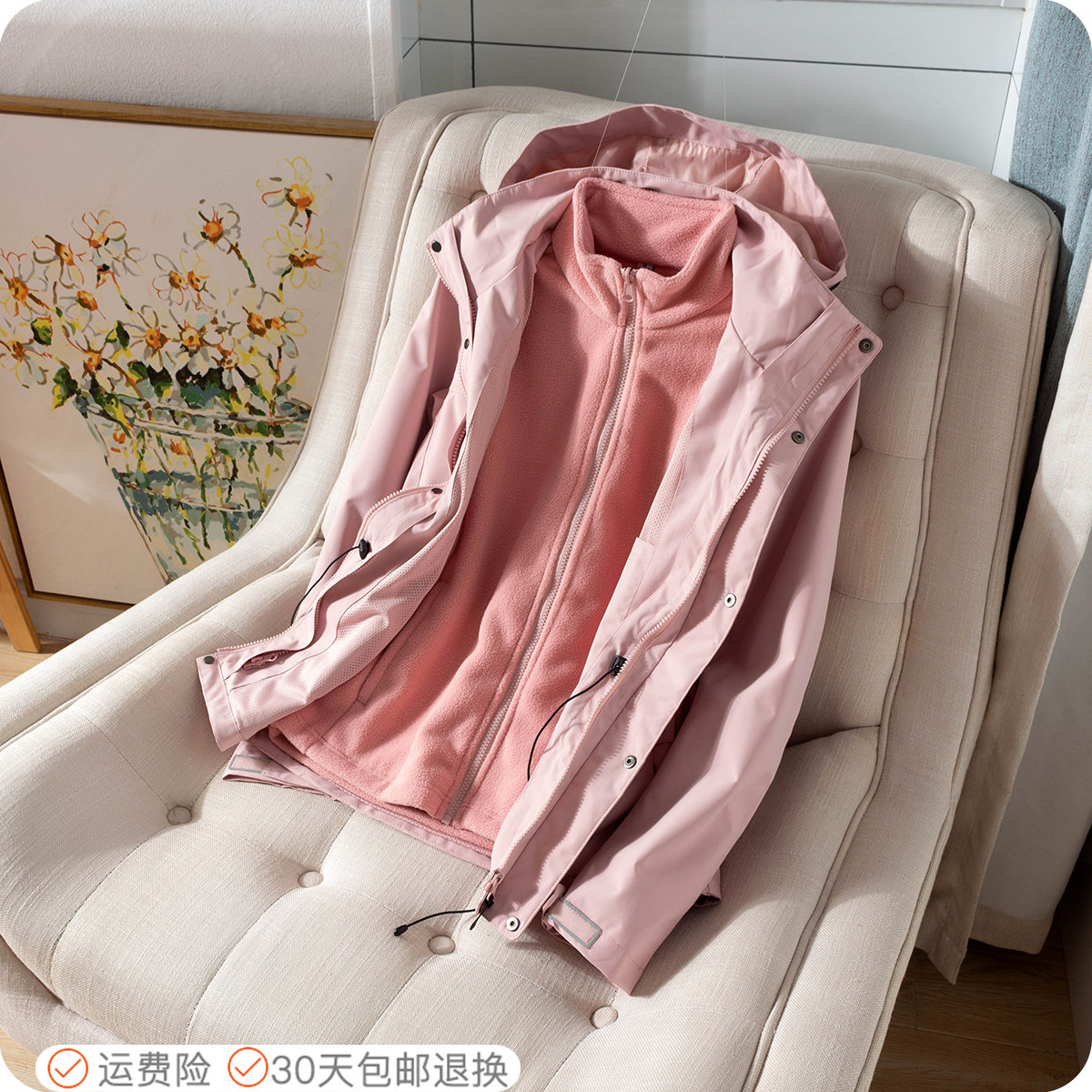 高密柔暖雙面絨 戶外抓絨衝鋒衣女潮牌防水外套防風衣三合一可拆