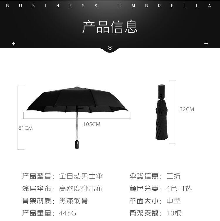抗风全自动折叠10骨伞三折商务伞晴雨伞可加印logo雨伞