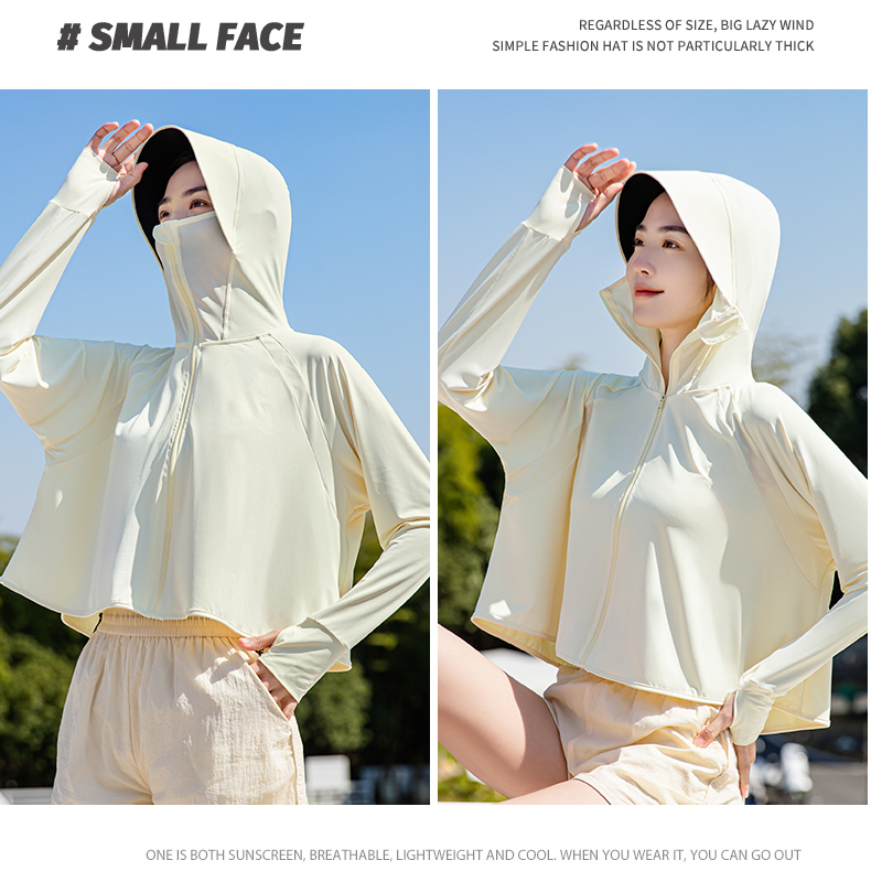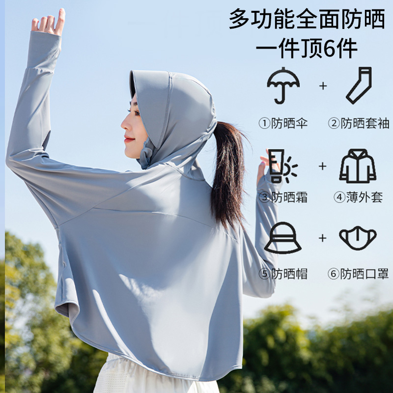 防曬衣2023新款黑膠帽簷原紗冰絲UPF50+戶外薄款抗UV防曬服