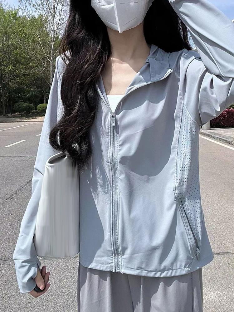 連帽冰絲防曬衣外套女夏季透氣網孔戶外騎行遮陽薄款防曬服上衣衫