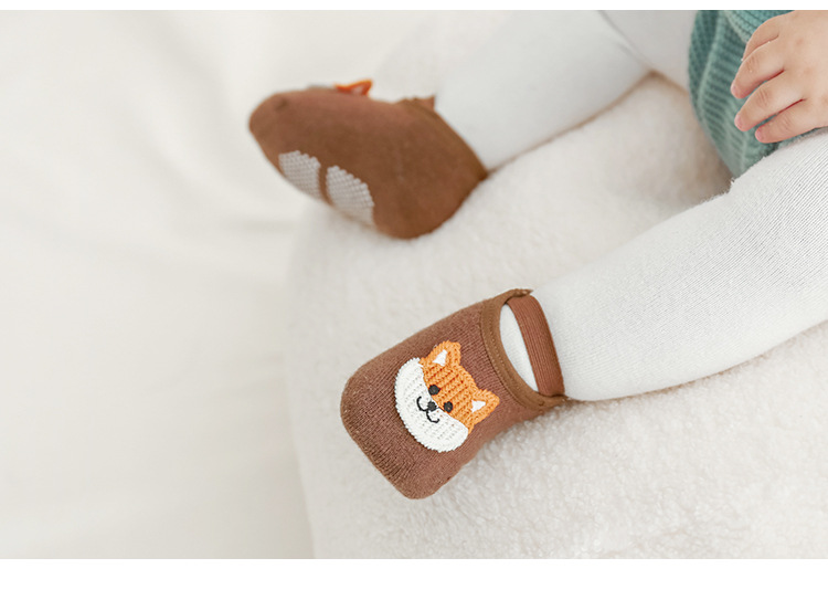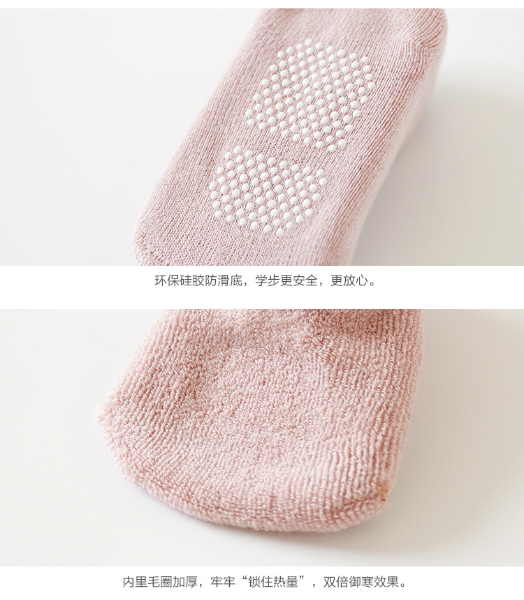 新品a类宝宝袜子秋冬加厚毛圈地板袜韩版卡通防滑新生婴儿学步袜