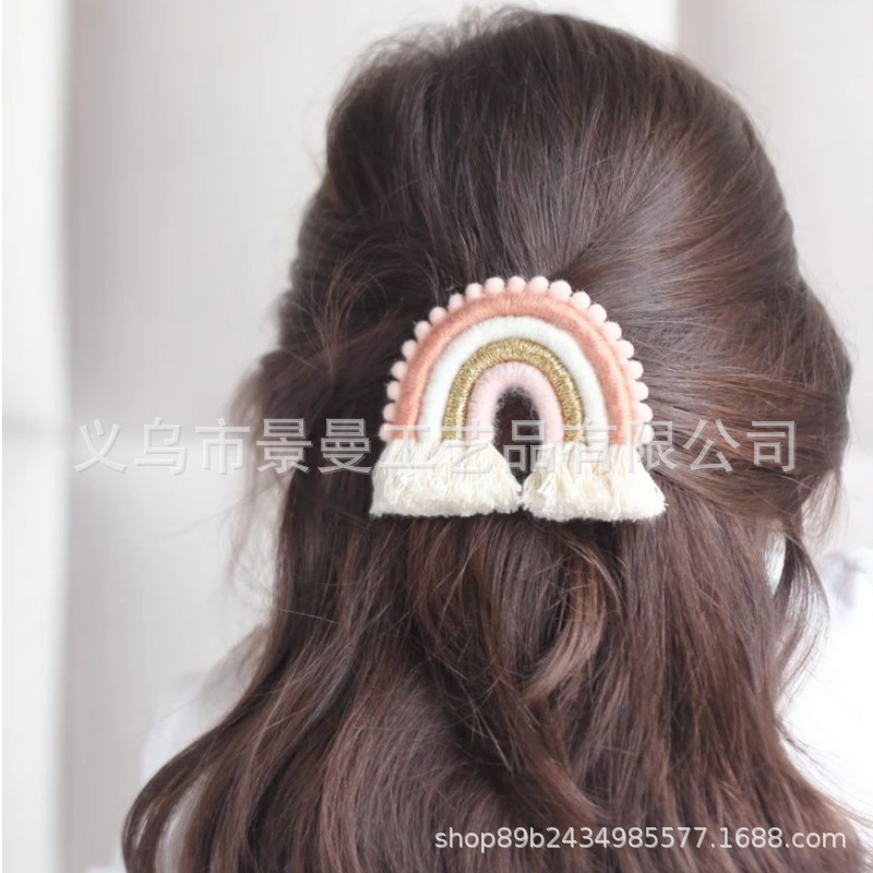 温柔手工彩虹鸭嘴夹发饰少女儿童头发夹子可爱发卡不伤发甜美头饰