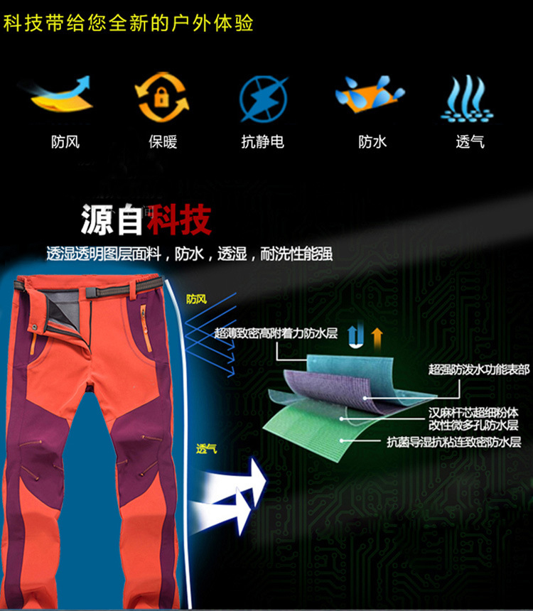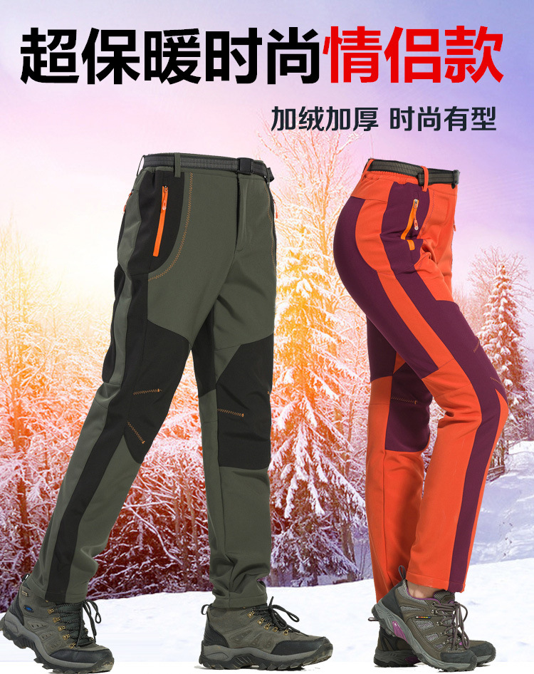 秋冬衝鋒褲男女戶外登山褲徒步褲加厚加絨防寒耐磨防水防風長褲潮