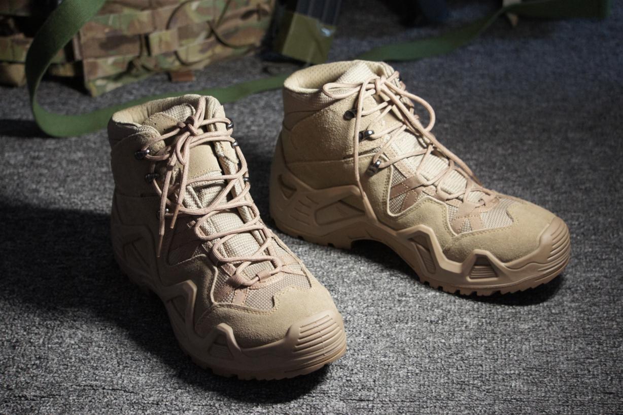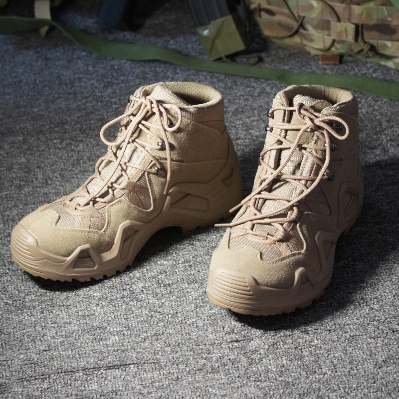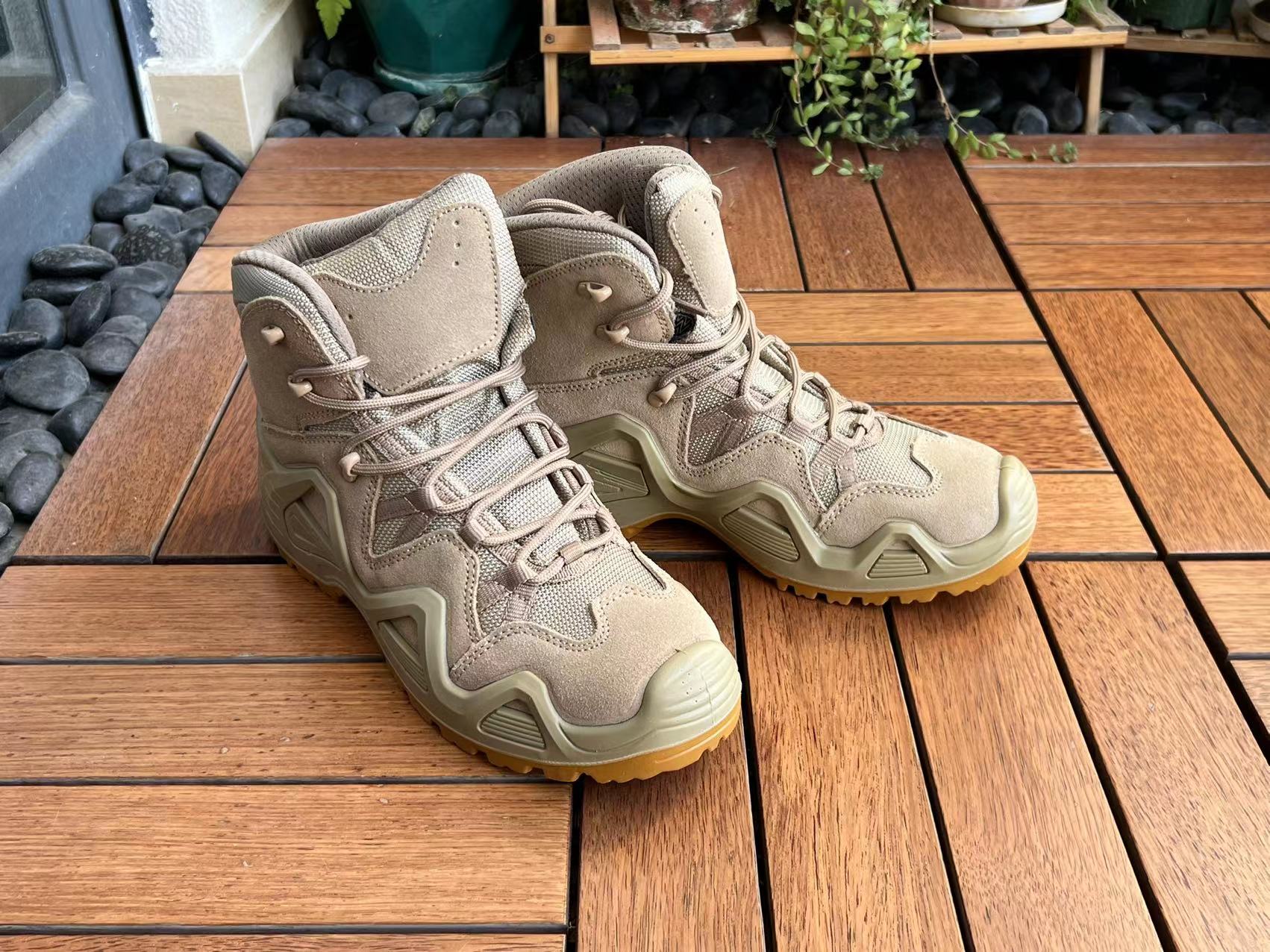 戰術湯姆 卡其色戰術戶外 沙色中筒靴登山鞋 軍迷徒步運動戰鬥靴
