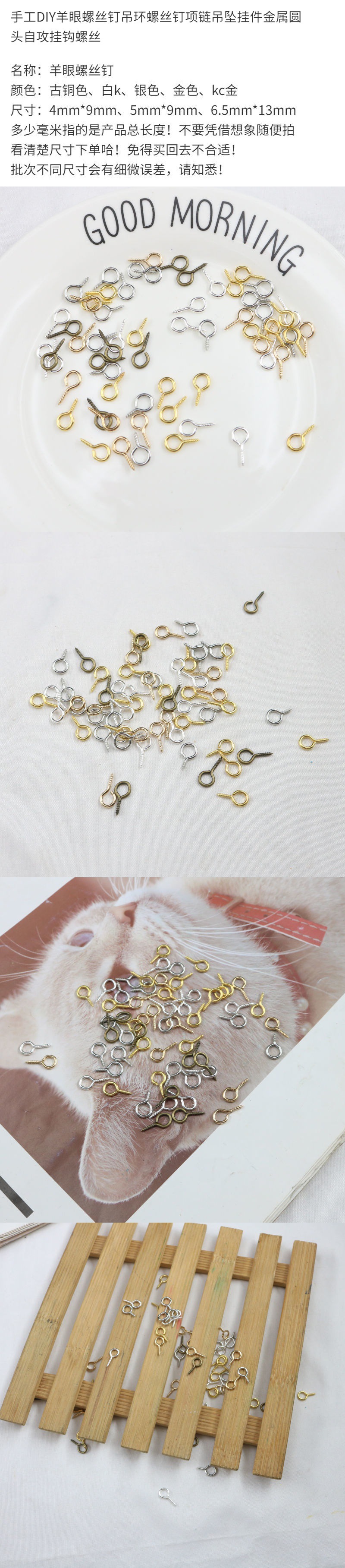 吊环螺丝DIY羊眼螺丝钉吊环螺丝钉项链挂件金属圆头自攻挂钩代发