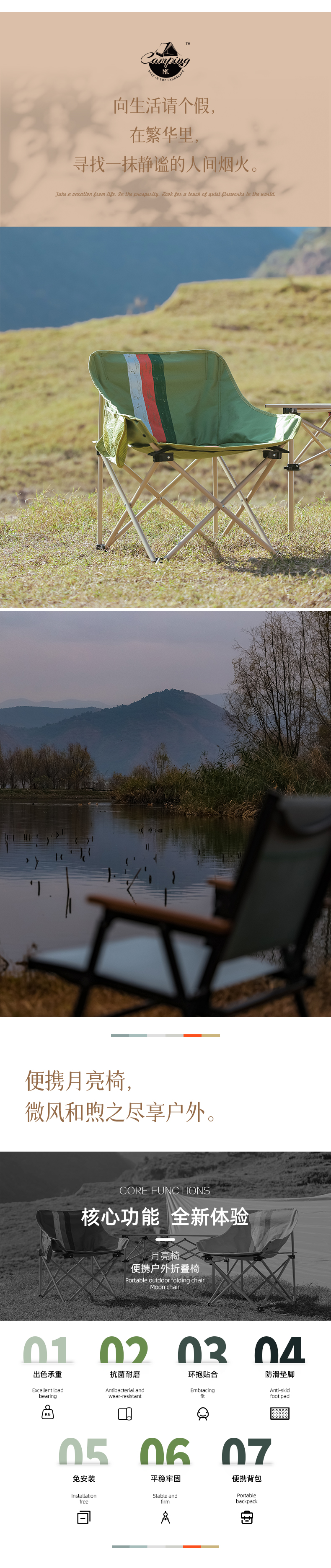 MK戶外露營摺疊椅可攜式月亮椅摺疊靠背躺椅野營小凳子寫生椅釣魚凳
