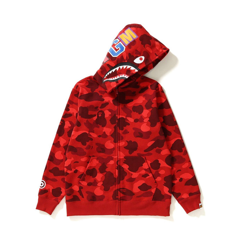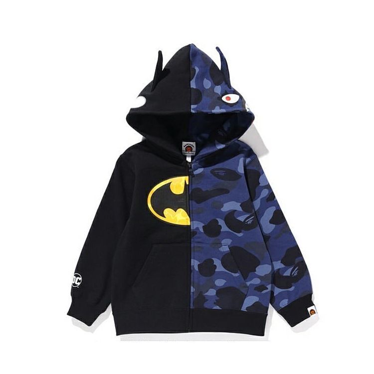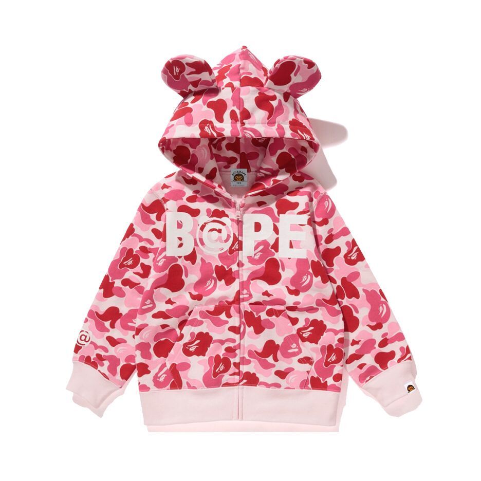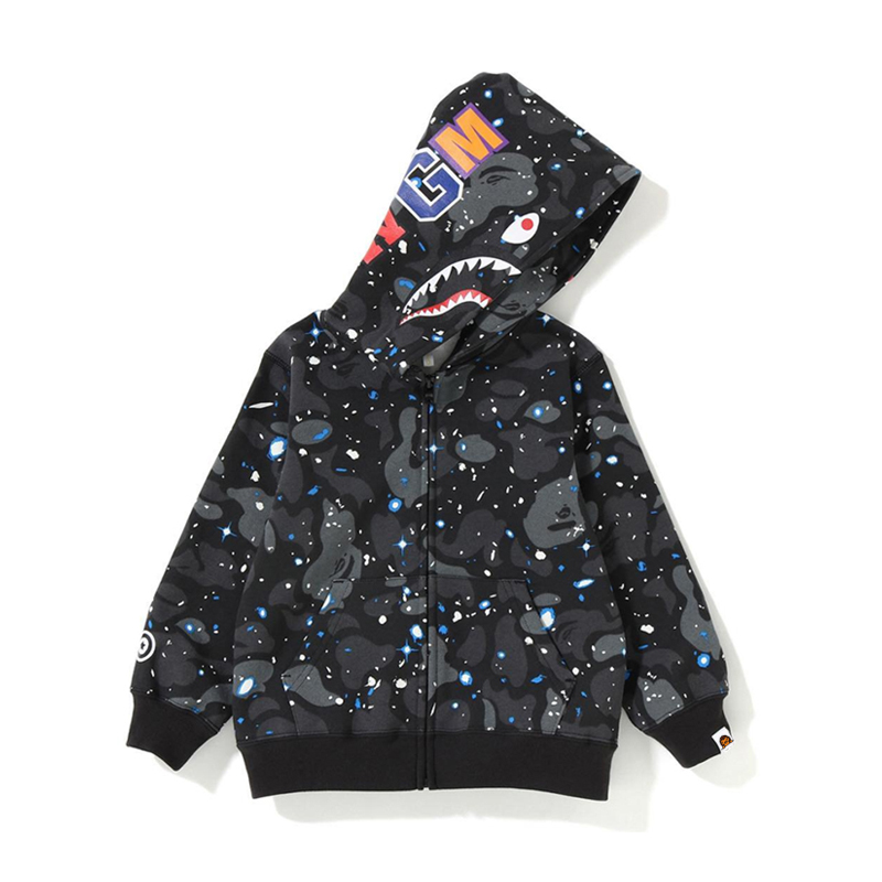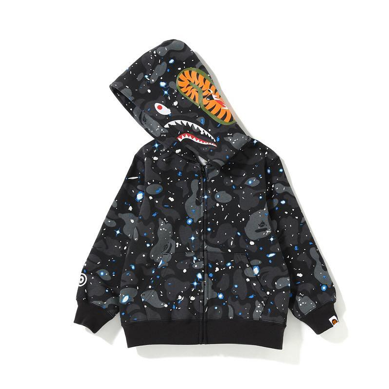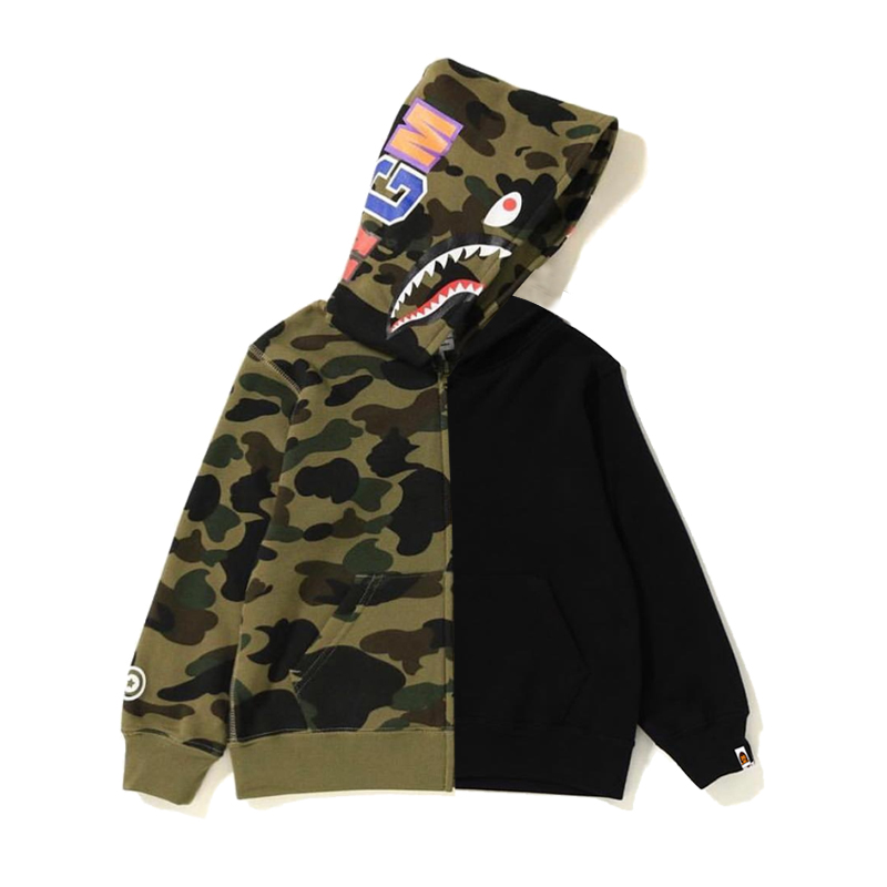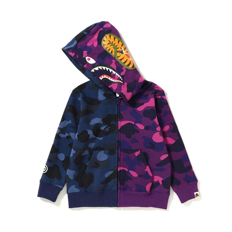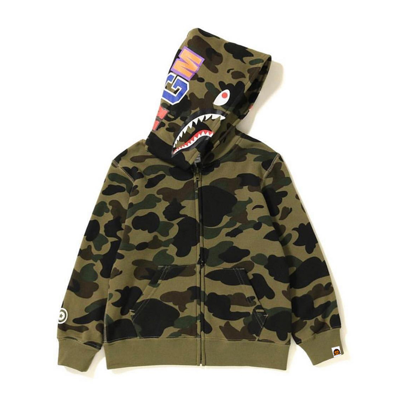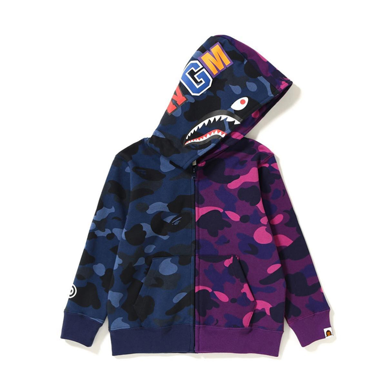 日系潮牌bape童裝猿人頭鯊魚迷彩外套男女童長袖拉鍊拼接帽衫衛衣