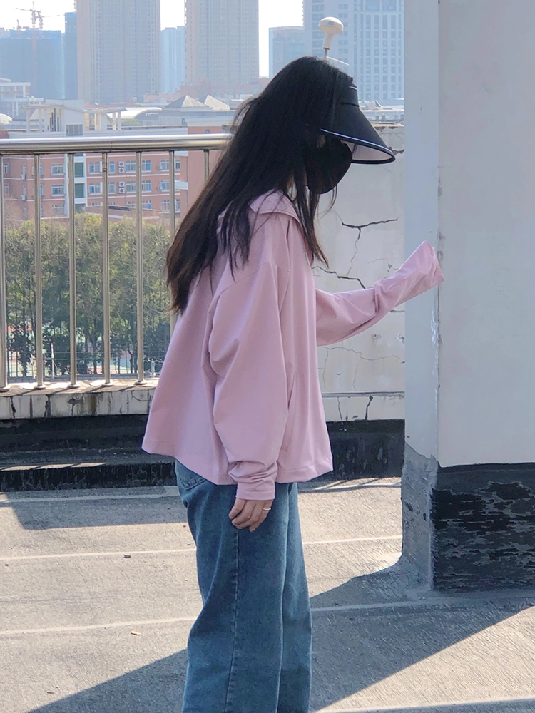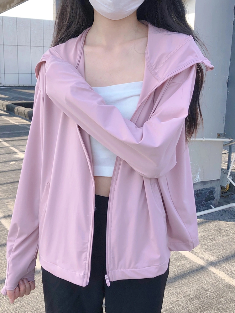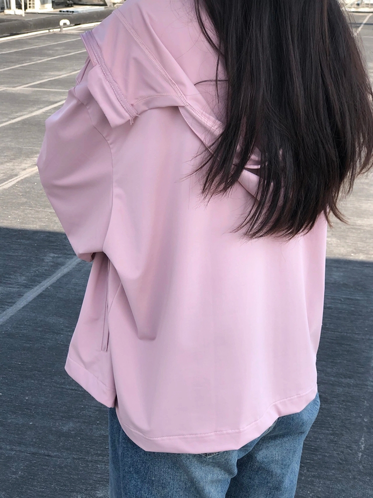 春夏新款粉色防曬衣女款休閒百搭戶外簡約連帽薄款開衫短外套上衣