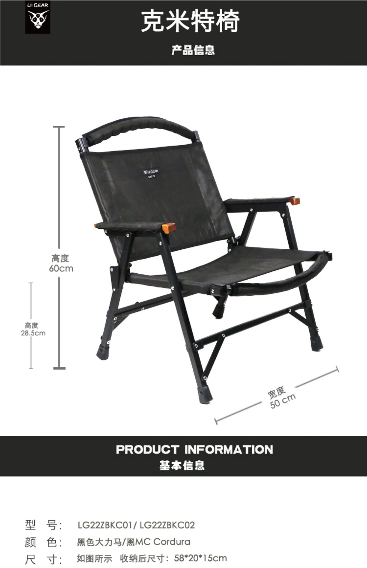【Lii Gear官方】可攜式戶外摺疊收納椅野餐凳露營黑色克米特椅