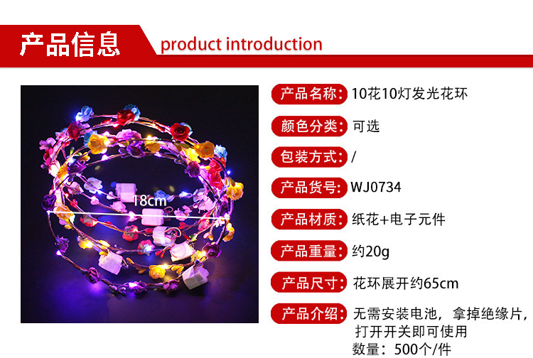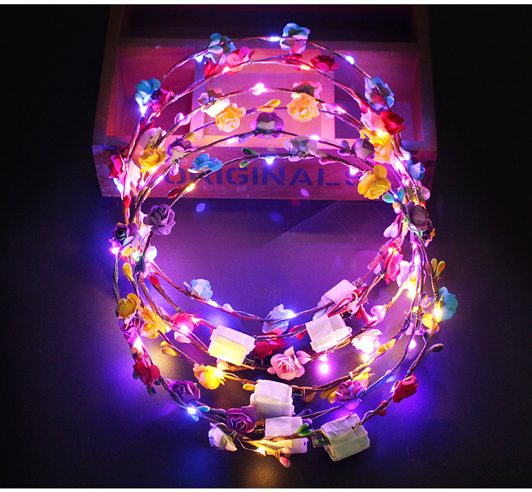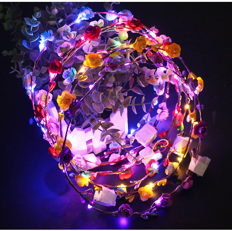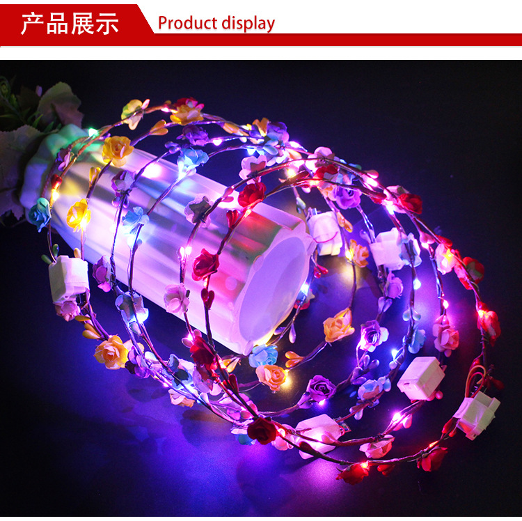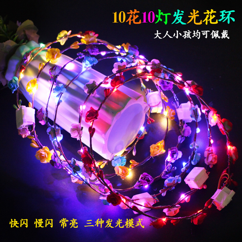 发光花环 七彩闪光led头饰藤条头花旅游景点夜市地摊热卖发箍批发