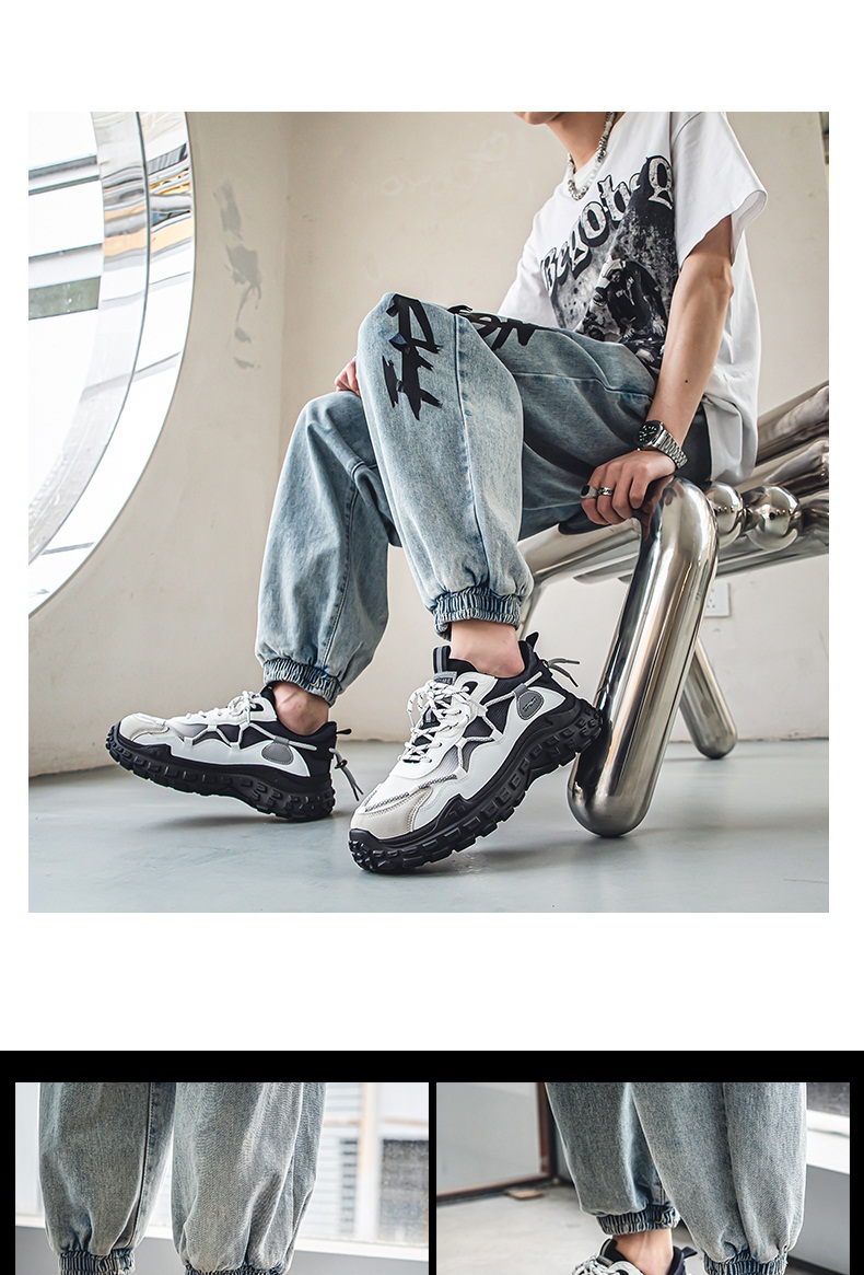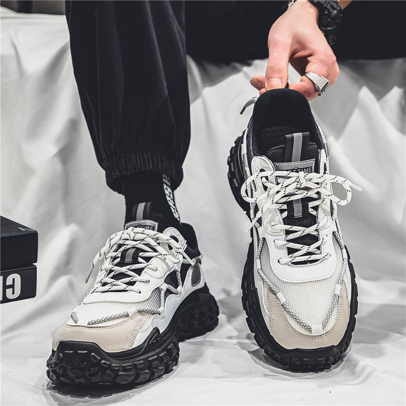 網紅爆款男鞋夏季透氣網面百搭運動休閒跑步厚底輪胎老爹男款潮鞋