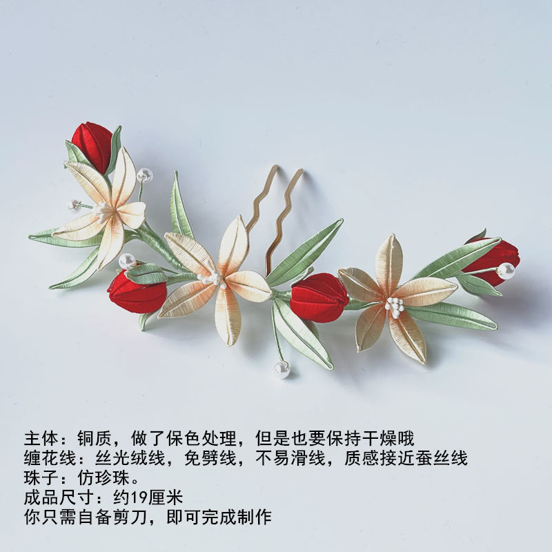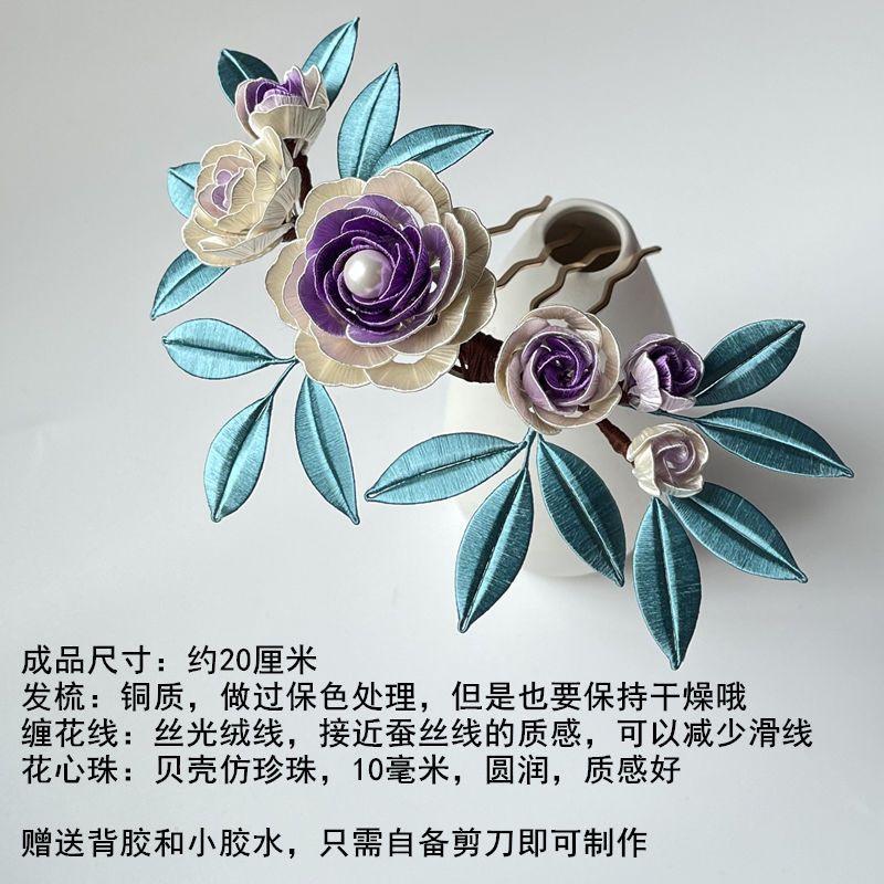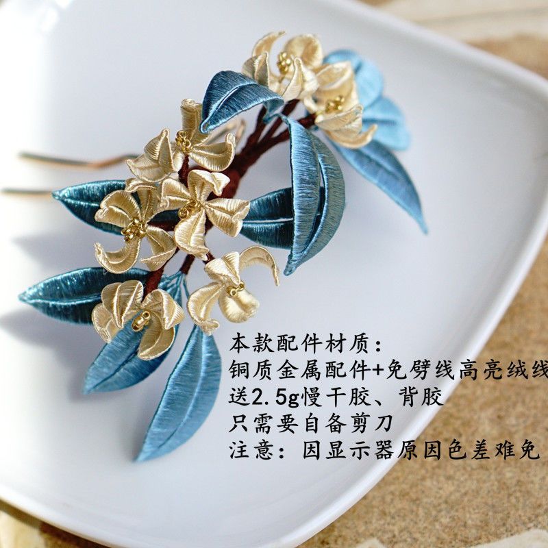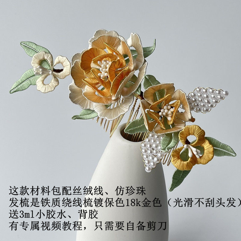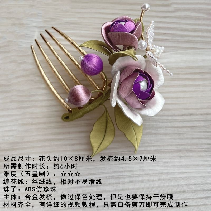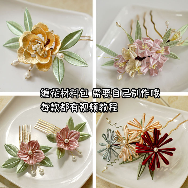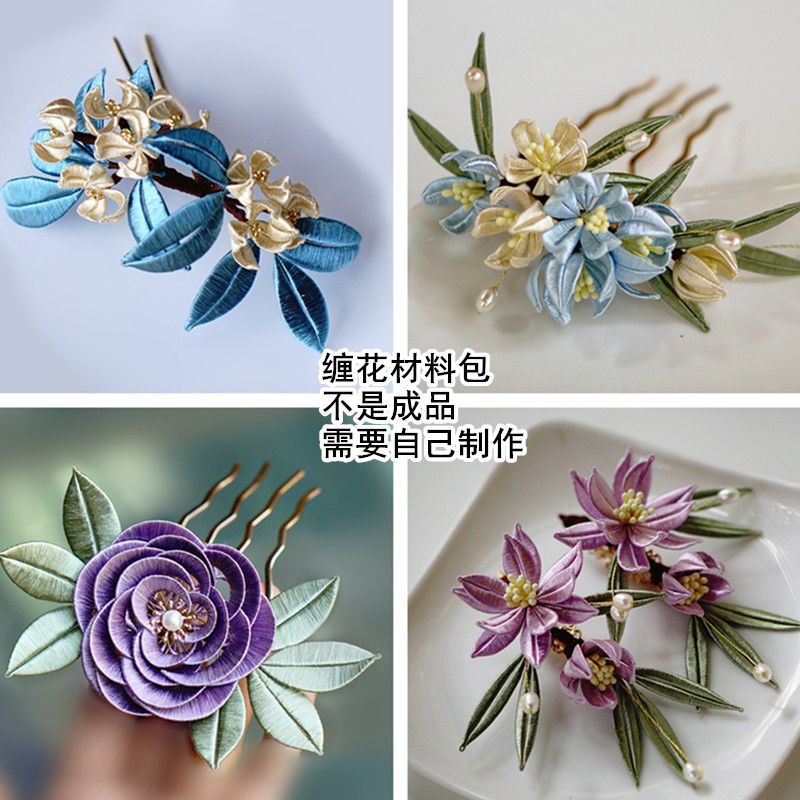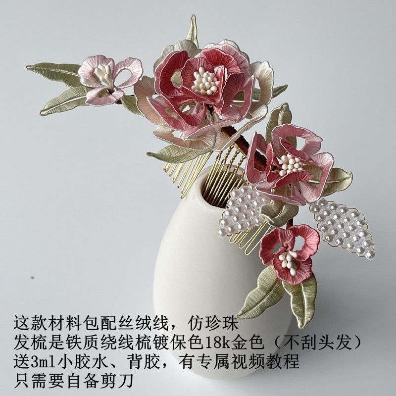 缠花发簪发梳材料包免劈线高亮绒线纯铜配件diy材料包有视频教程