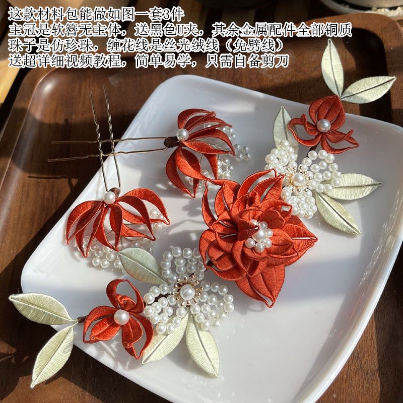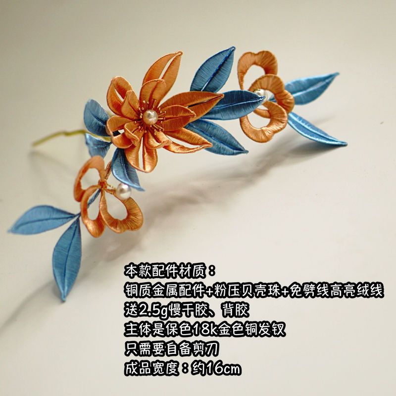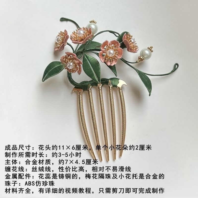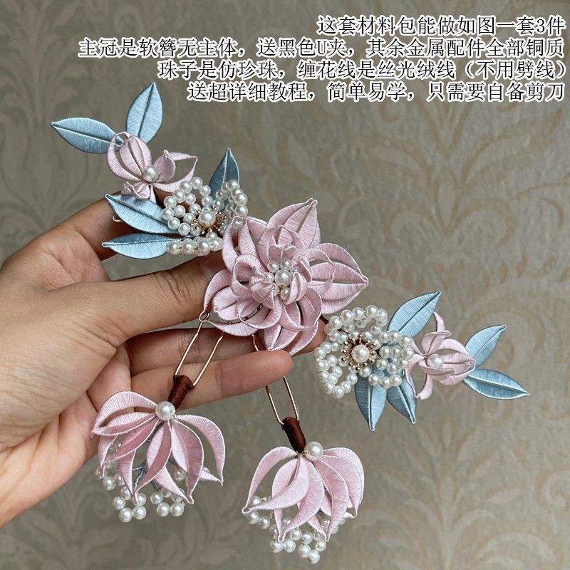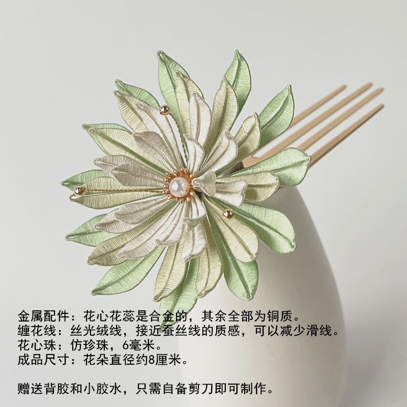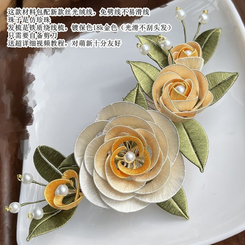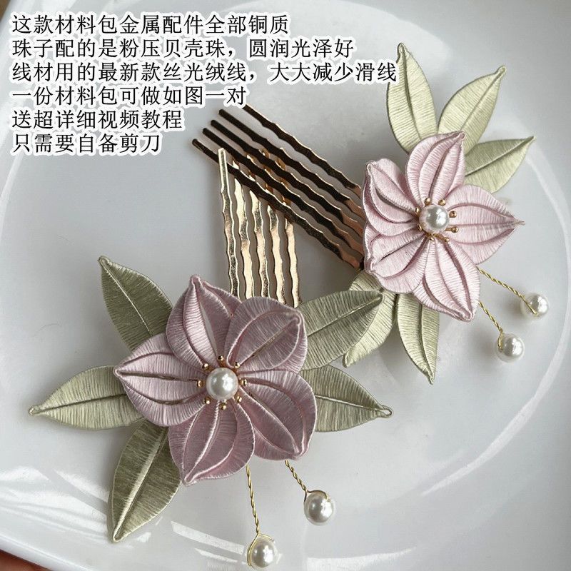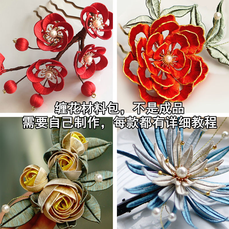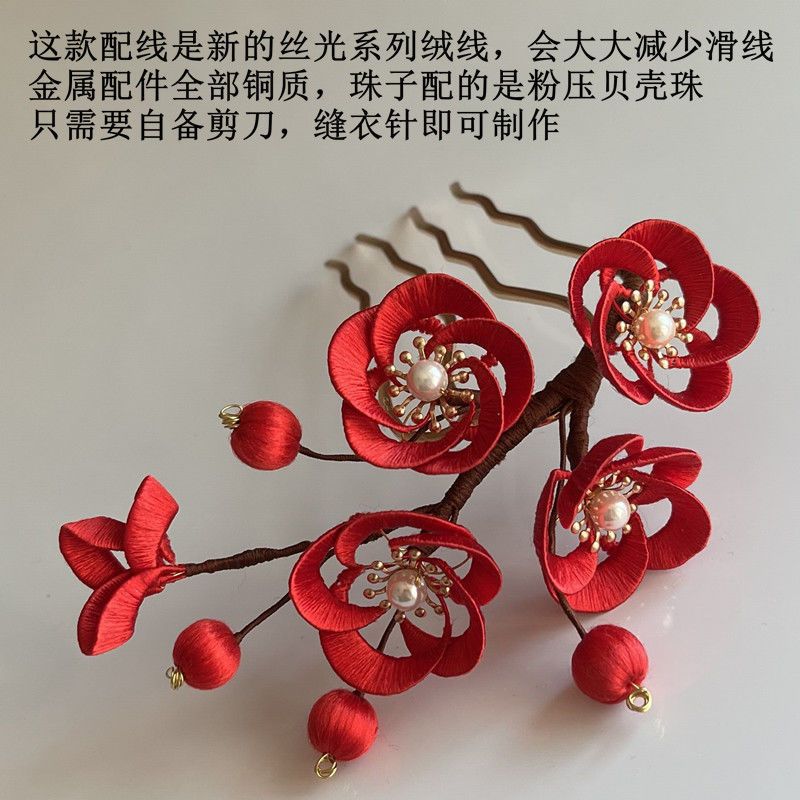 缠花发簪发梳材料包免劈线高亮绒线纯铜配件diy材料包有视频教程