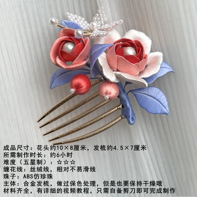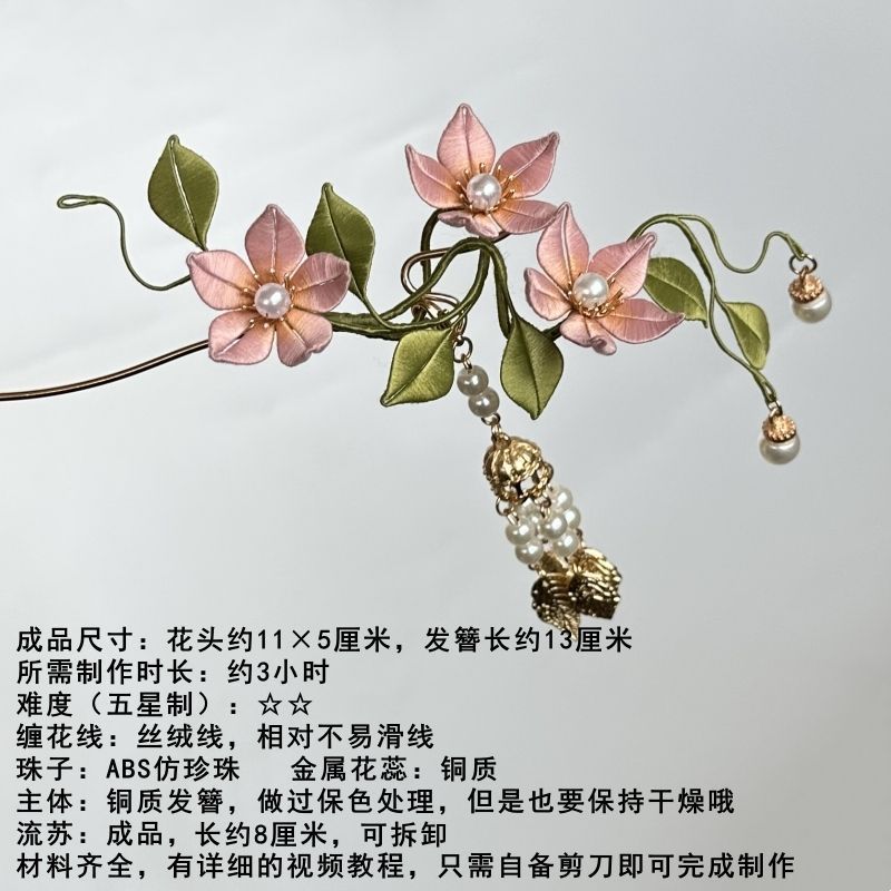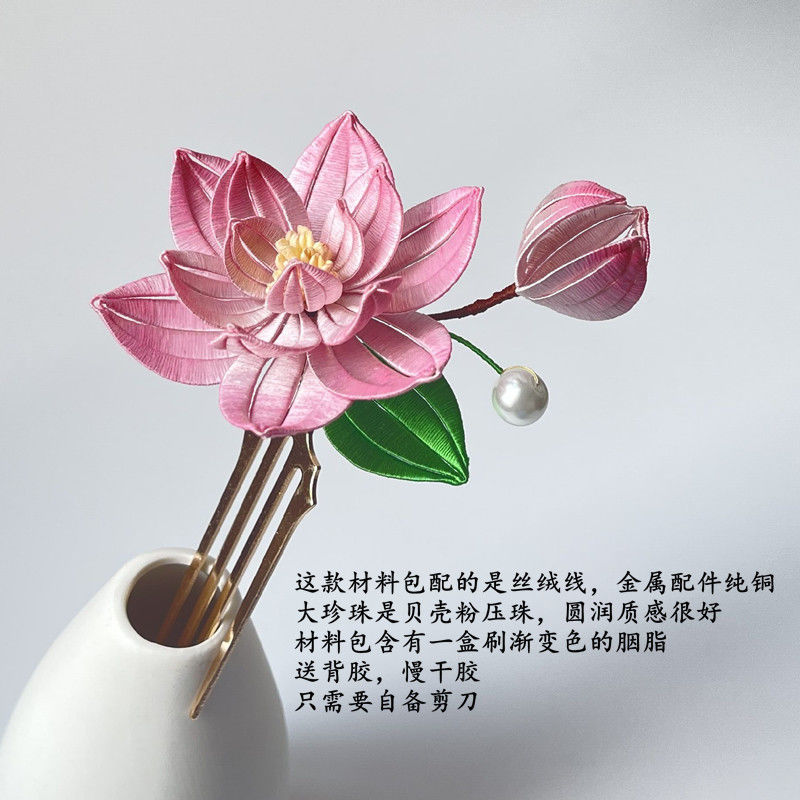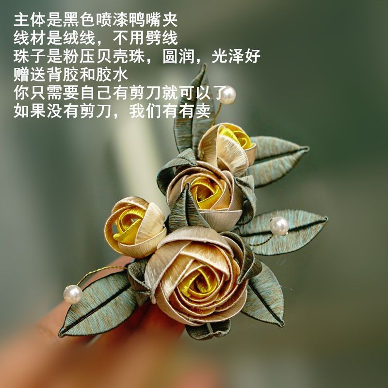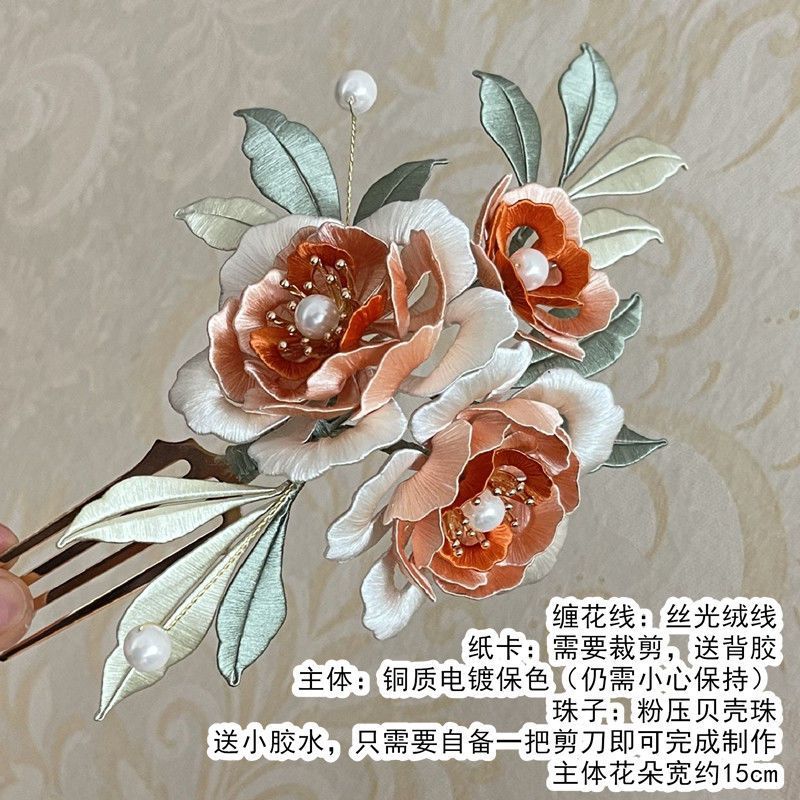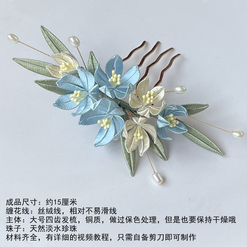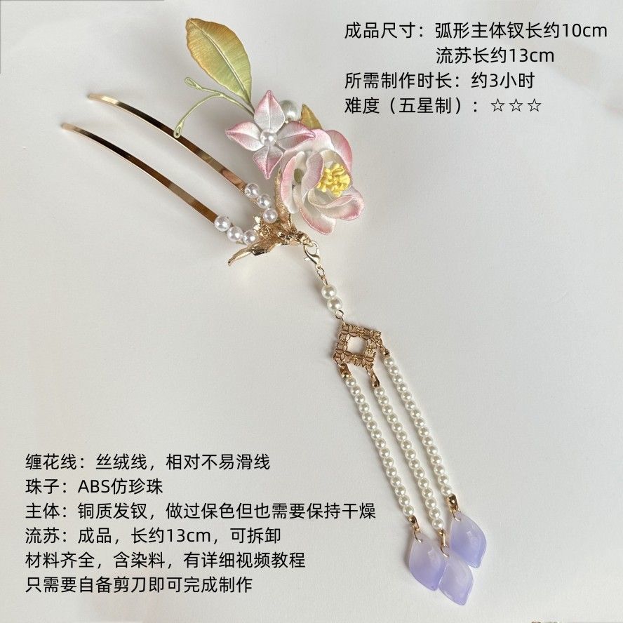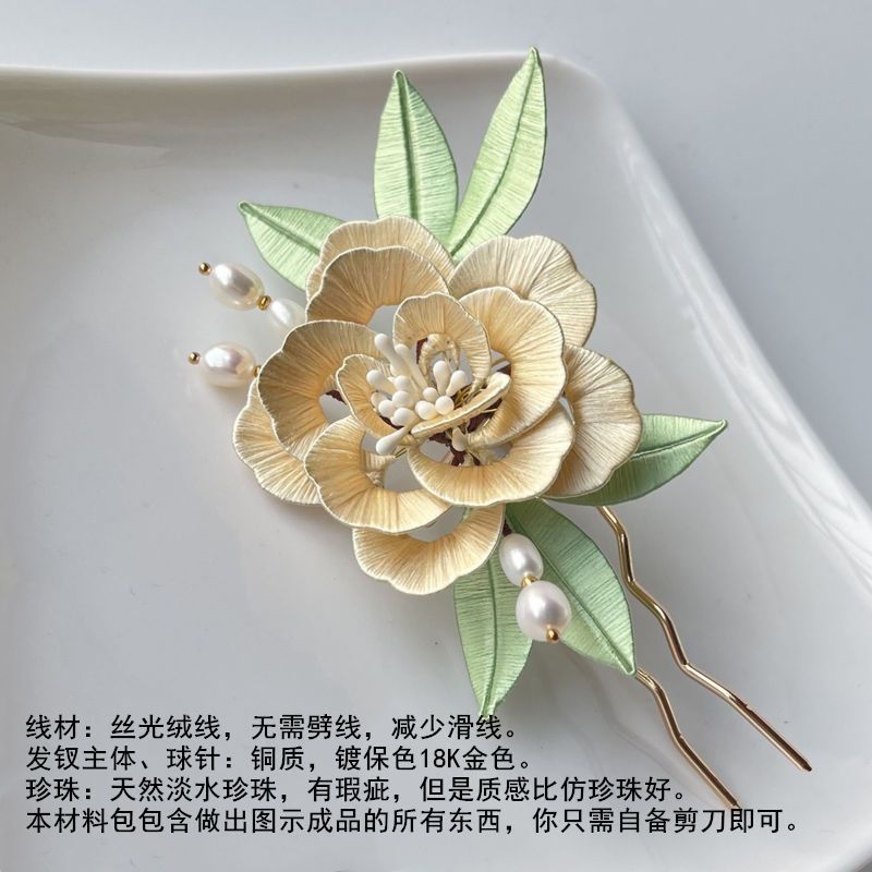 缠花发簪发梳材料包免劈线高亮绒线纯铜配件diy材料包有视频教程