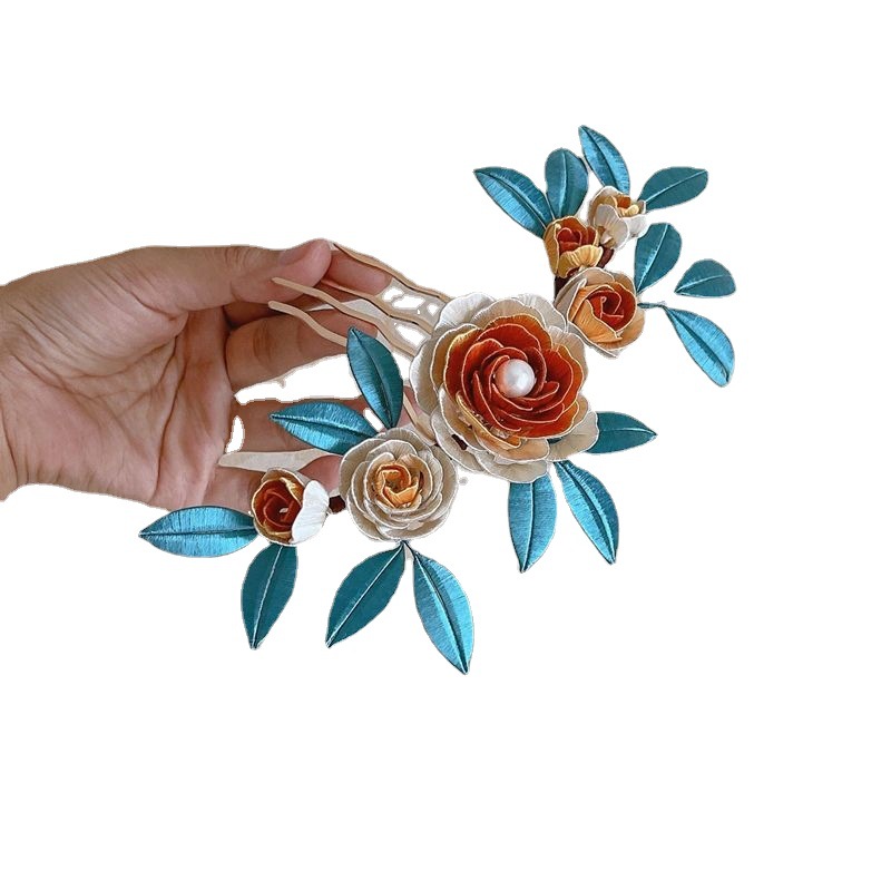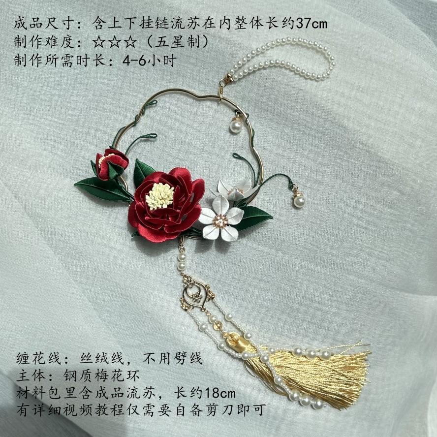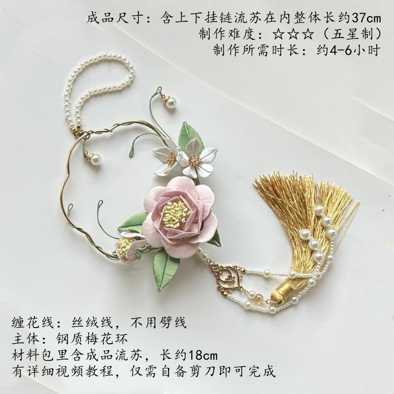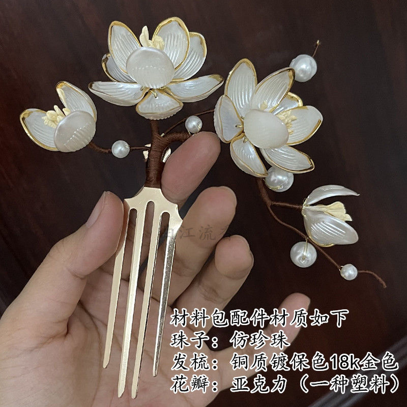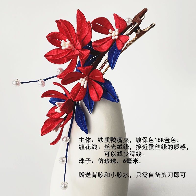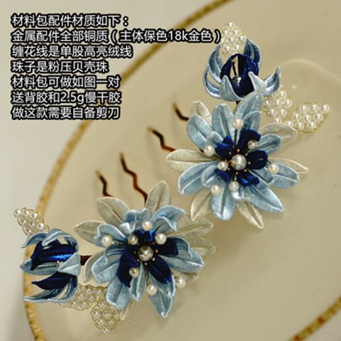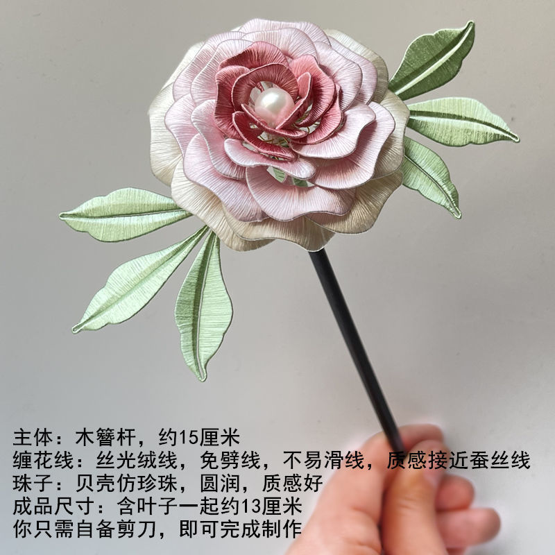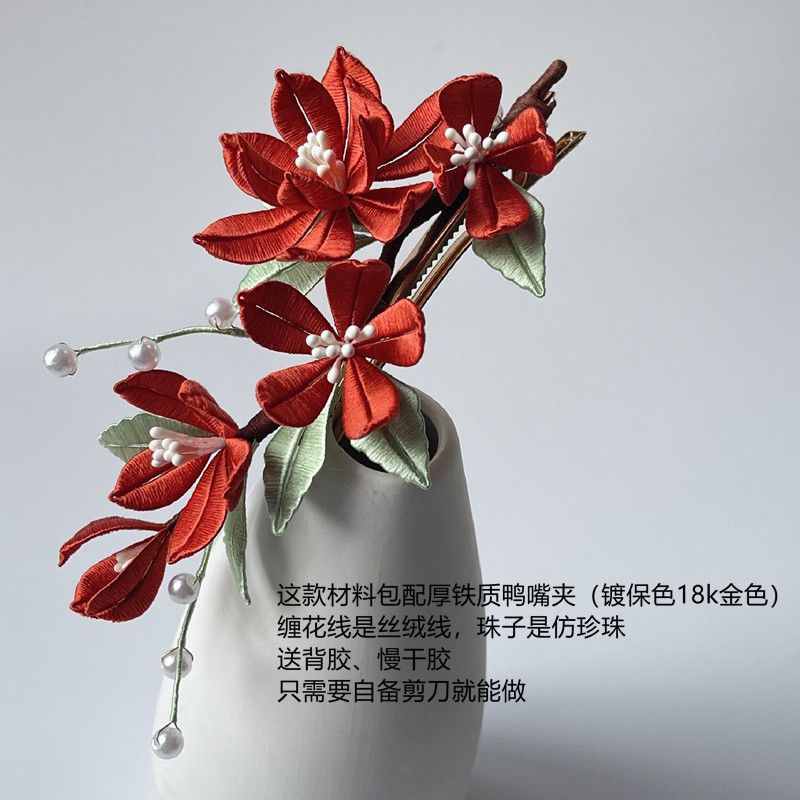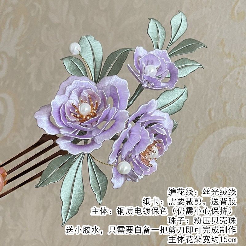 缠花发簪发梳材料包免劈线高亮绒线纯铜配件diy材料包有视频教程