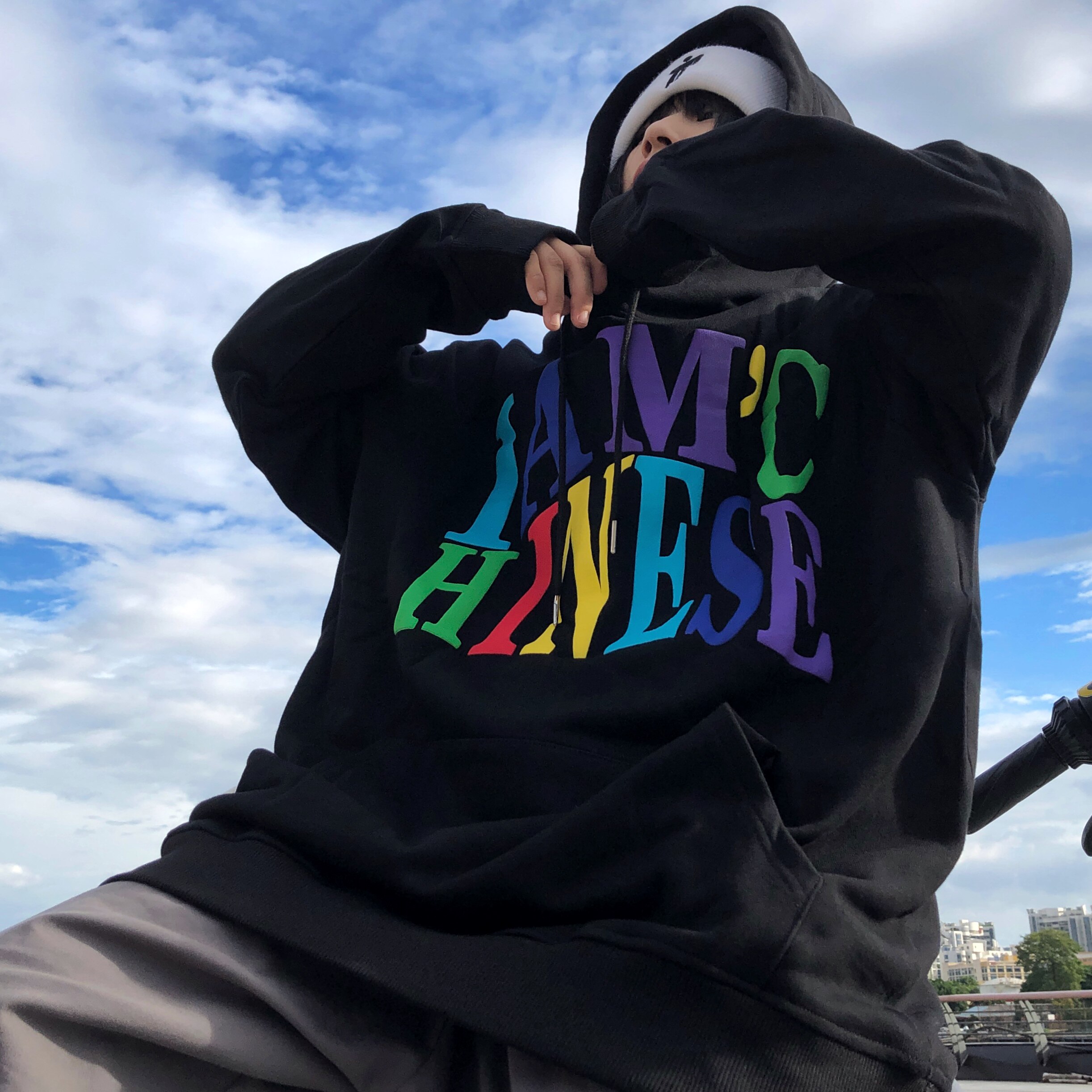 國潮原創高街衛衣oversize嘻哈早春歐美vibe發泡字母連帽衫上衣男