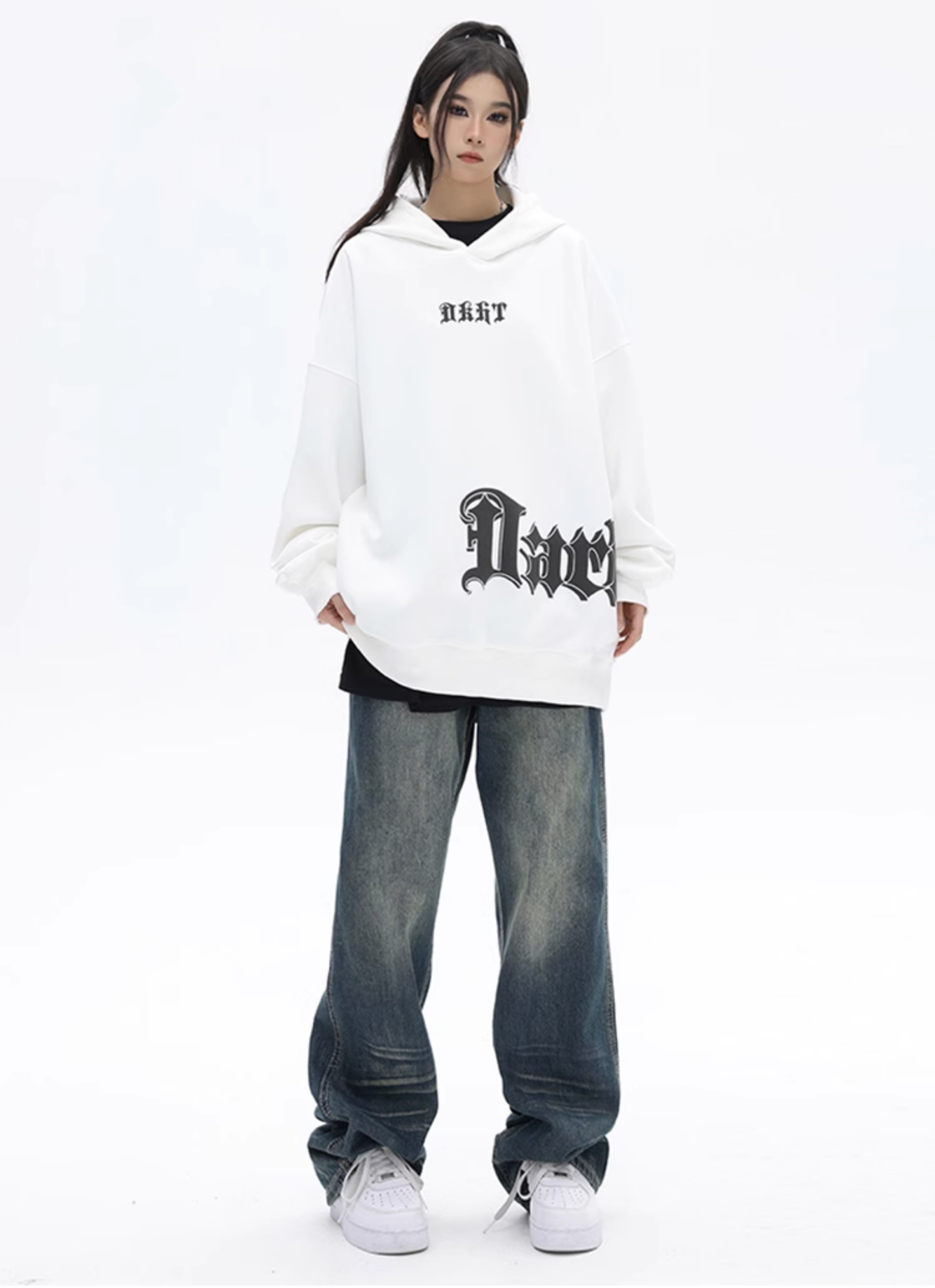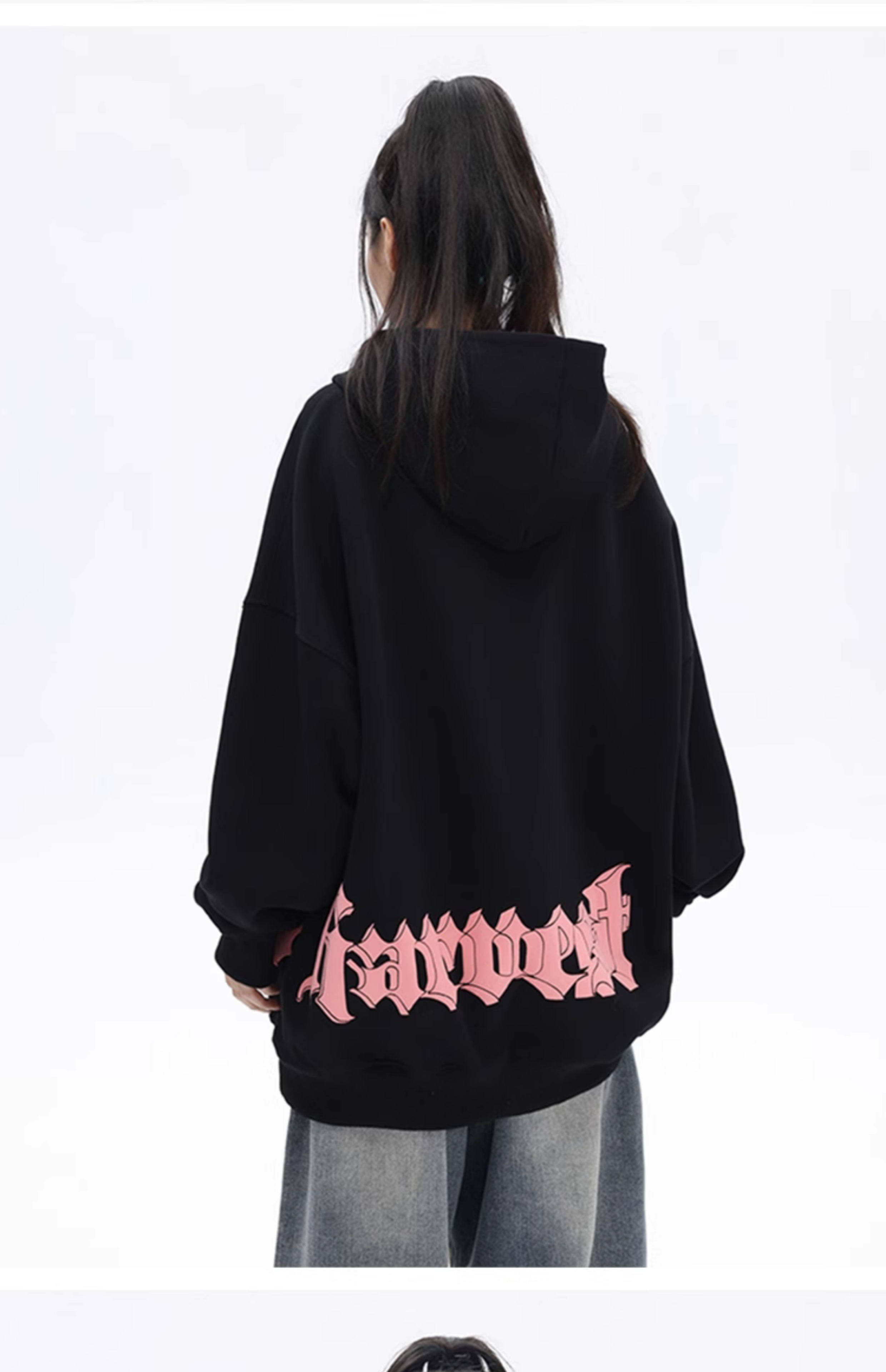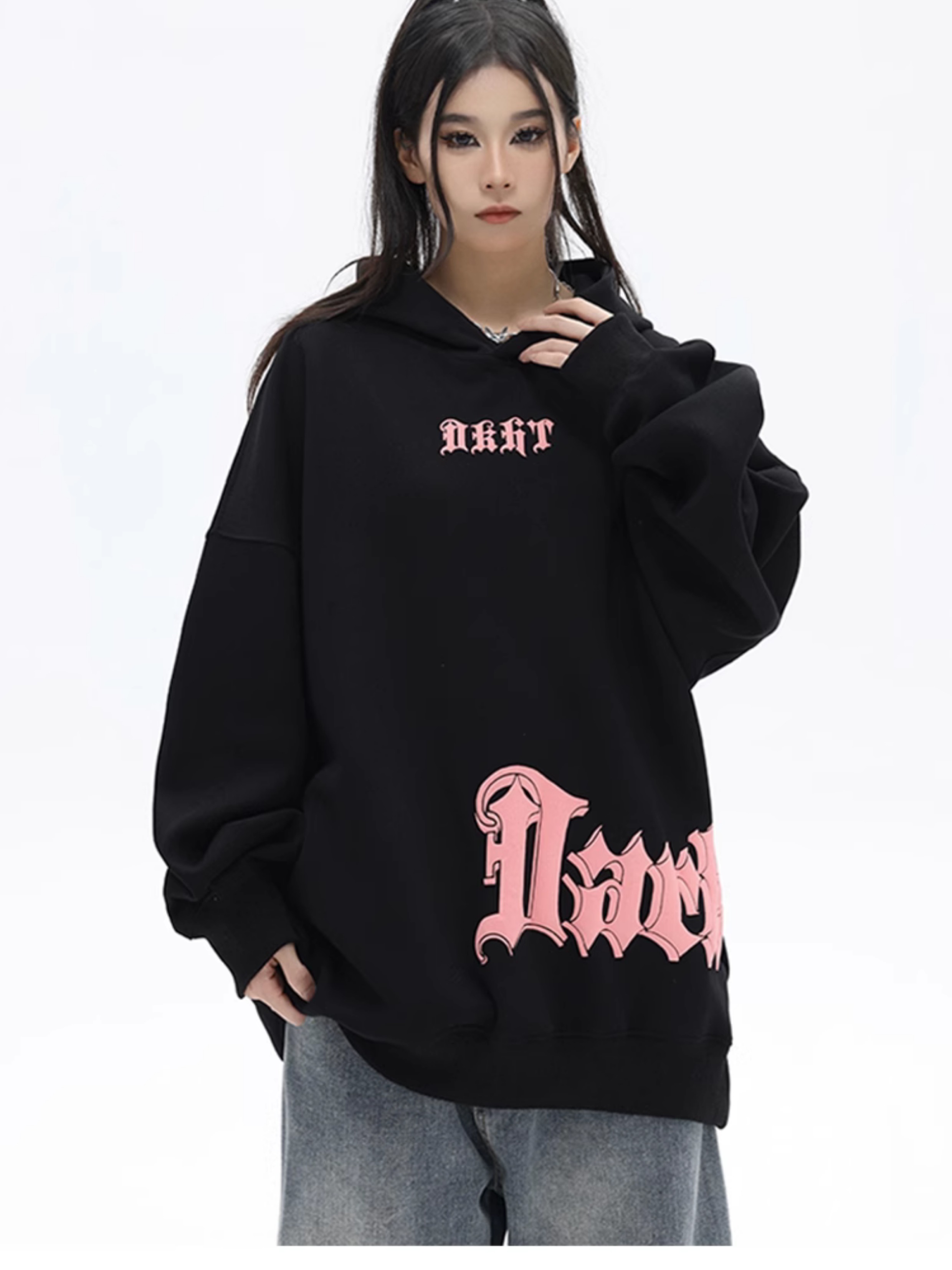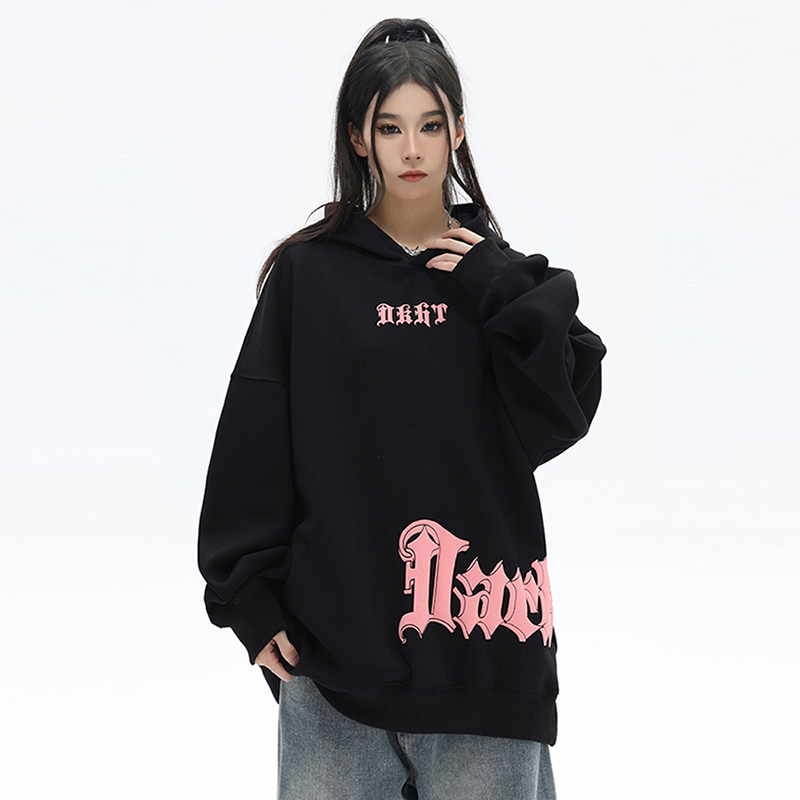 YOOTDS美式街頭小眾設計感字母印花連帽運動衫女寬鬆復古情侶上衣潮