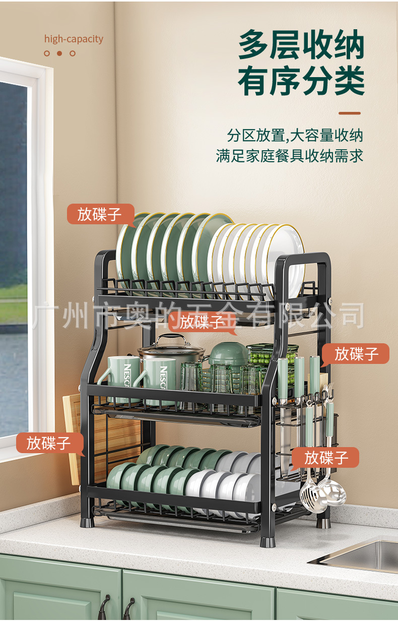 厨房置物架碗碟碗盘收纳架沥水架家用多功能放碗架碗筷收纳盒碗柜
