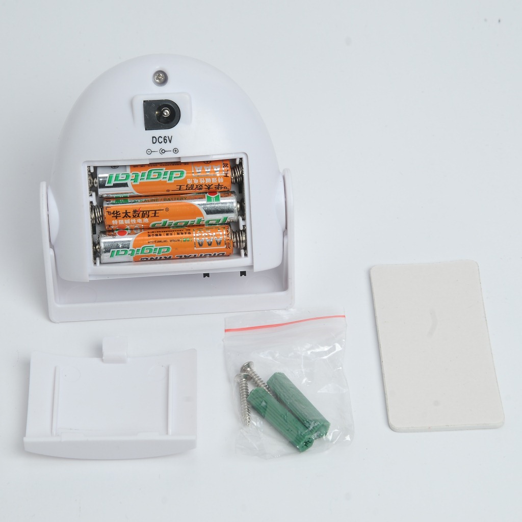 4、将门铃通过卡口安装在支架上,当有客人进入时,电子迎客门铃会发出您之前选择好的声音。